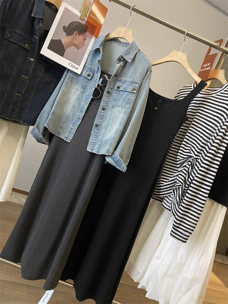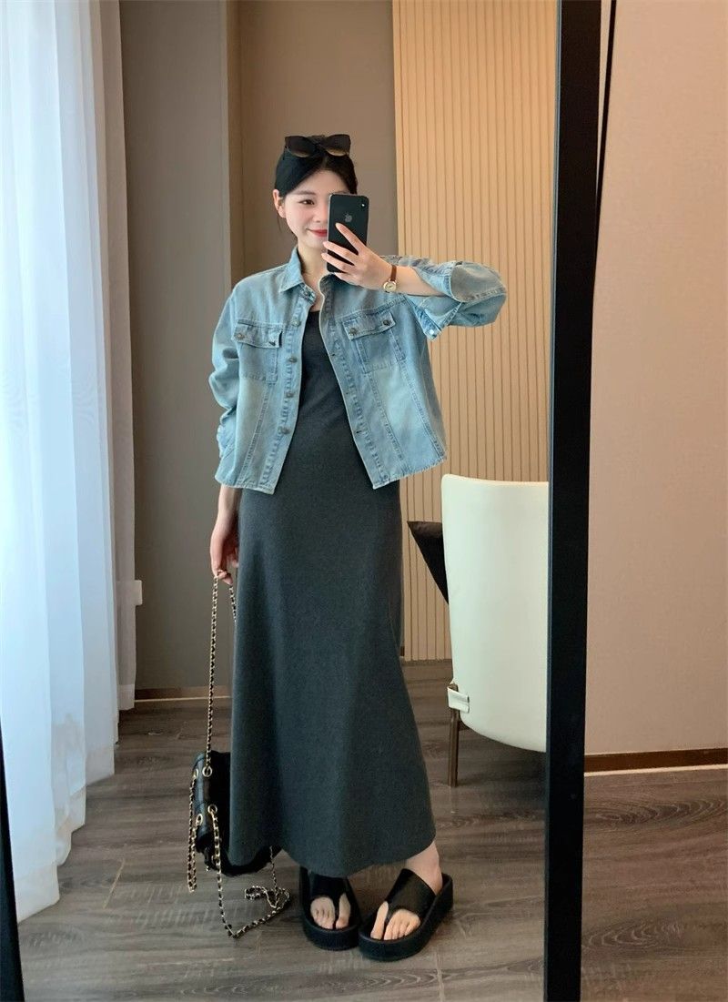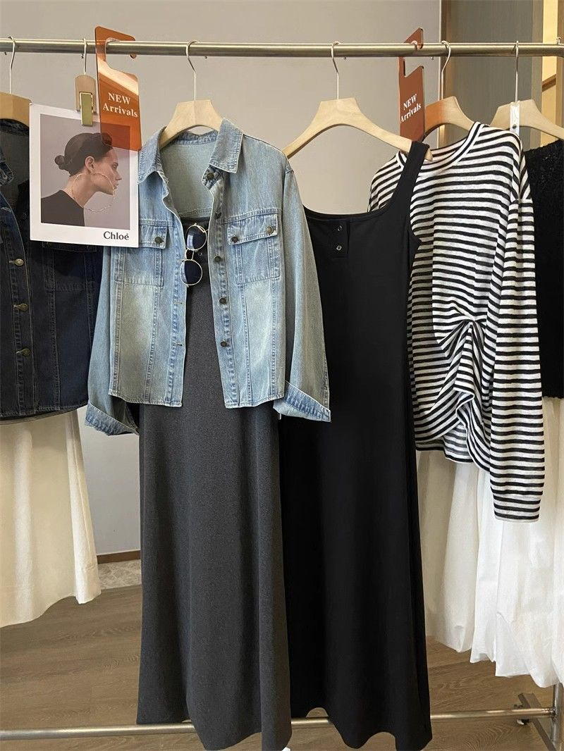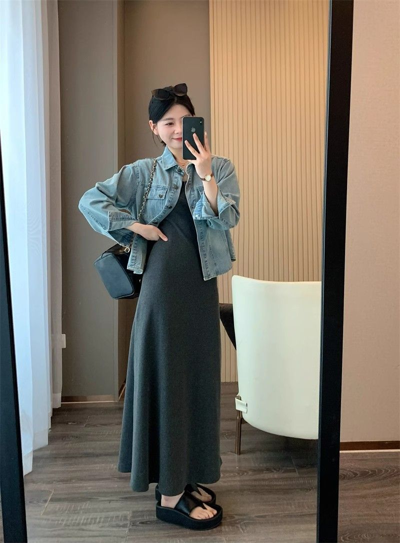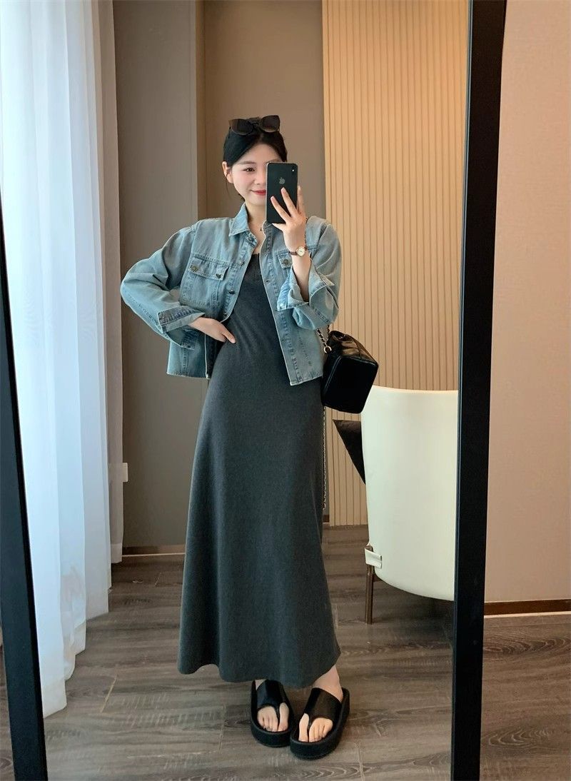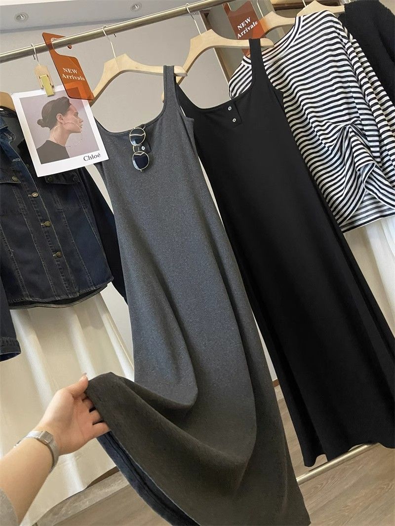 Женское платье-камзол с квадратным вырезом, длинная юбка, летний новый стиль 2025, стройнящее и элегантное