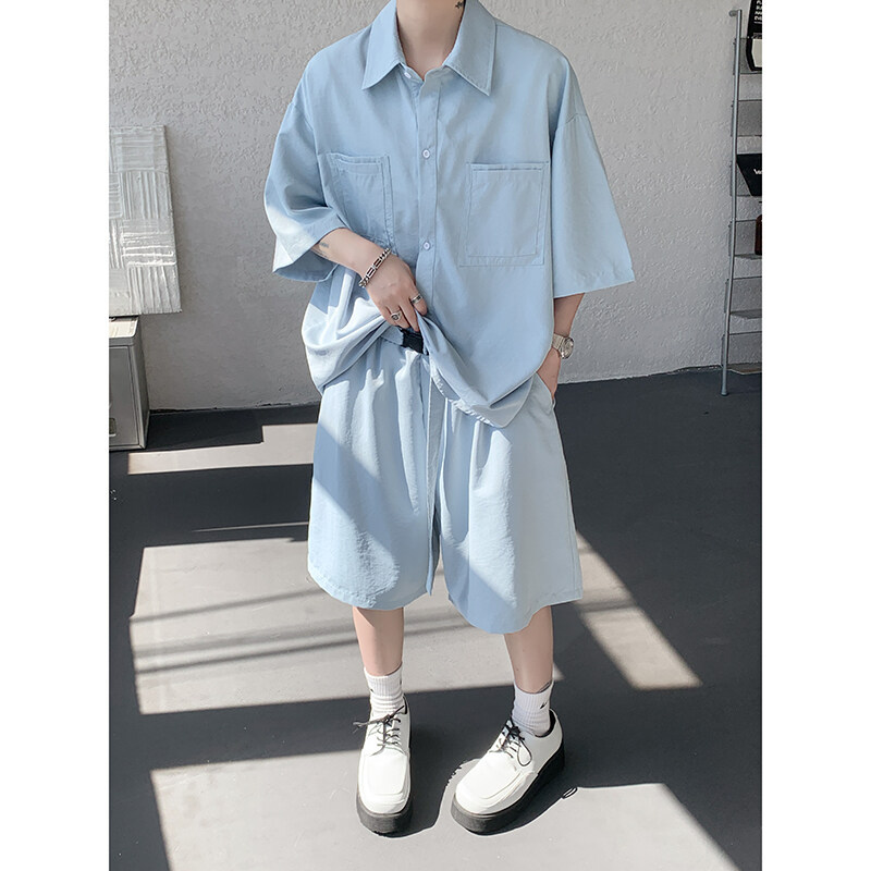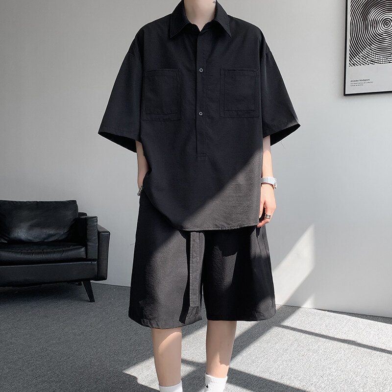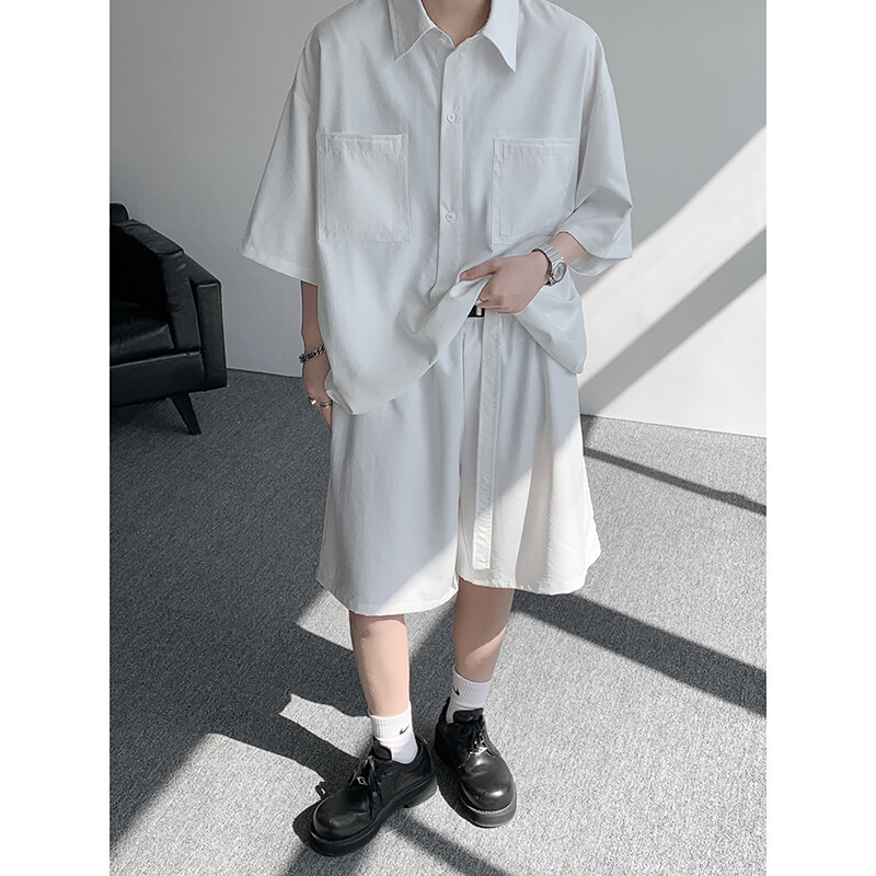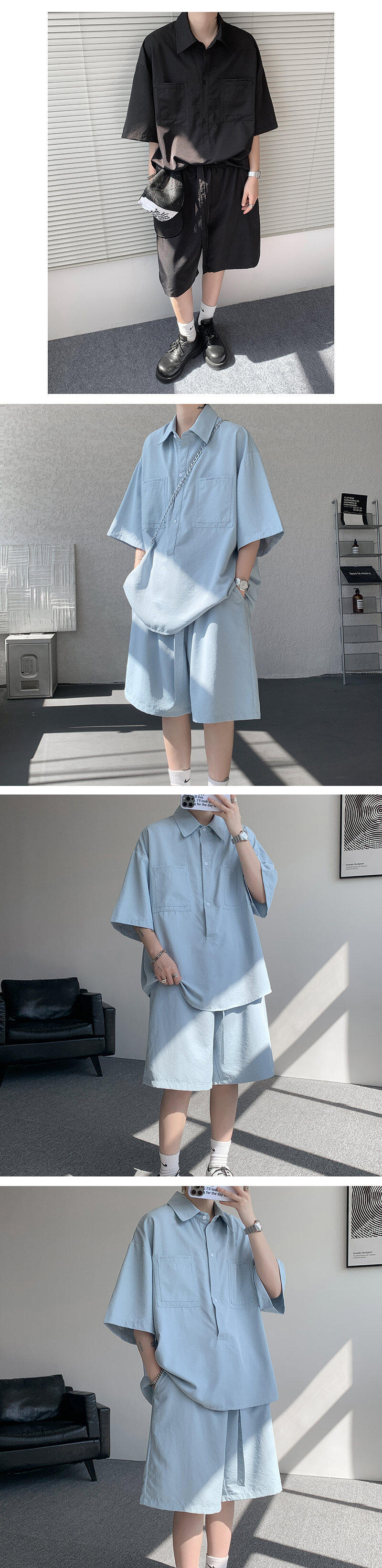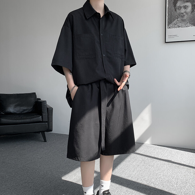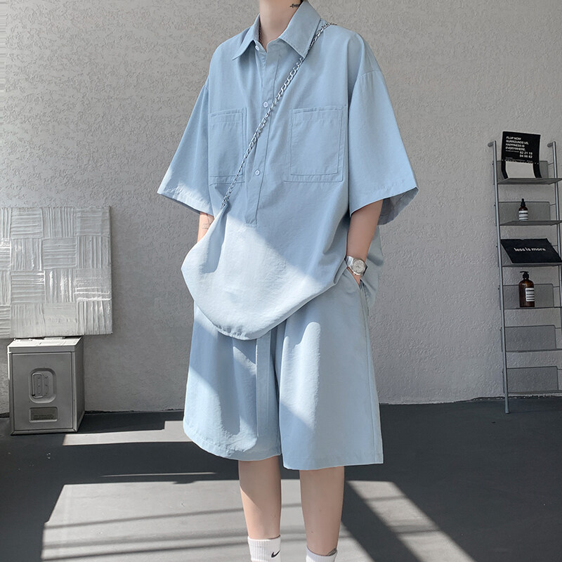 Мужской летний костюм Ice-sense, тонкая быстросохнущая свободная дышащая рубашка большого размера, шорты три четверти с короткими рукавами, полный комплект