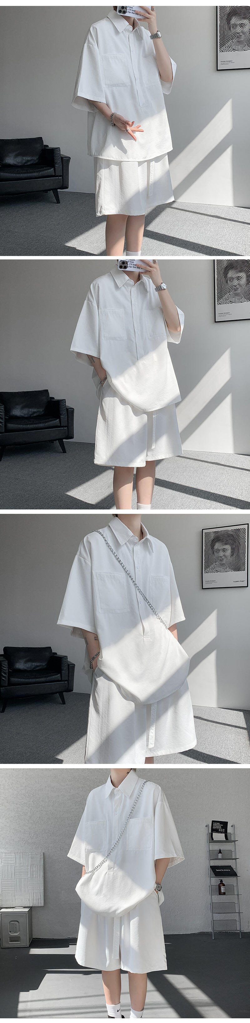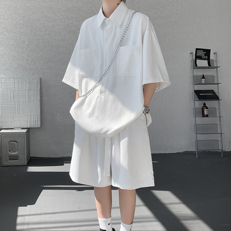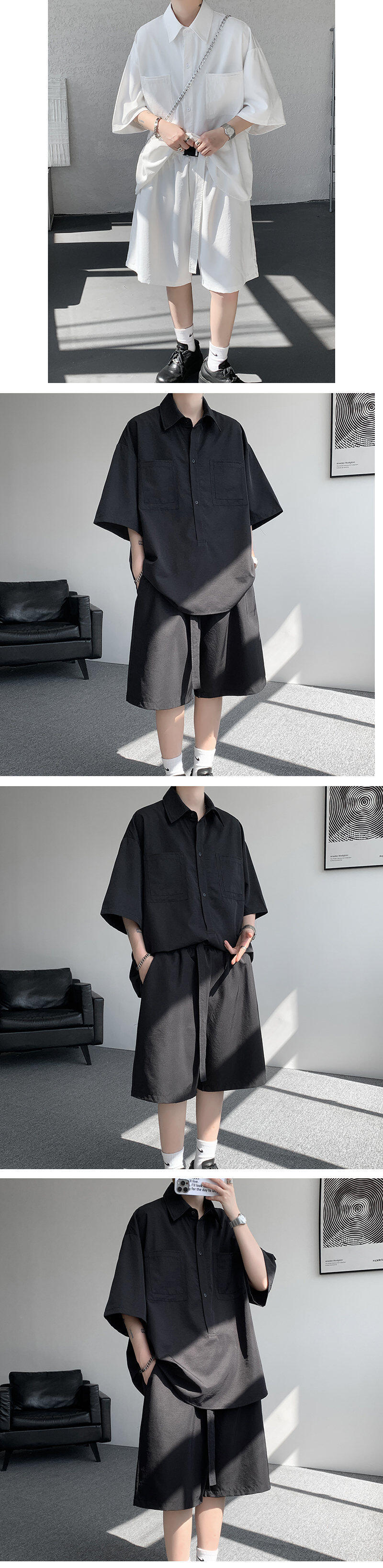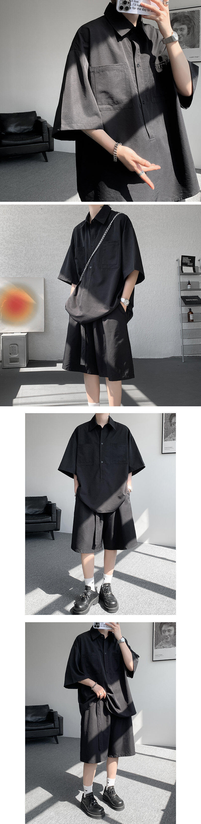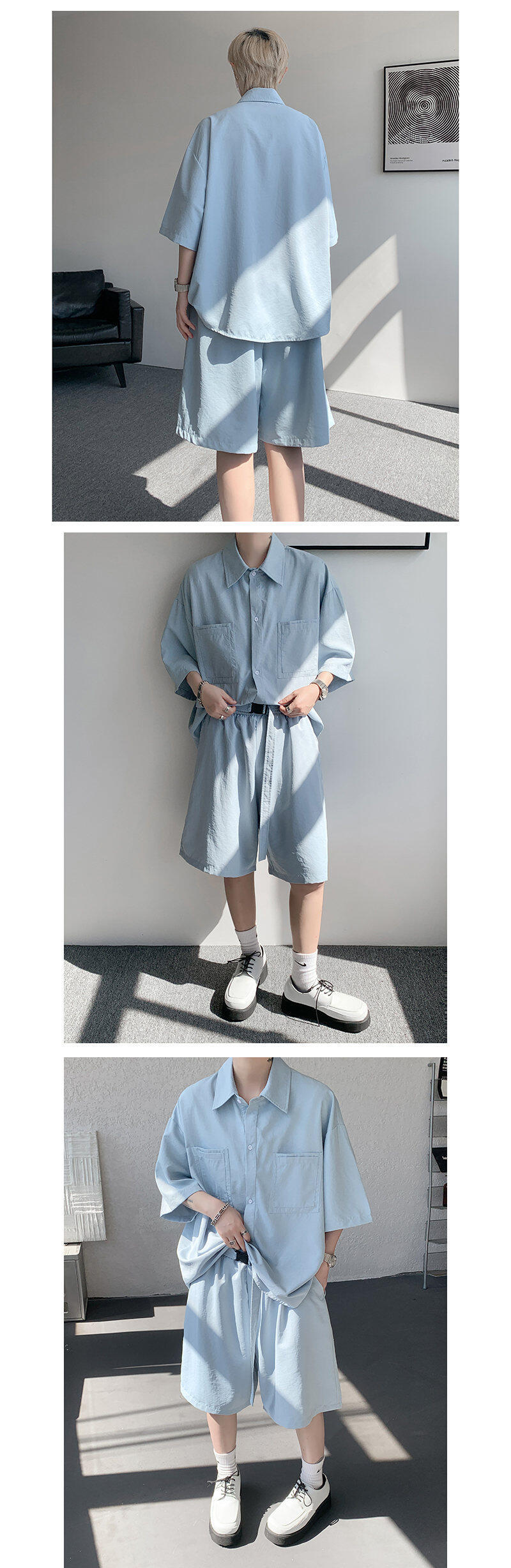 Мужской летний костюм Ice-sense, тонкая быстросохнущая свободная дышащая рубашка большого размера, шорты три четверти с короткими рукавами, полный комплект