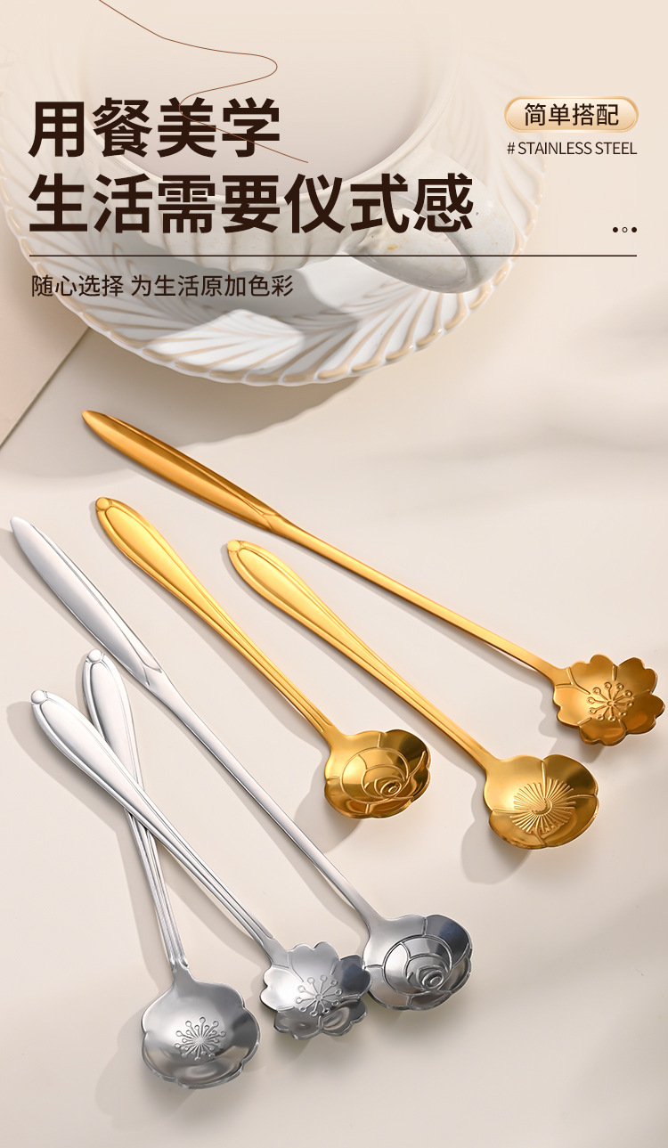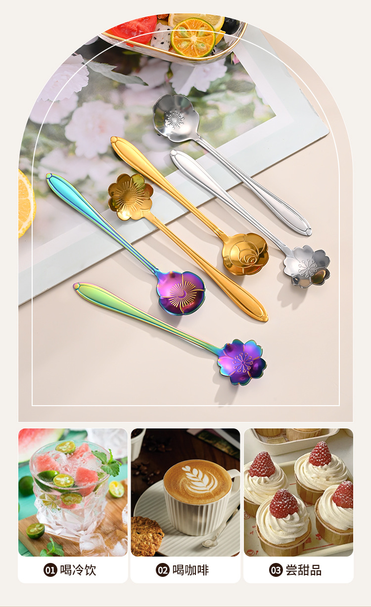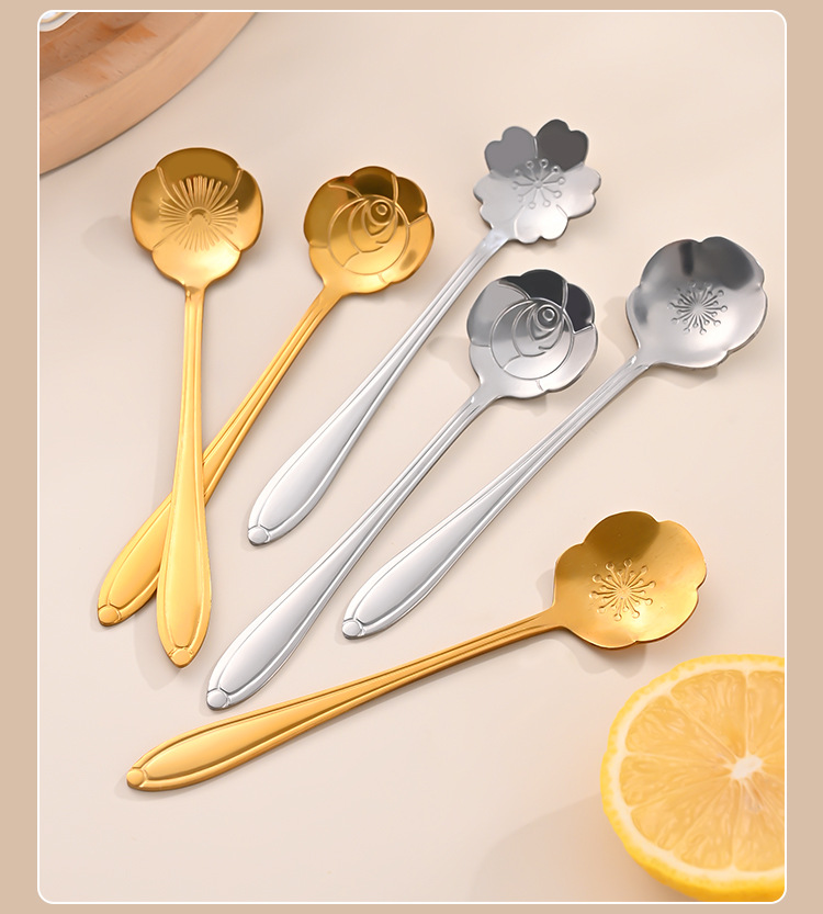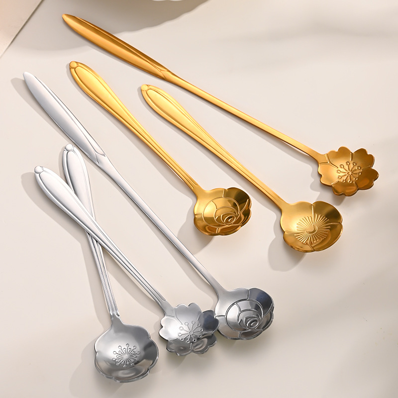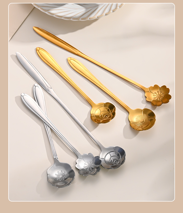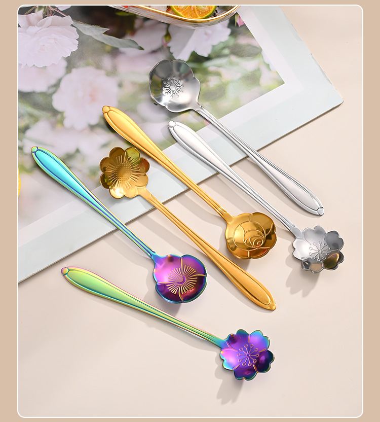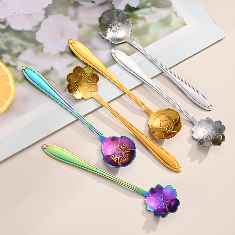 Ложка из нержавеющей стали с цветком вишни, красивая кофейная ложка, ложка для птичьего гнезда в форме розового сердца, ложка для перемешивания кружки, сувенирная ложка