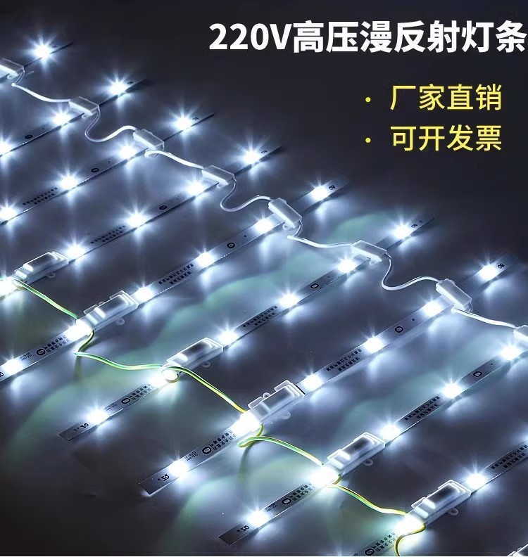 Светодиодная лента для рекламы с диффузным отражением, 220 В, высокое напряжение, длинная, мягкая пленка, потолочный световой короб 3М, защелкивающаяся подсветка, рольставни