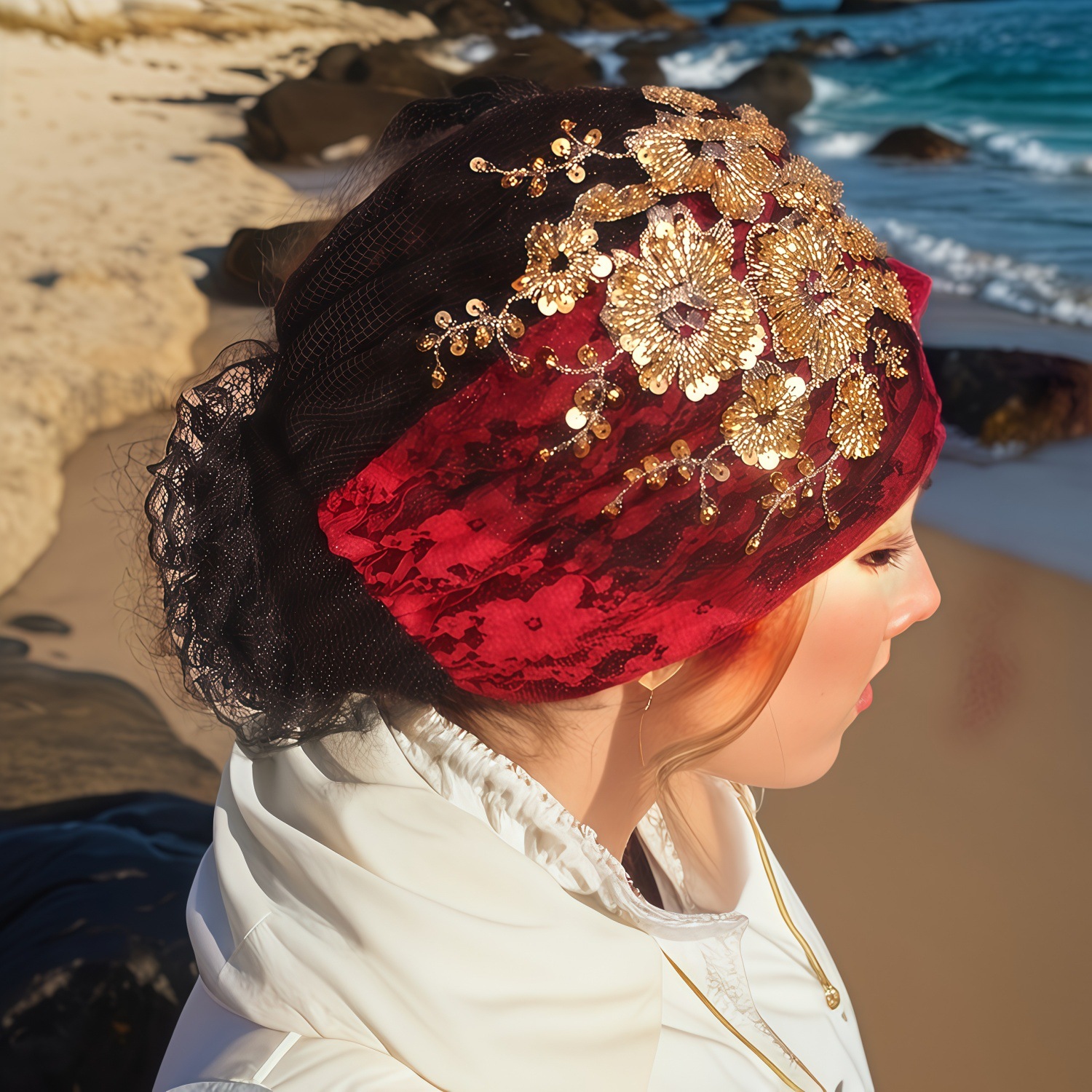 Кружевной тюрбан, новый стиль, повязка на голову с цветком в виде хвоста феникса, модный стиль с цветочной сумкой сзади, летняя тонкая шляпа