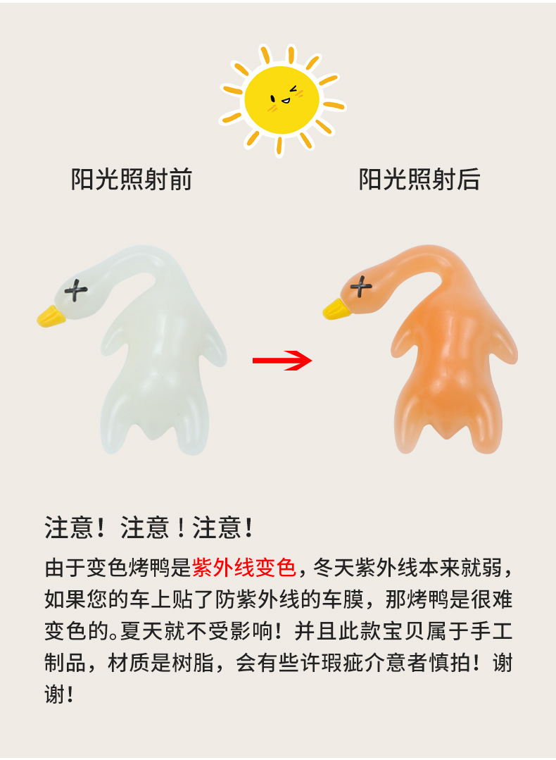 Модный УФ-подвеска с изменением цвета, подвеска в виде жареной утки, автомобильная подвеска в виде жареной гуся, креативная маленькая утка, автомобильный брелок, мягкая игрушка