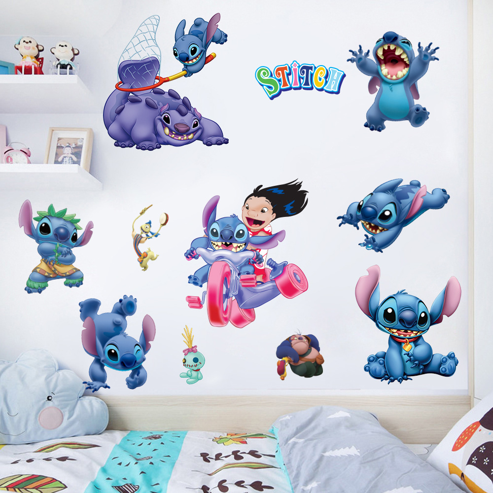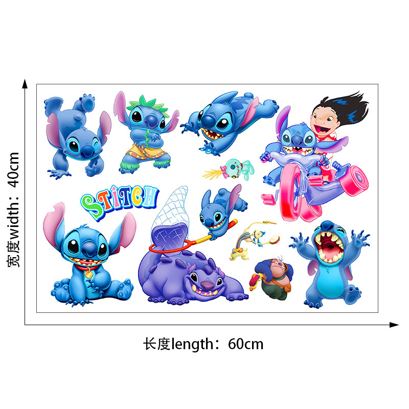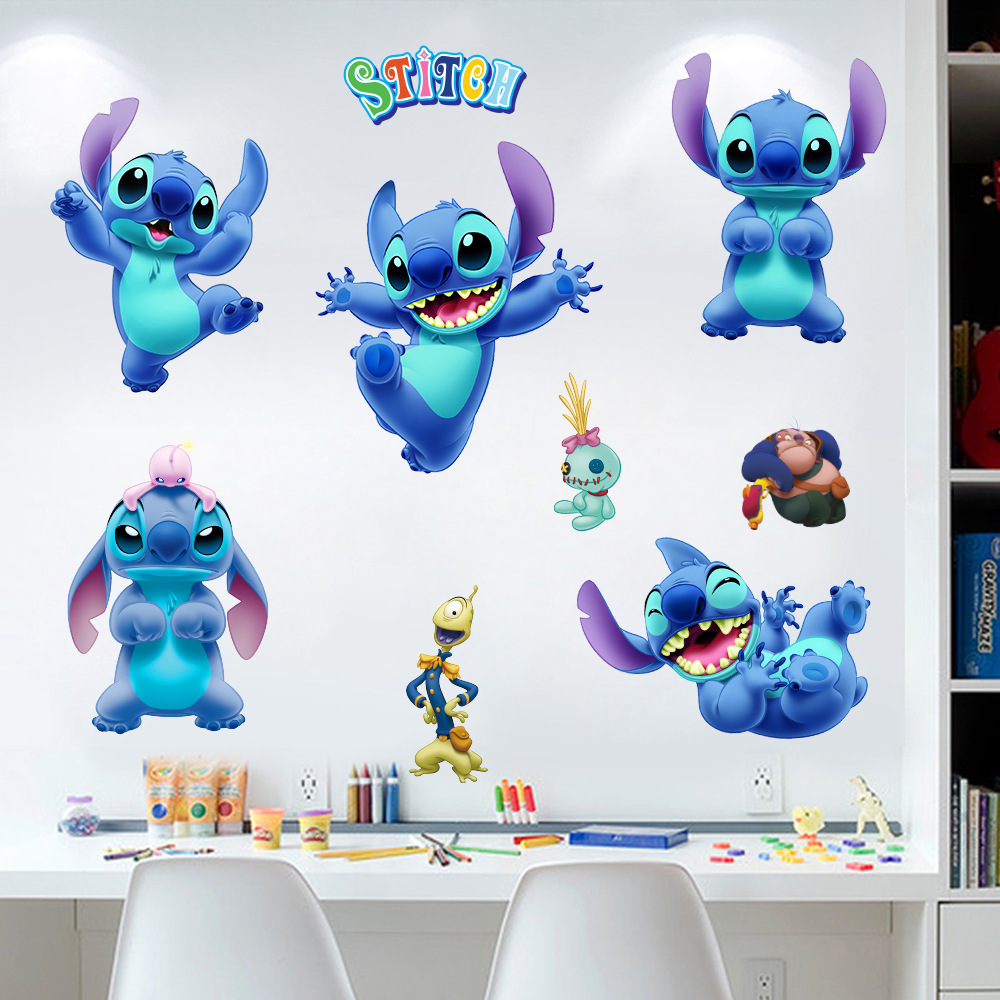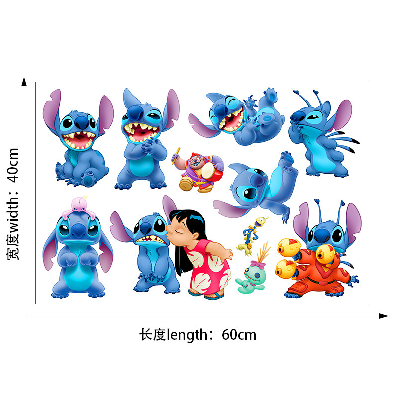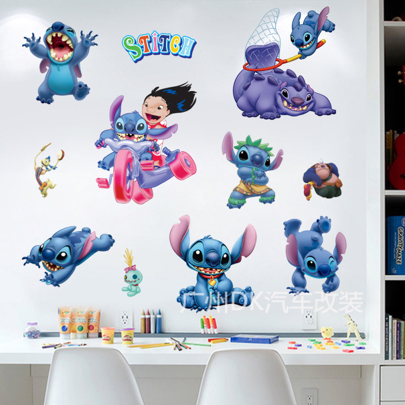 Трансграничный Стирпа мультфильм анимированные наклейки для мальчиков Спальня Стич декоративная настенная наклейка водонепроницаемая самоклеящаяся стеклянная наклейка