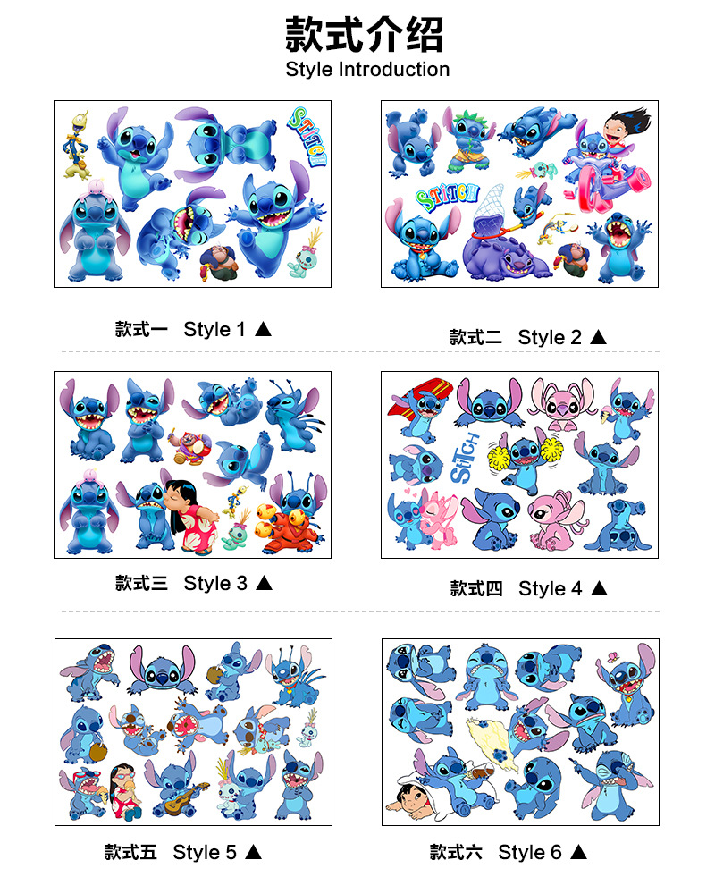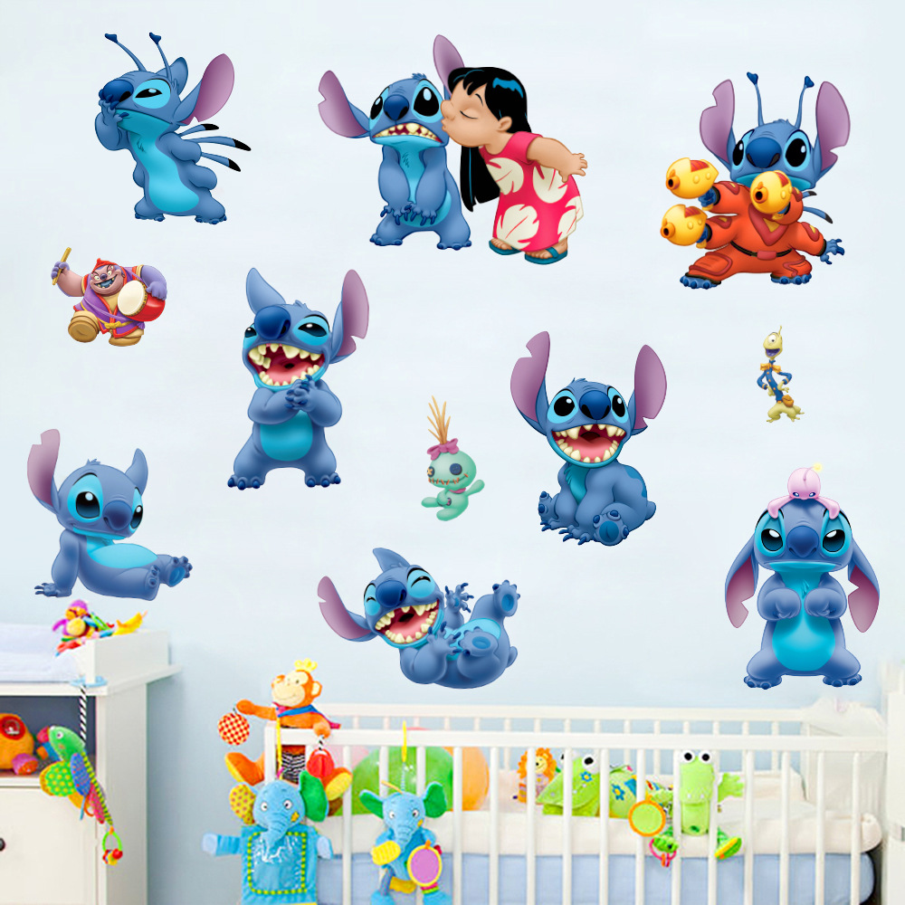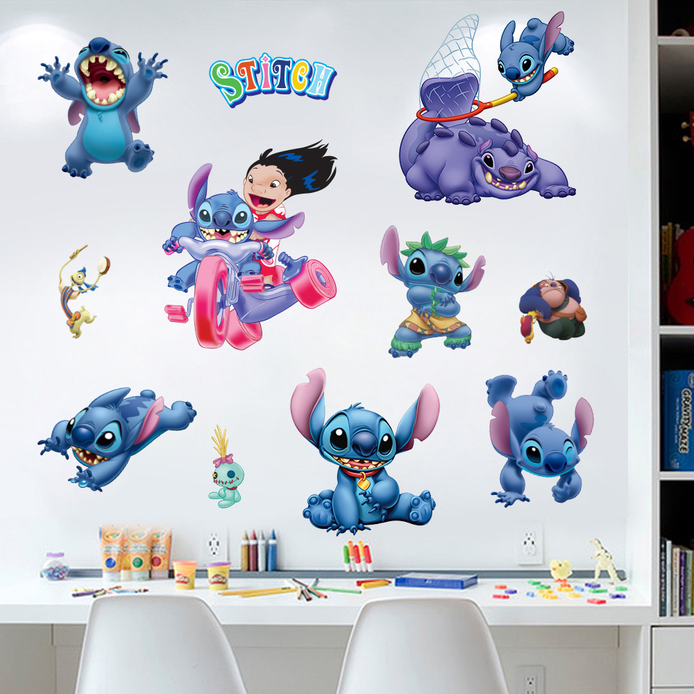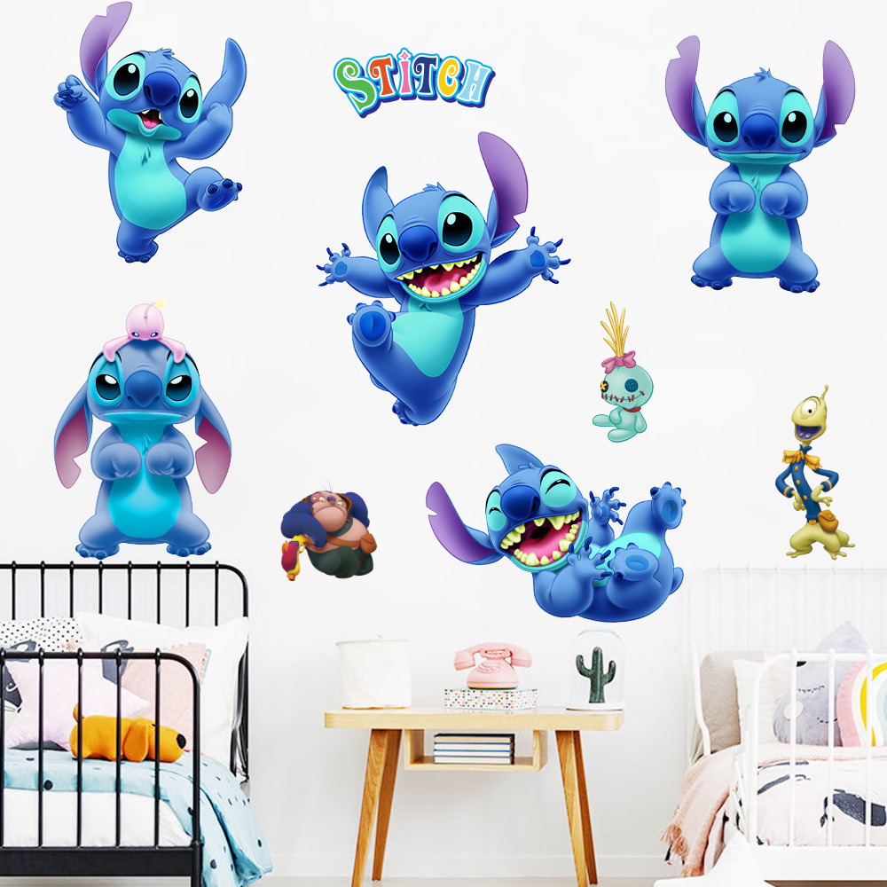 Трансграничный Стирпа мультфильм анимированные наклейки для мальчиков Спальня Стич декоративная настенная наклейка водонепроницаемая самоклеящаяся стеклянная наклейка