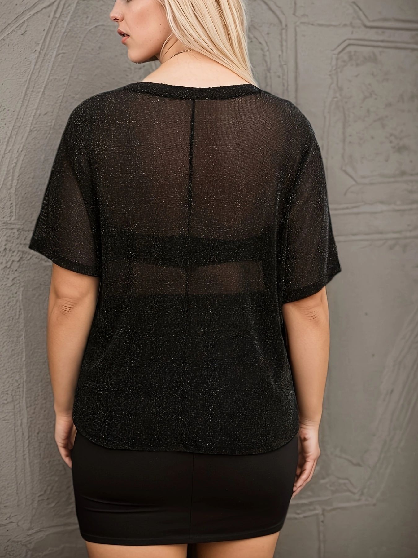Женская футболка-топ из сетки с коротким рукавом, свободного кроя, повседневная, элегантная, модная, сексуальная, слегка полупрозрачная, для трансграничной торговли в Европе и Америке, коллекция 2025 года.