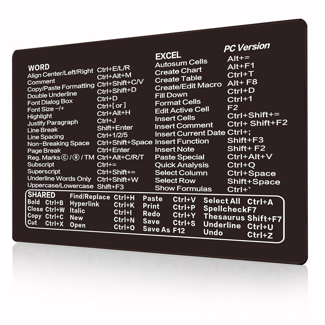 Коврик для мыши с сочетанием клавиш: