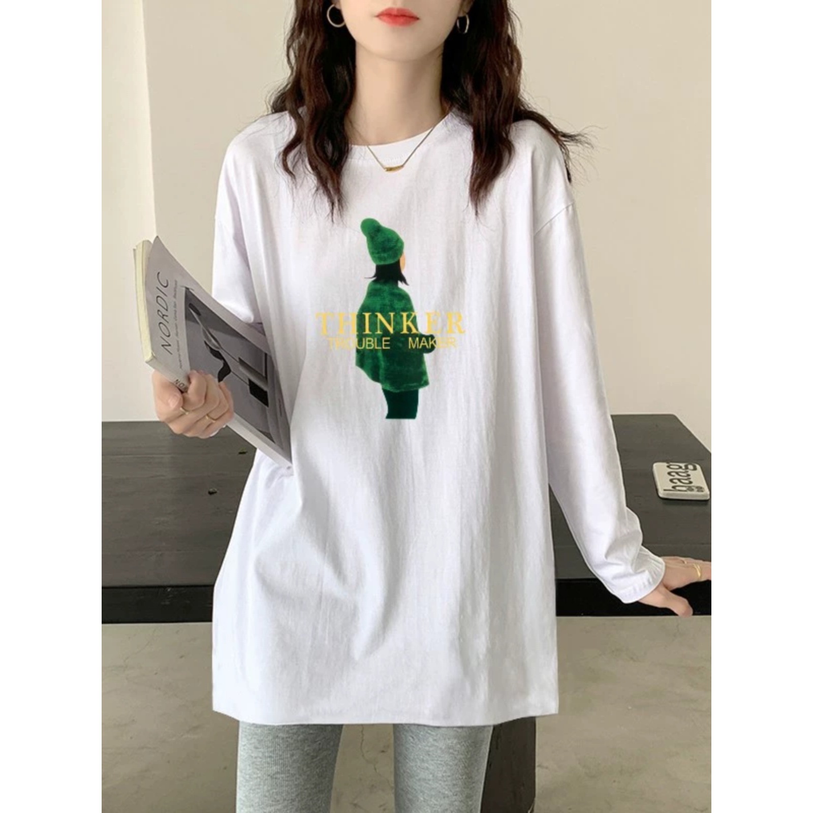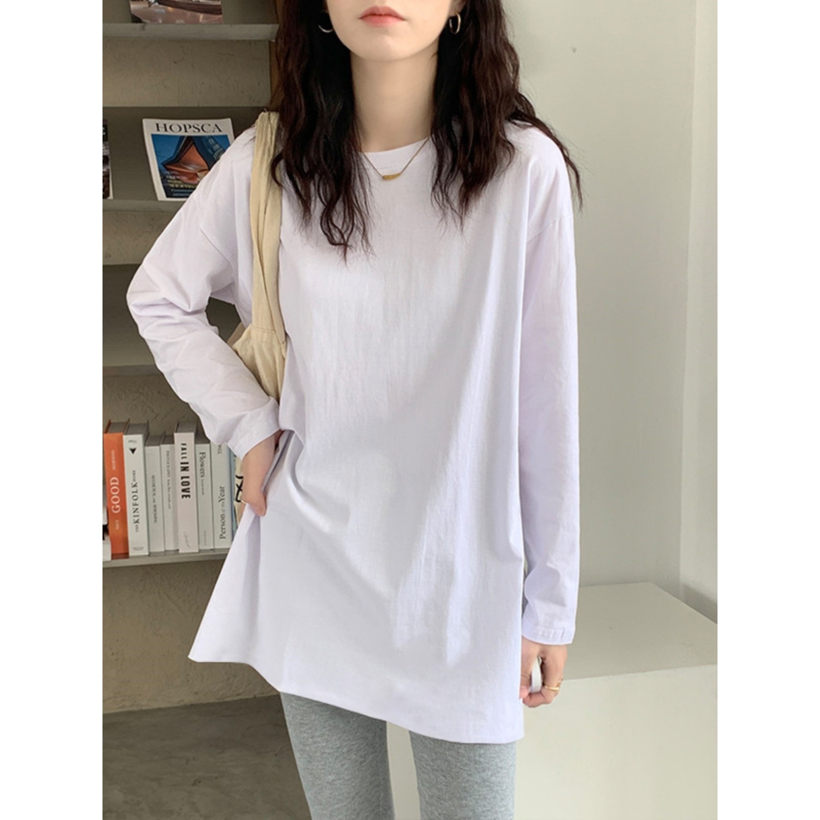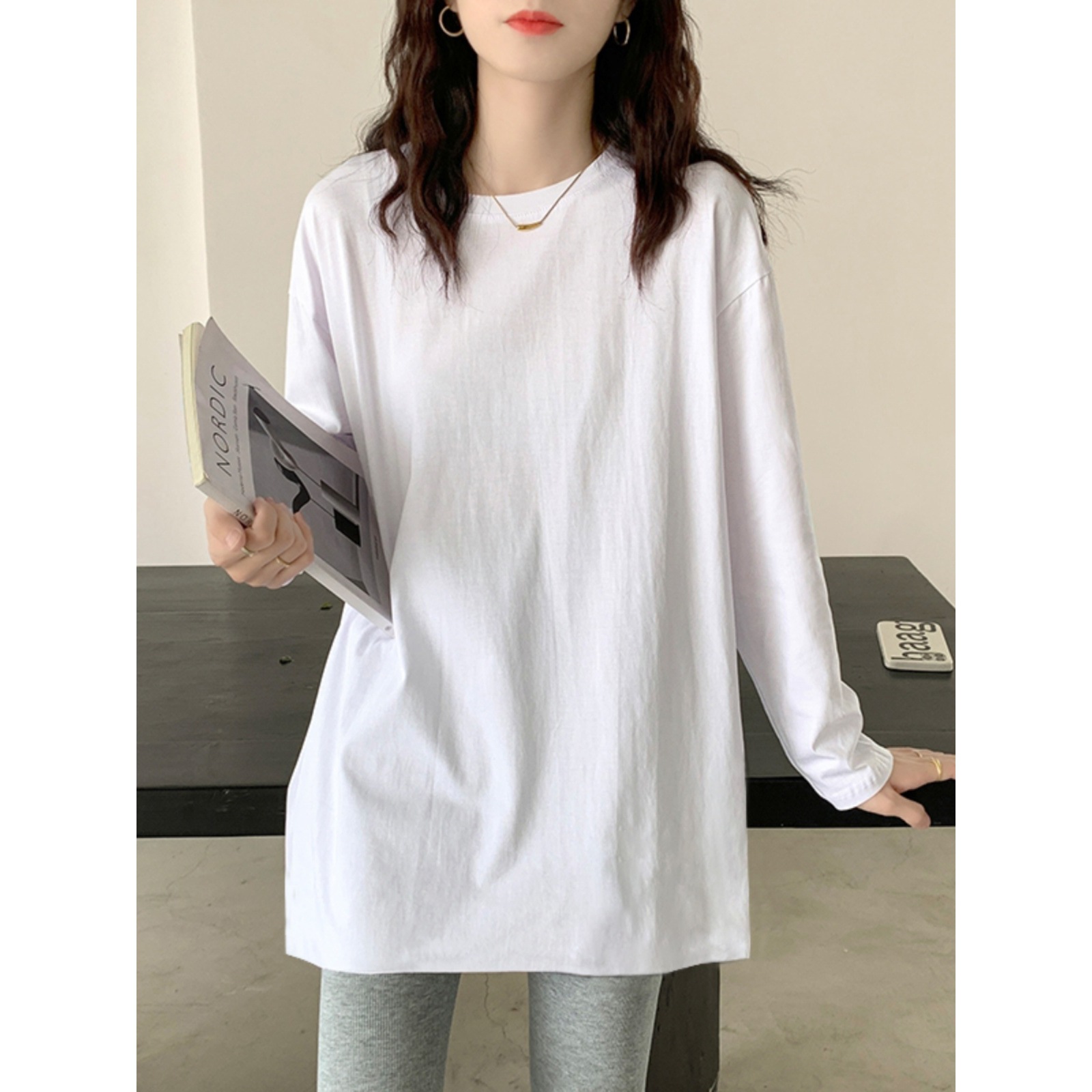 Ранняя весна, осень и зима длинная белая рубашка с длинными рукавами, хлопковая свитер