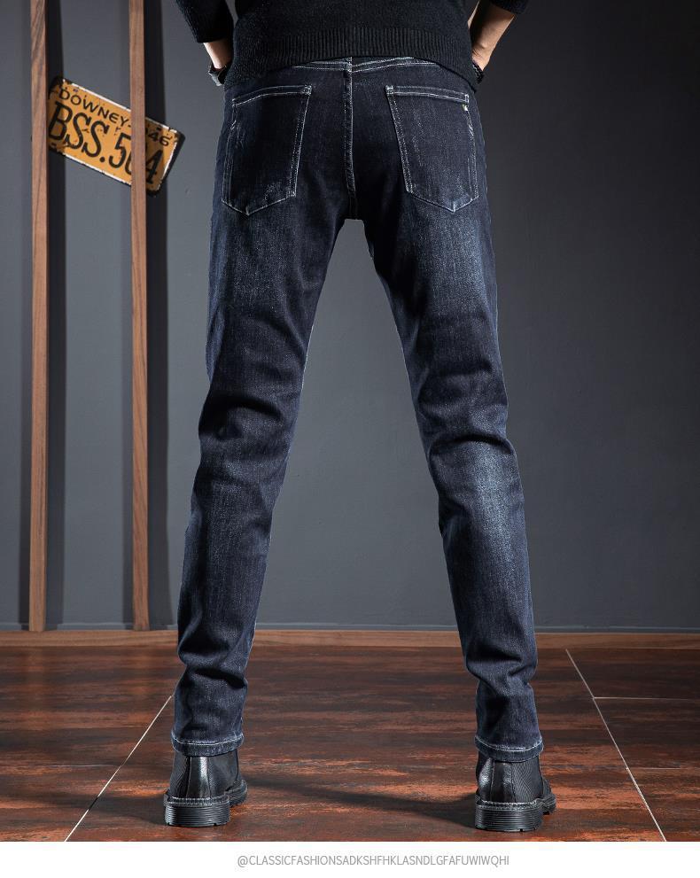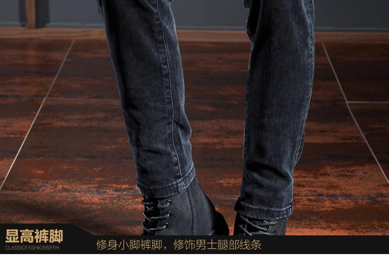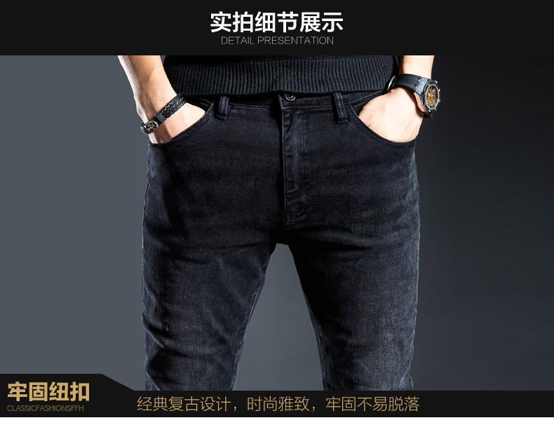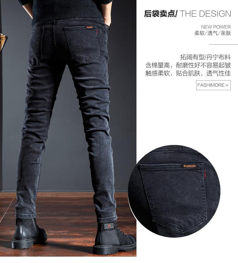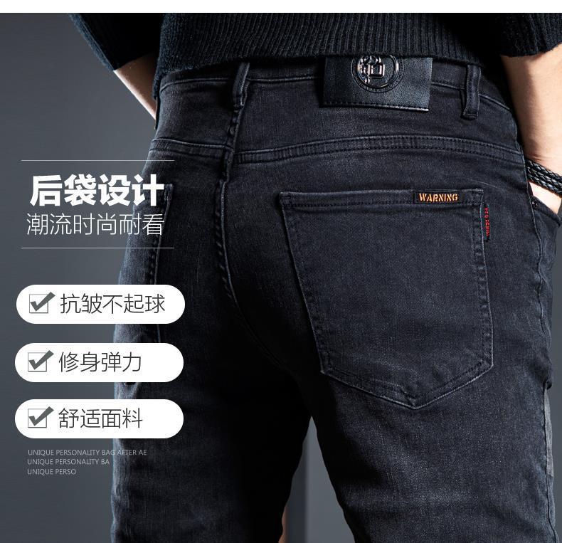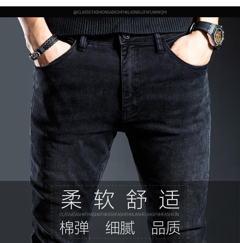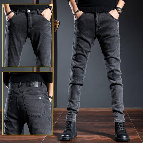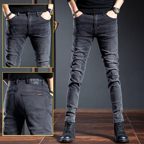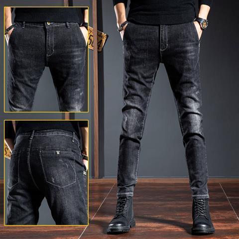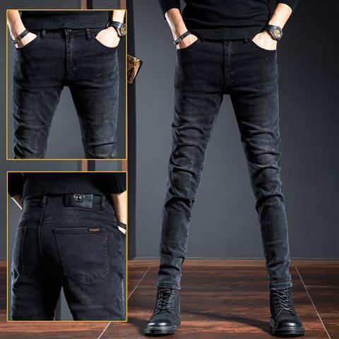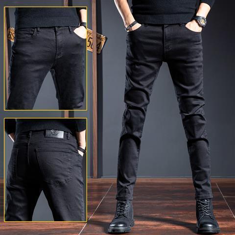 高端春季黑色牛仔裤男修身小脚潮牌男士春秋款韩版潮流休闲长裤子>