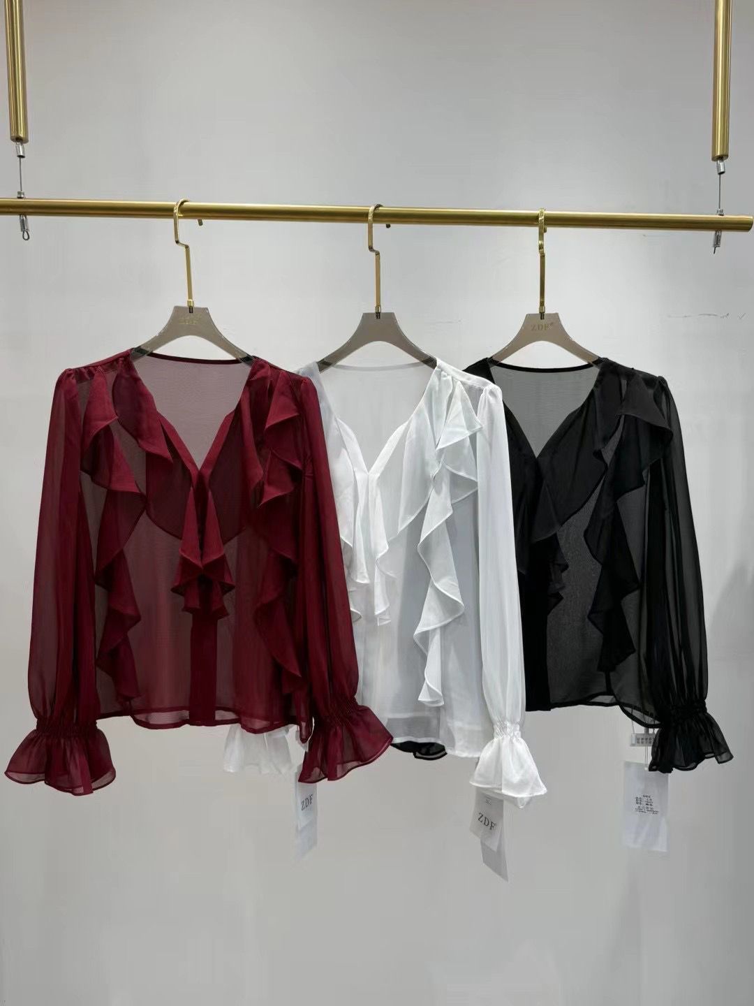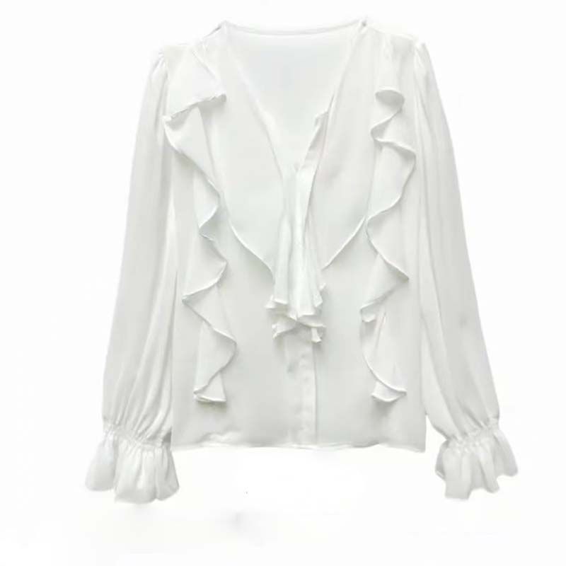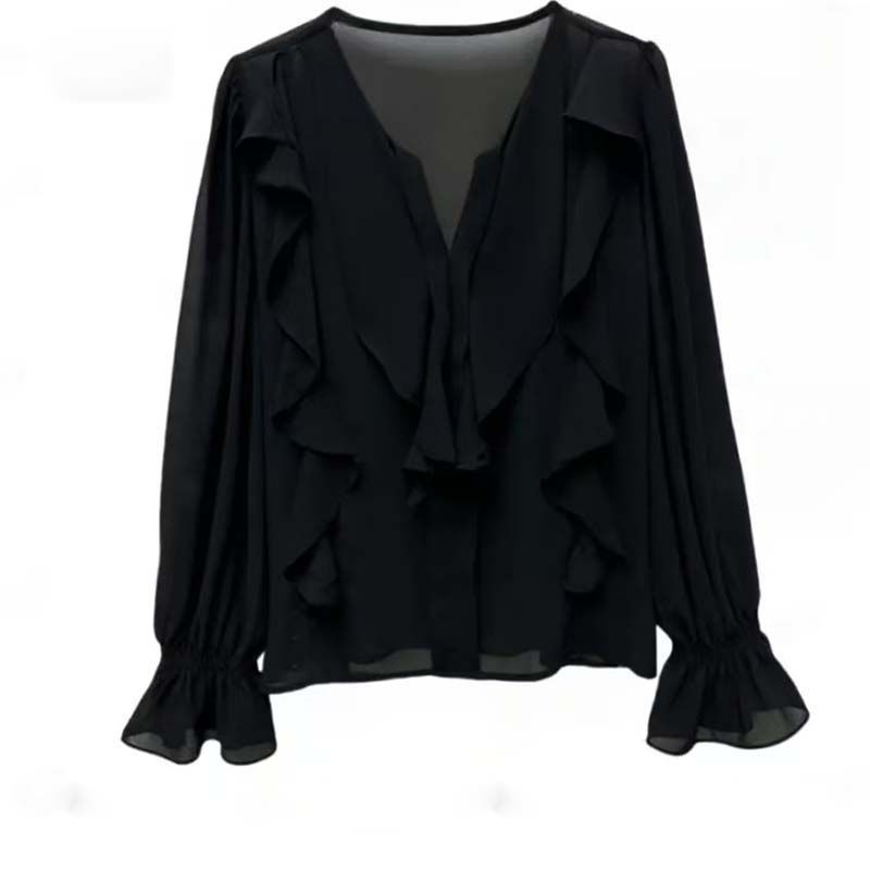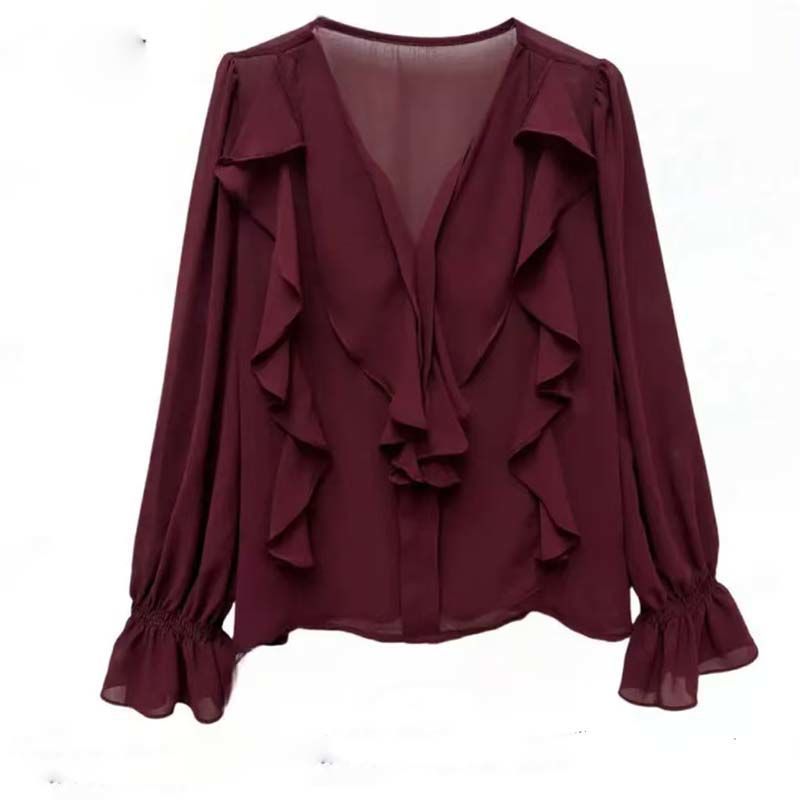 Французская супер-фея с v-образным вырезом и рюшами, рубашка с длинными рукавами для женщин на весну и осень, новый элегантный тонкий и универсальный тонкий шифоновый топ