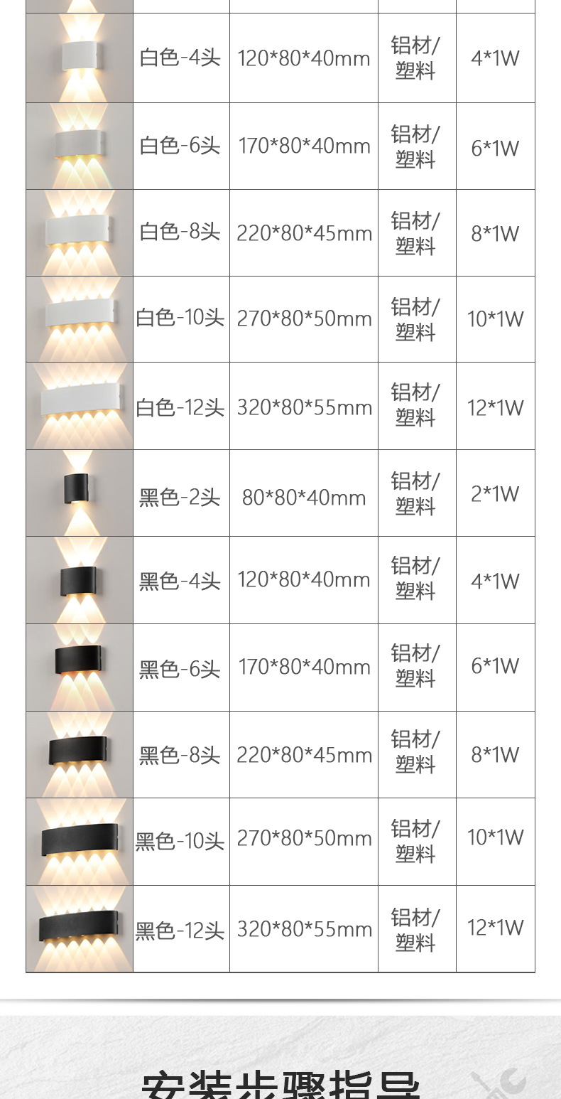 Белый-2*1Вт; Черный-2*1Вт; Белый-4*1Вт; Черный-4*1Вт; Белый-6*1Вт; Черный-6*1Вт; Белый-8*1Вт; Черный-8*1Вт; Белый-10*1Вт; Черный-10*1Вт; Белый-12*1Вт; Черный-12*1Вт