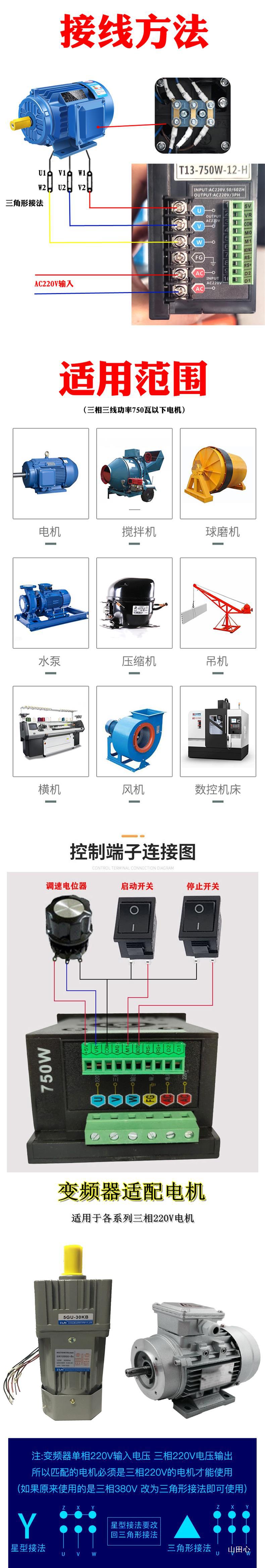 Малый векторный преобразователь частоты, трехфазный асинхронный двигатель, регулирование скорости T13-750W-12-H, однофазный, от 220 В до 380 В