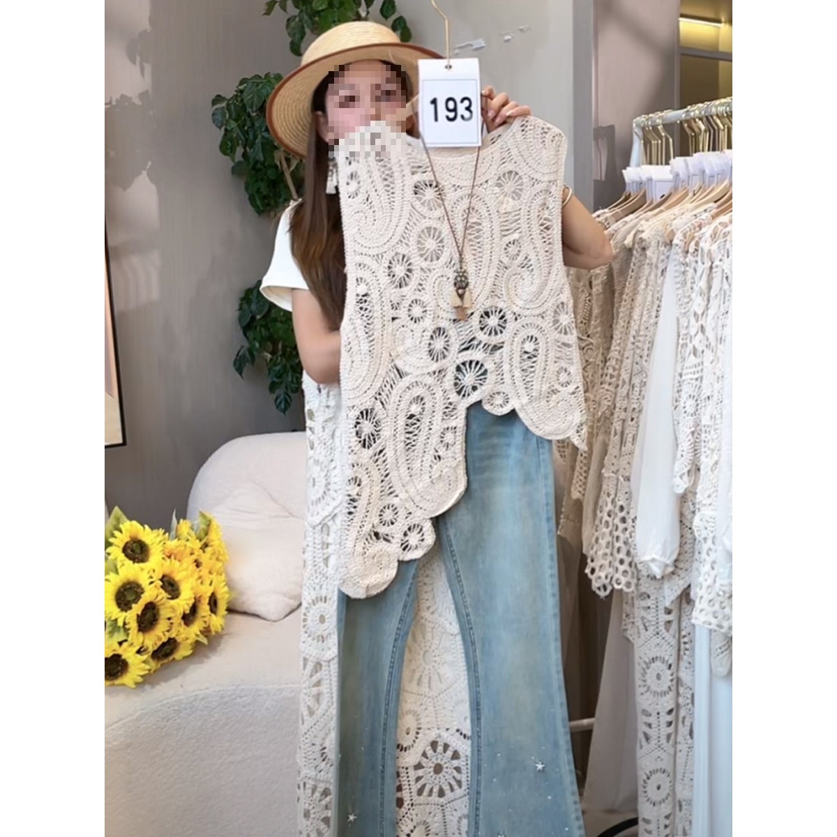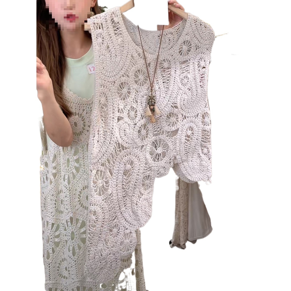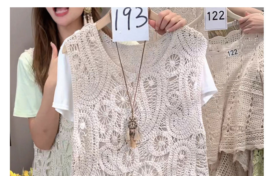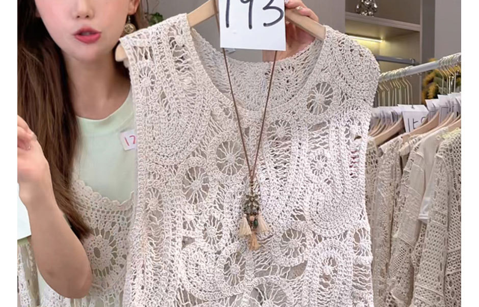 Черный шикарный полый сплошной жилет крючка для женщин 2025 Новый французский маленький без рукавов топ