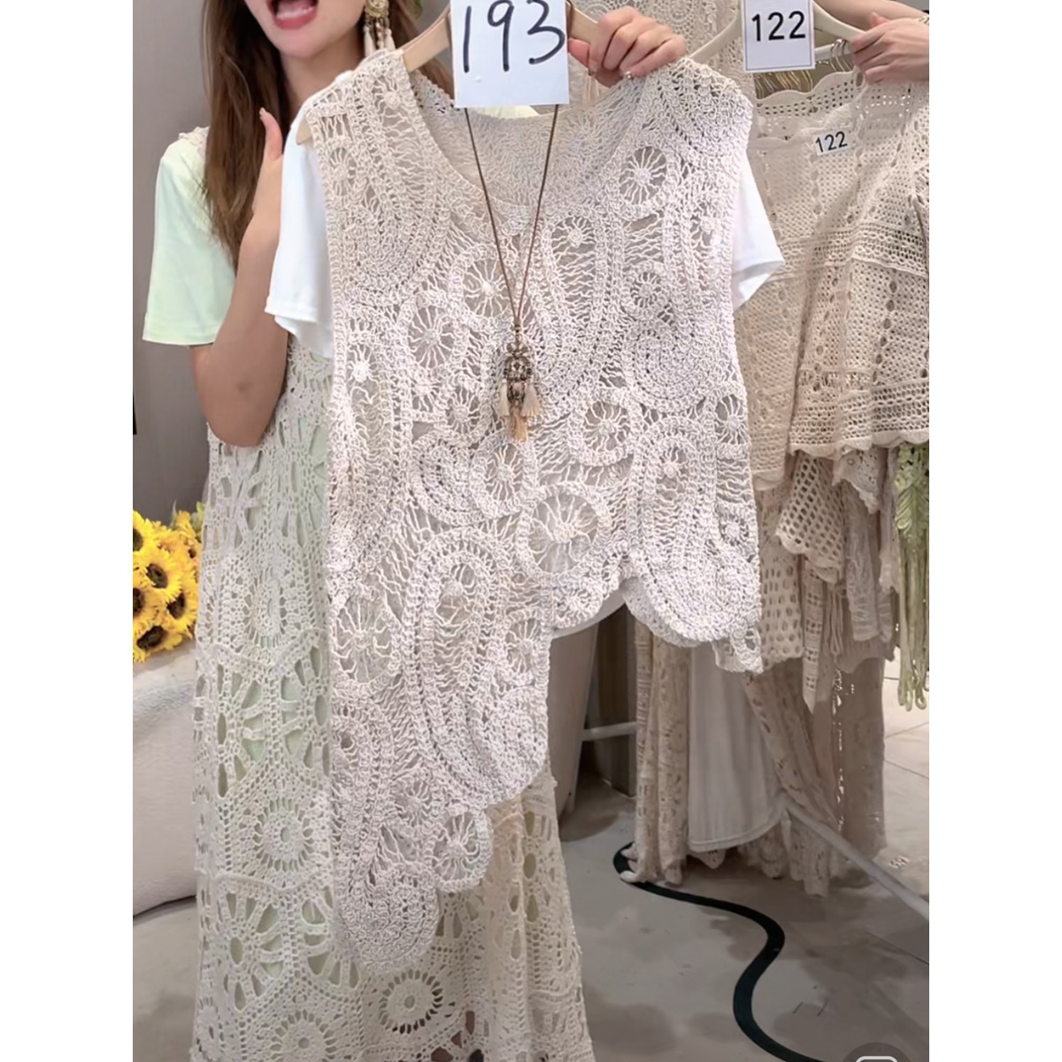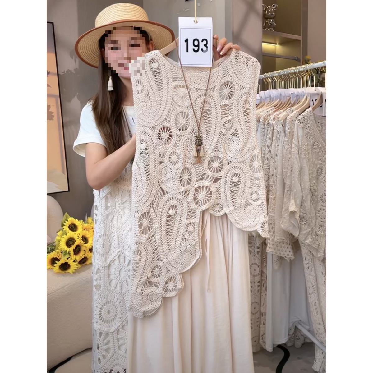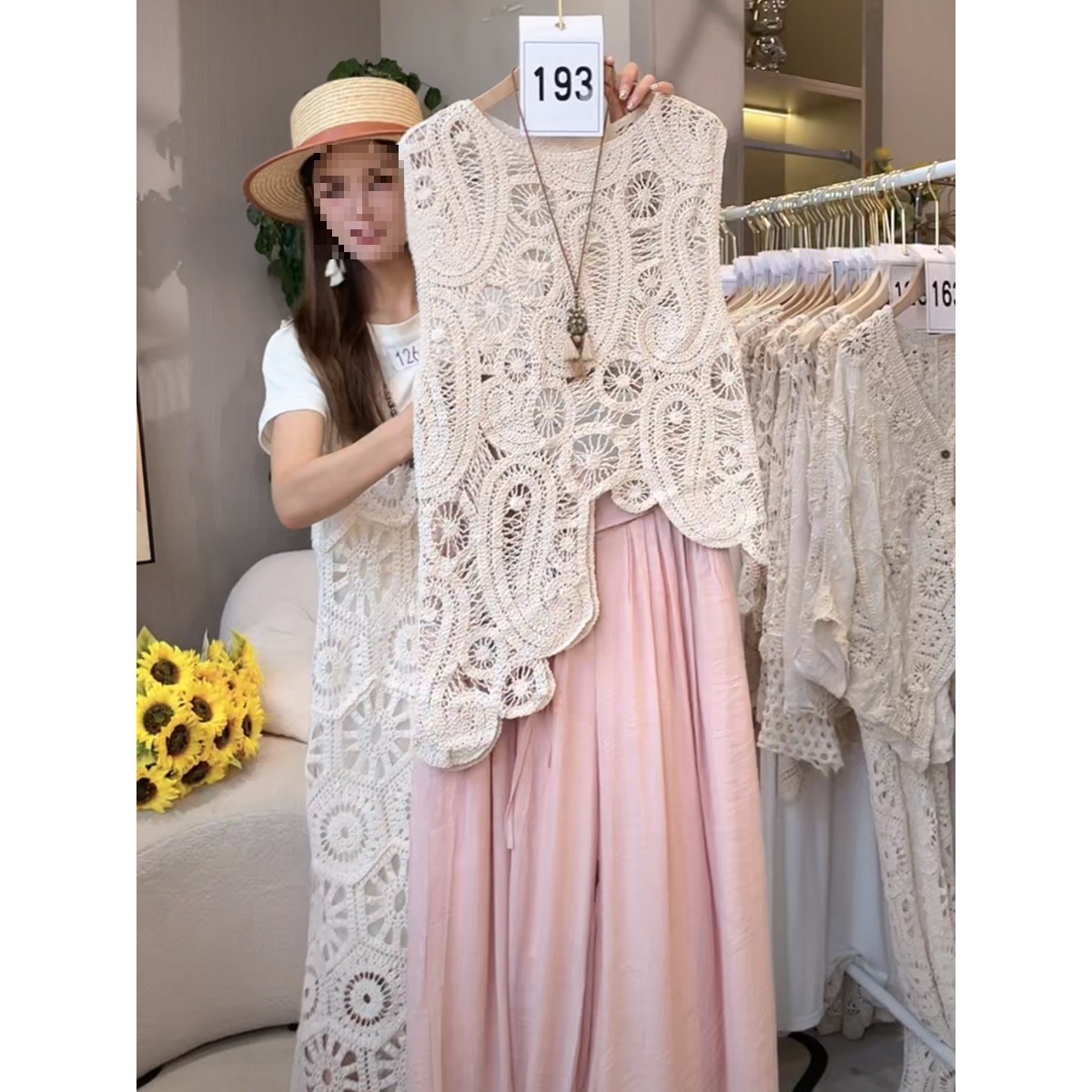 Черный шикарный полый сплошной жилет крючка для женщин 2025 Новый французский маленький без рукавов топ