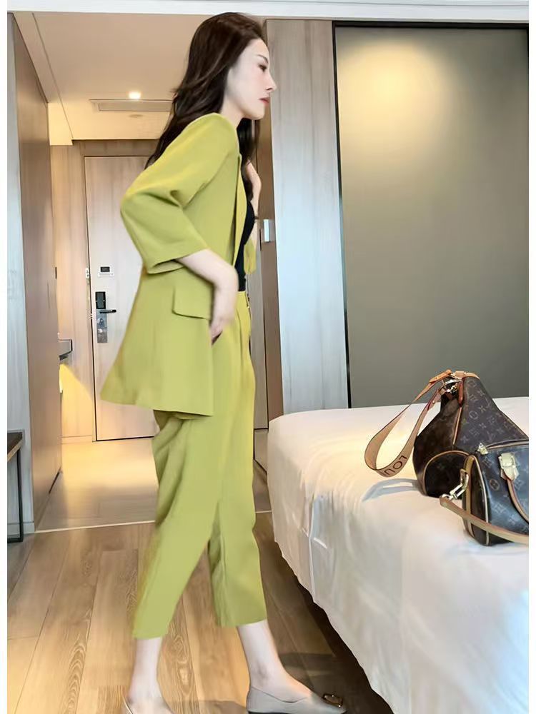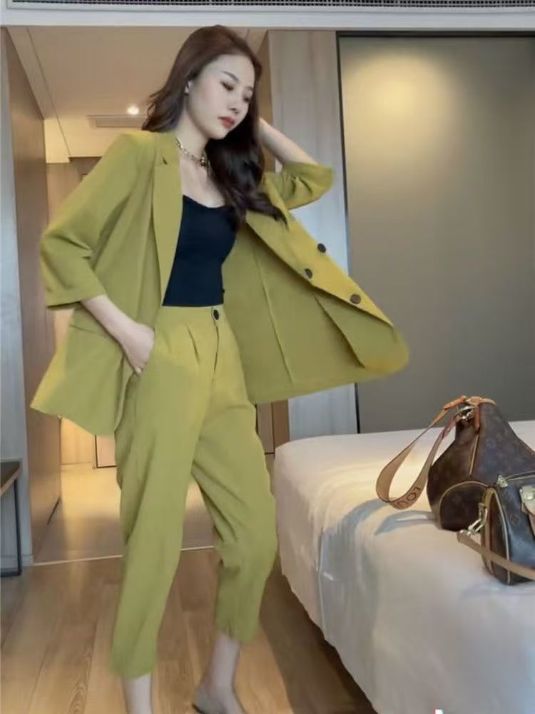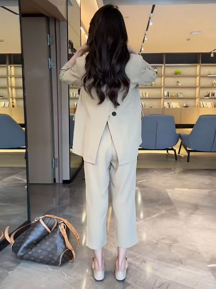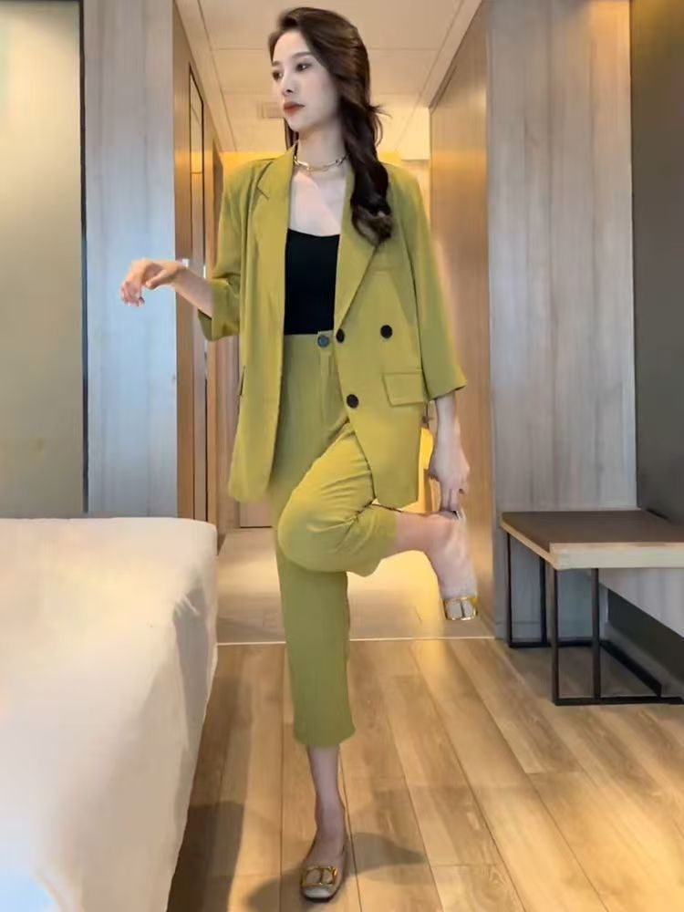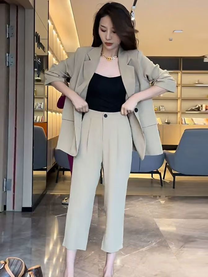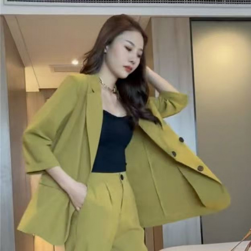 Модный женский костюм больших размеров, новый стильный повседневный пиджак с высокой талией, тонкий укороченный модный комплект из двух предметов