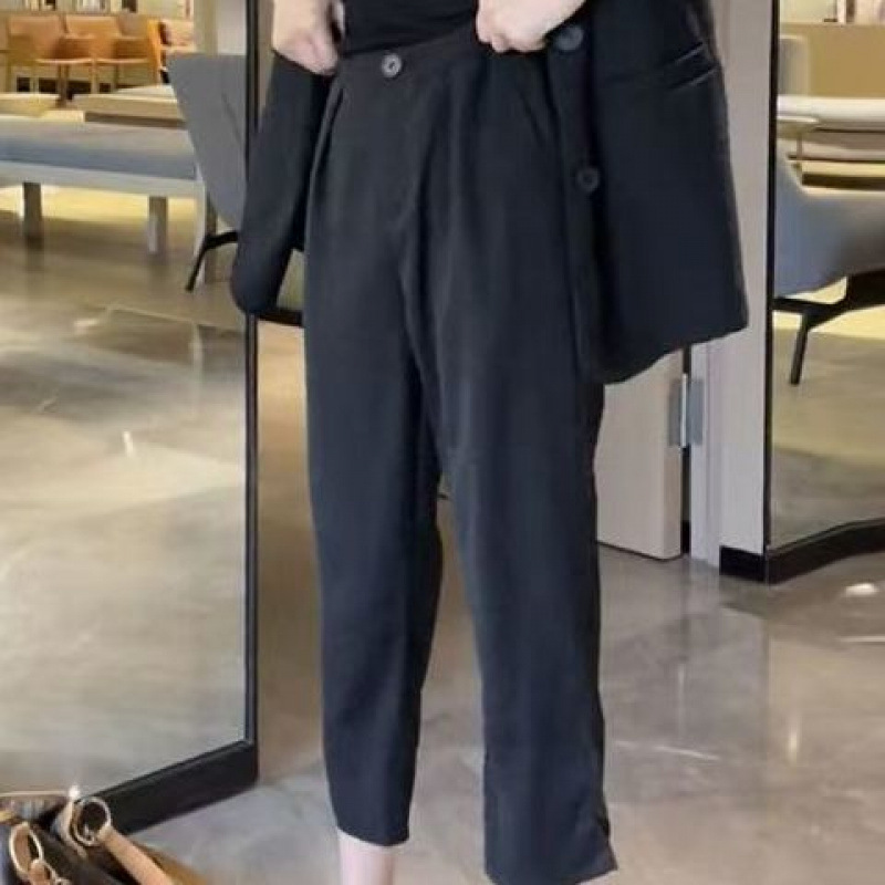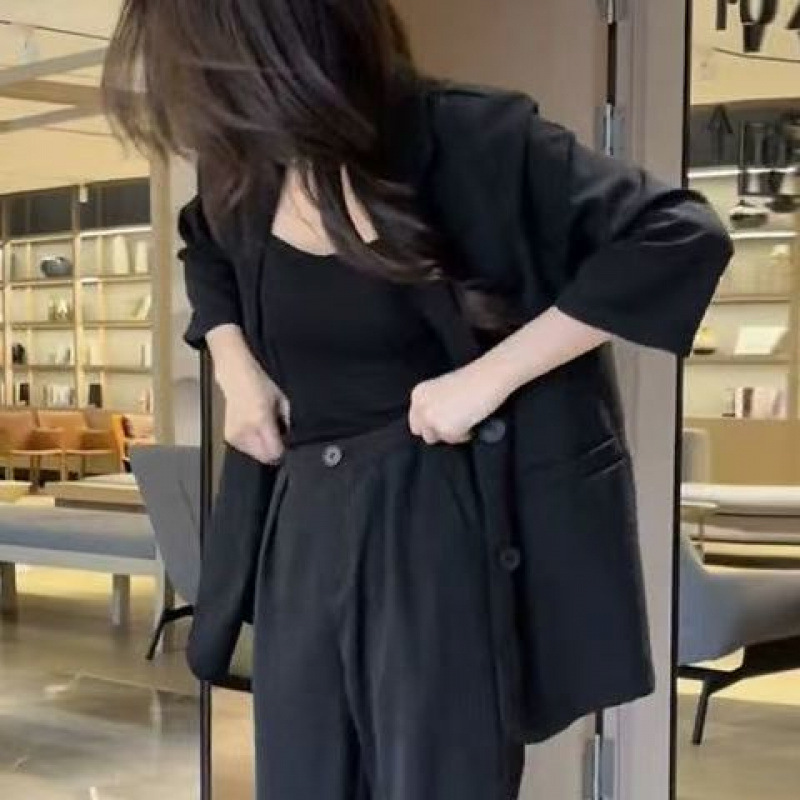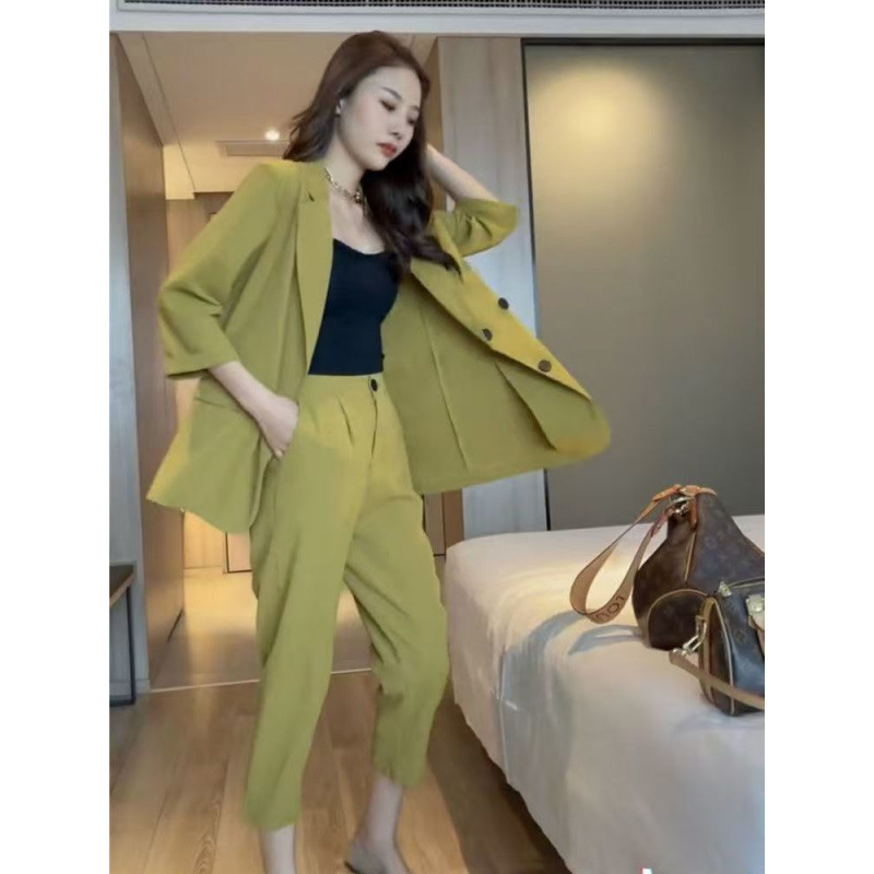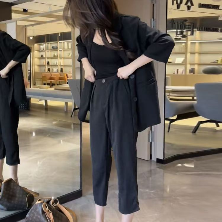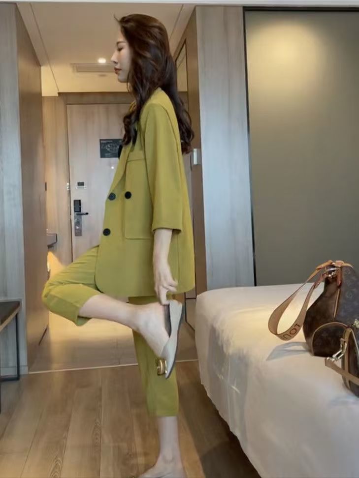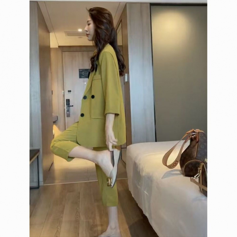Модный женский костюм больших размеров, новый стильный повседневный пиджак с высокой талией, тонкий укороченный модный комплект из двух предметов
