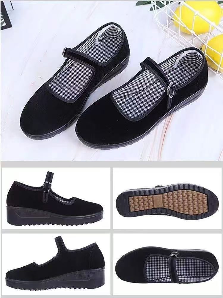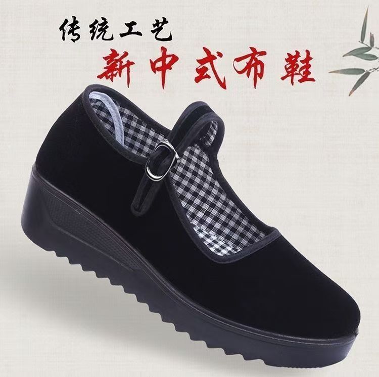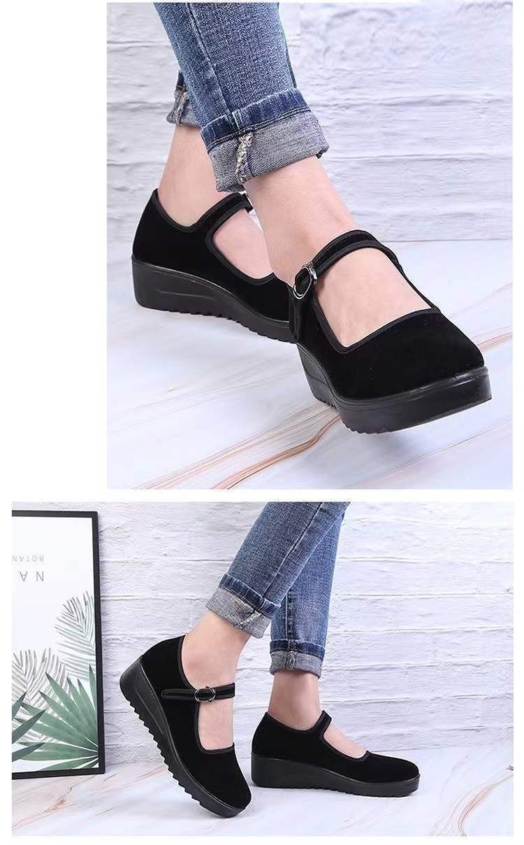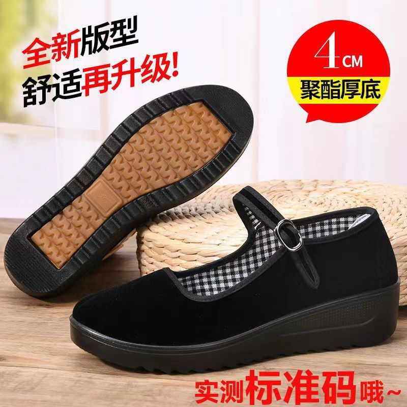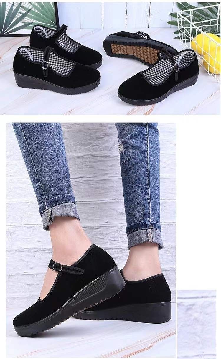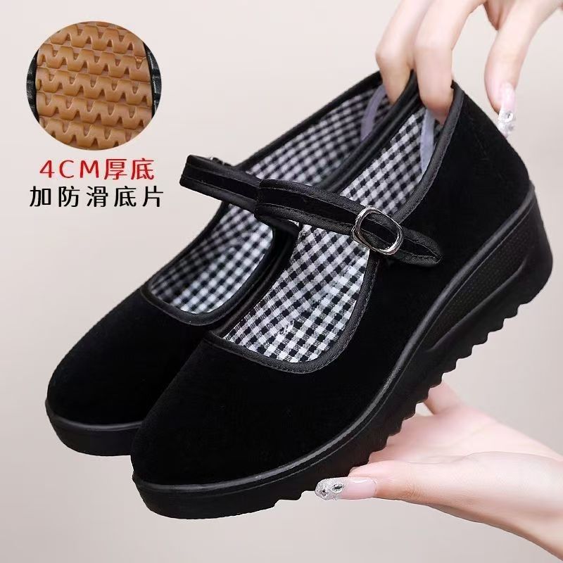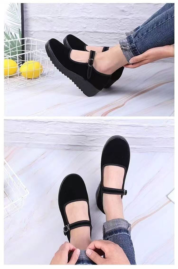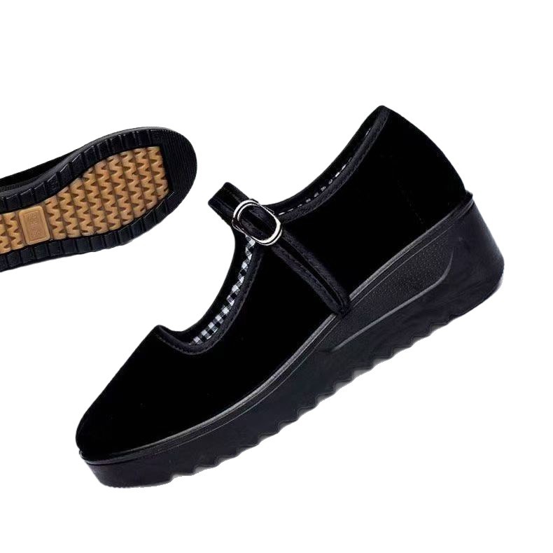 Женские тканевые туфли Old Beijing, рабочая обувь на толстой подошве, увеличивающая рост, женские туфли на плоской подошве на платформе, удобная нескользящая рабочая обувь для гостиниц.