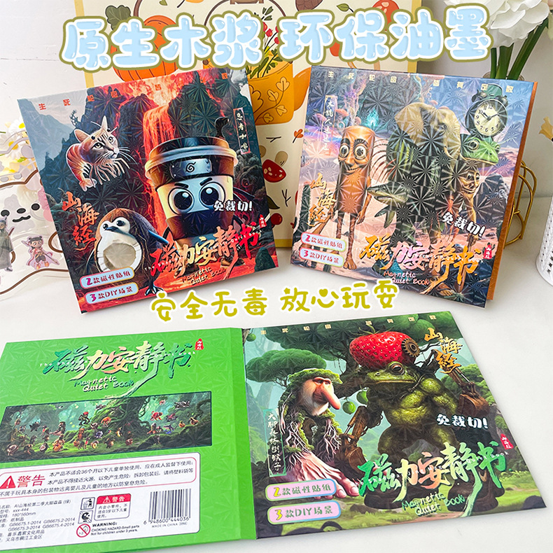 AI Shanhai Цзин Магнитная тихая книга для девочек без обрезки наклейки с магнитным притяжением для детей мальчик магнит игрушка