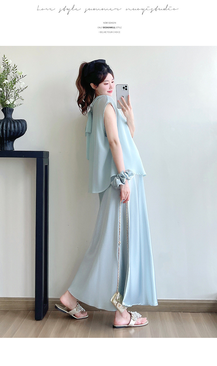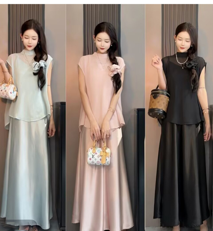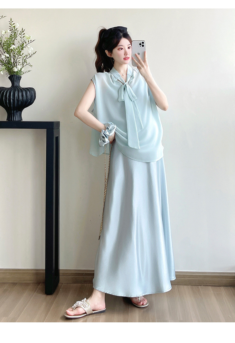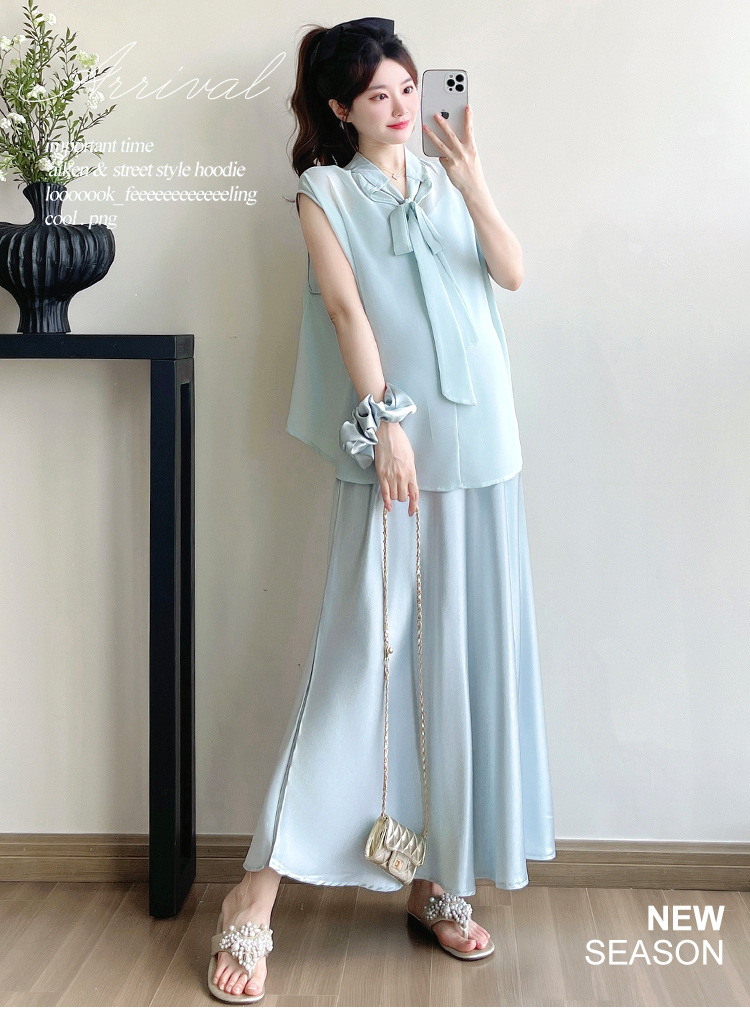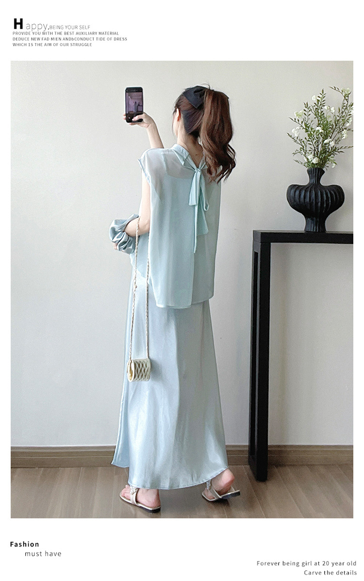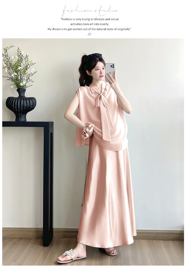 Платья для беременных, летние платья для беременных, продвинутые чувства, носить атласный ацетат топ, подтяжки, темперамент, пригородной поездки, набор из двух частей