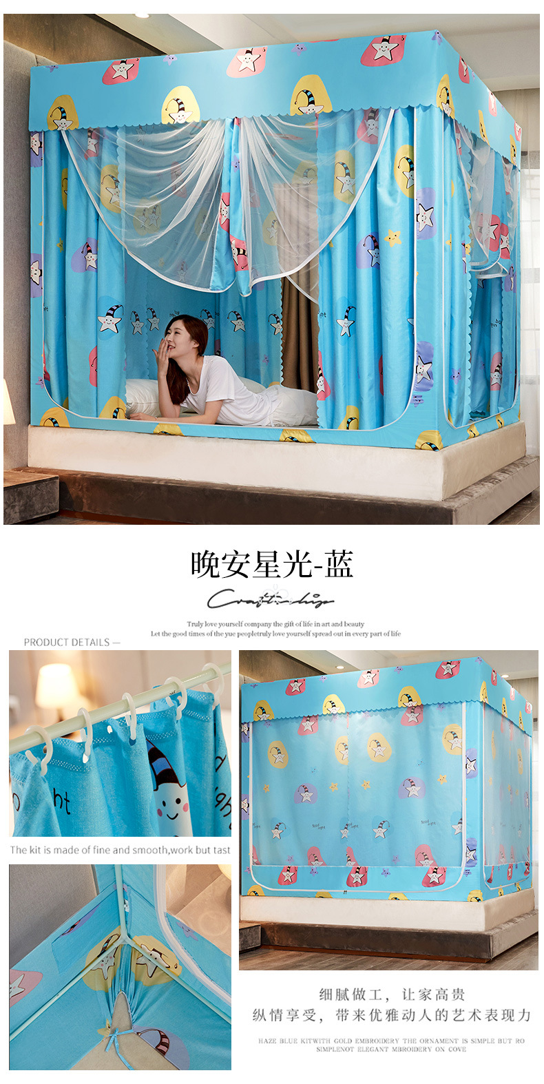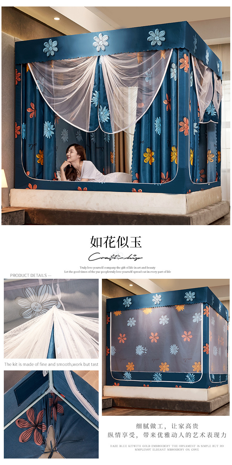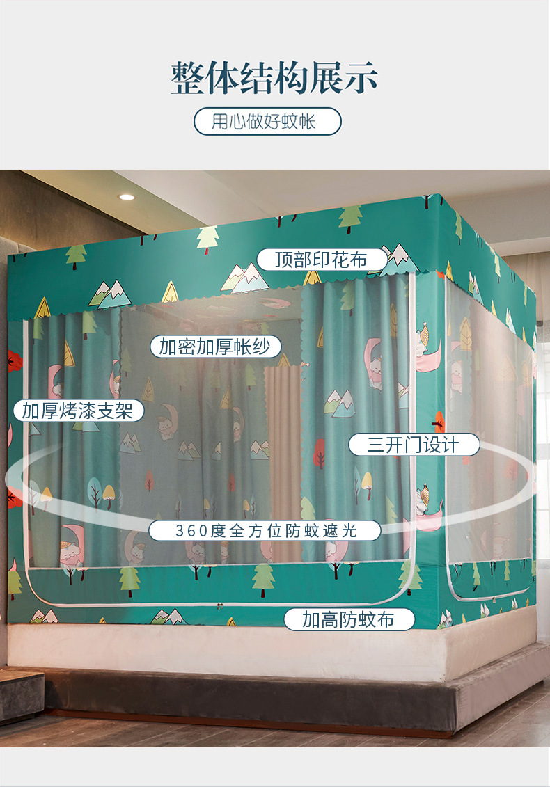 2025 новая U-образная трехдверная плотная занавеска для кровати, москитная сетка для дома, спальни, двуспальная кровать 1.5m /1,8 м