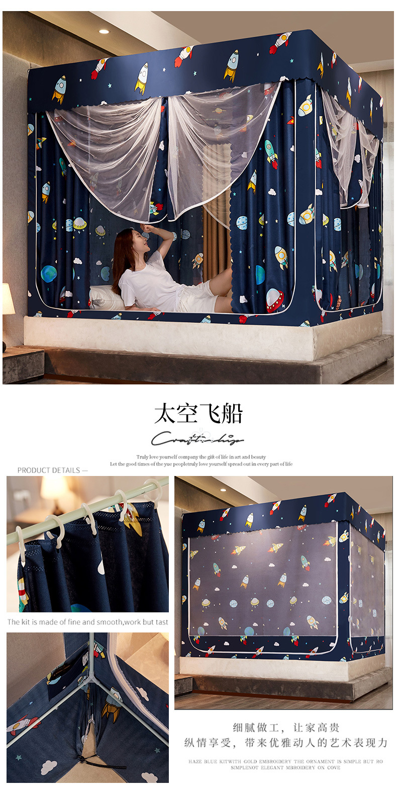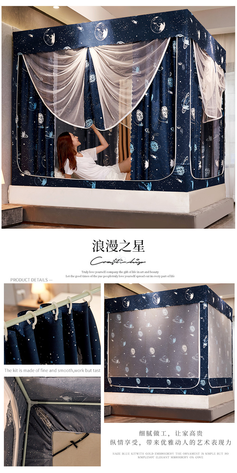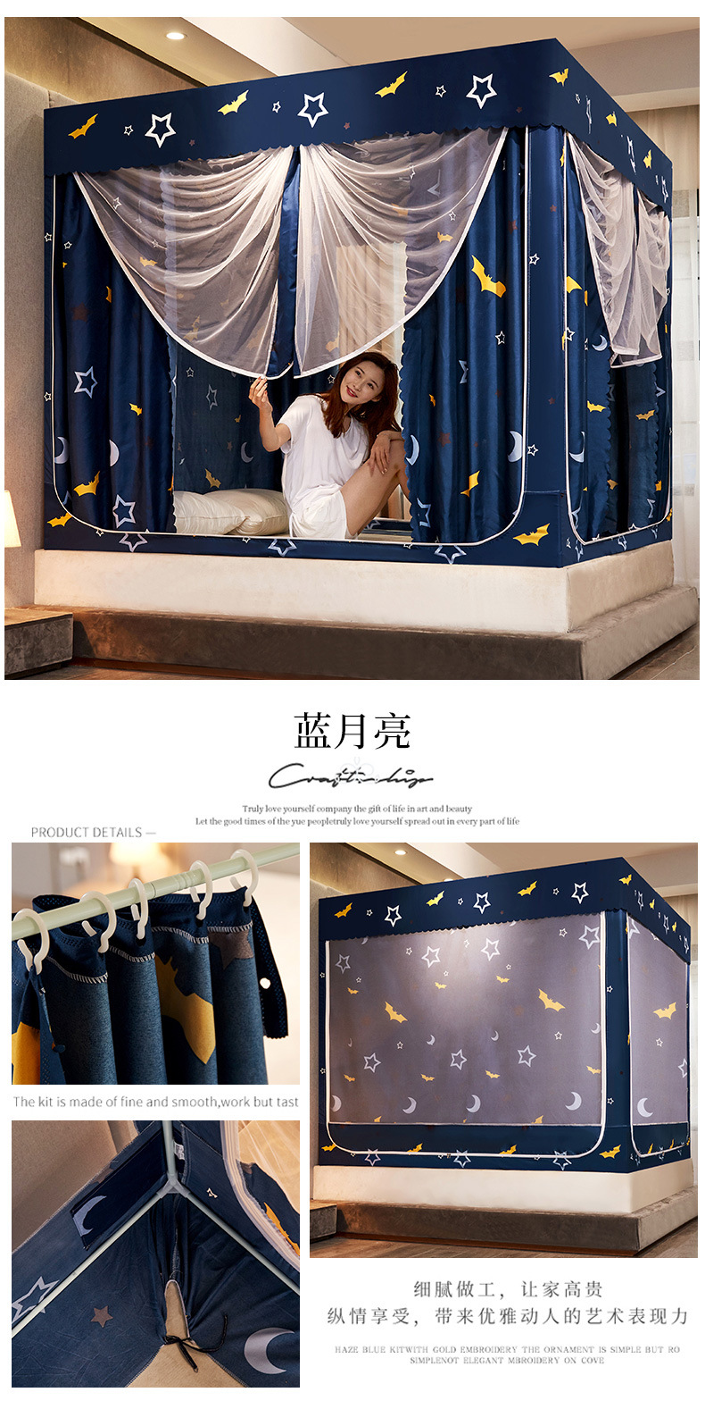 2025 новая U-образная трехдверная плотная занавеска для кровати, москитная сетка для дома, спальни, двуспальная кровать 1.5m /1,8 м