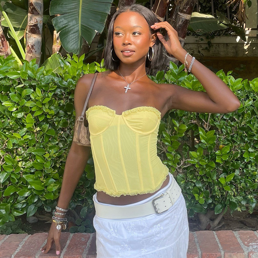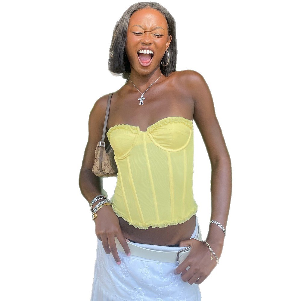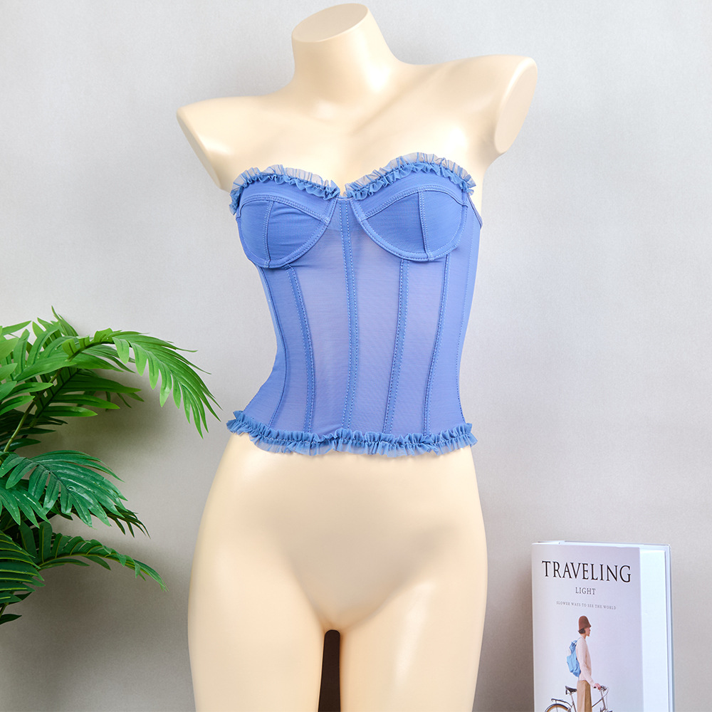 Корсет-бюстье из сетки с двойным слоем и бретелями на спине, эластичное корректирующее белье для женщин, для трансграничной торговли на Amazon в Европе и Америке.