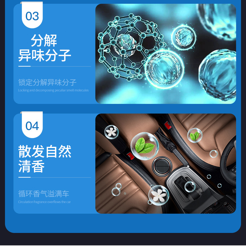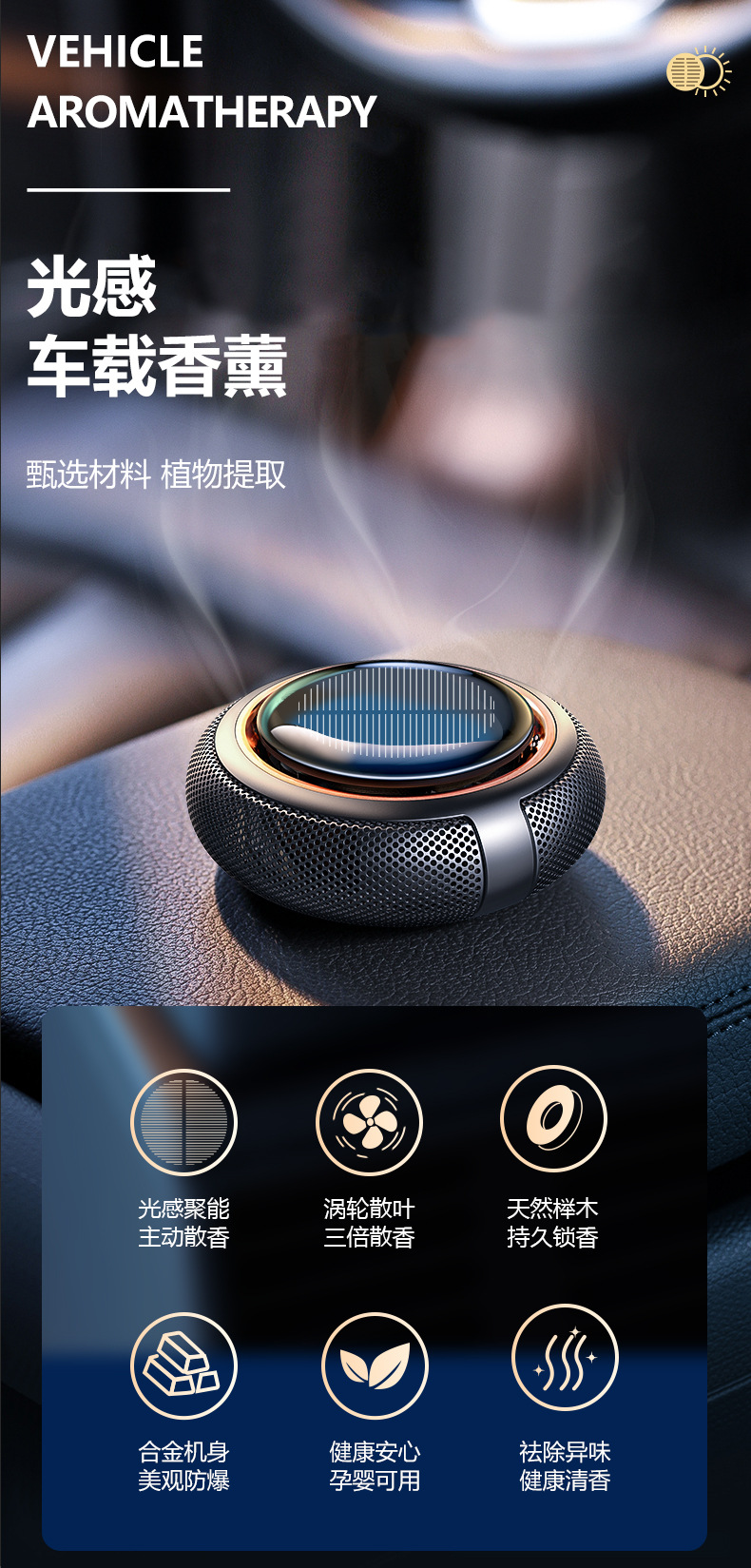 Автомобильный ароматерапевтический декор, новый солнечный вращающийся долговечный ароматизатор и устранитель запахов, украшение для сидений автомобиля.