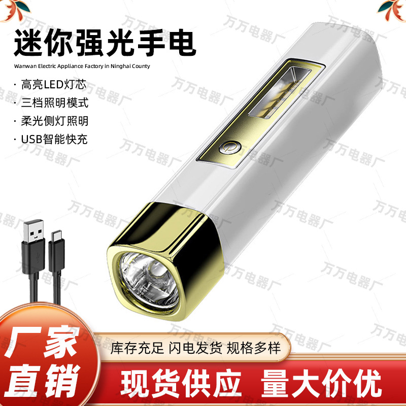 Трансграничный многофункциональный мощный фонарик аварийного блока питания с боковым освещением, USB-зарядка, портативное освещение