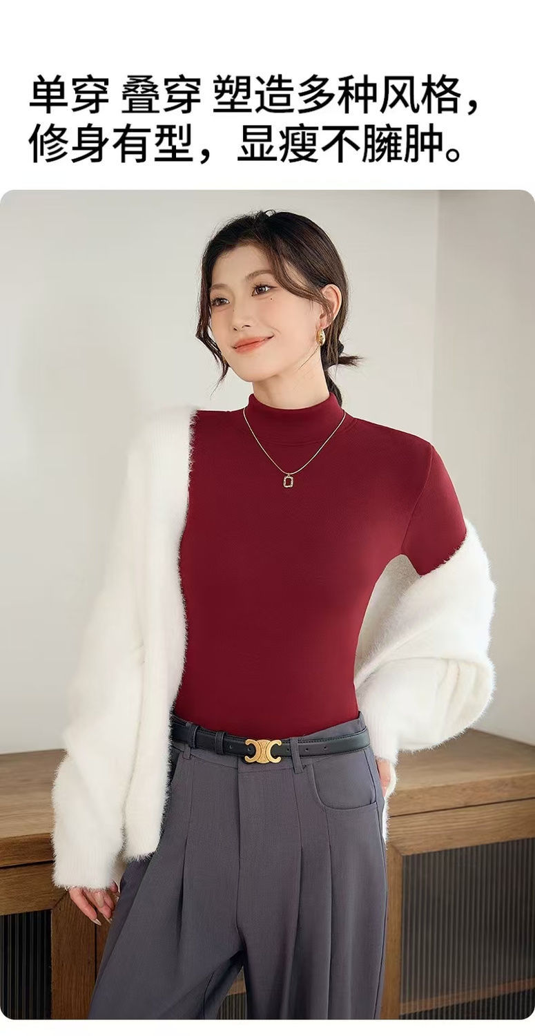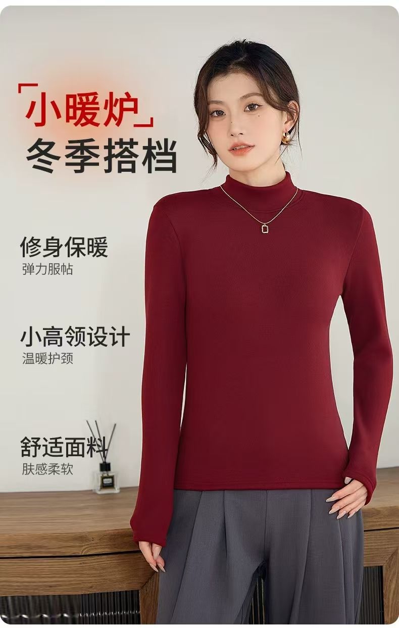 Зимняя женская рубашка с высоким воротником плюс бархатная утолщенная нижняя рубашка, термобелье, топ, красная футболка