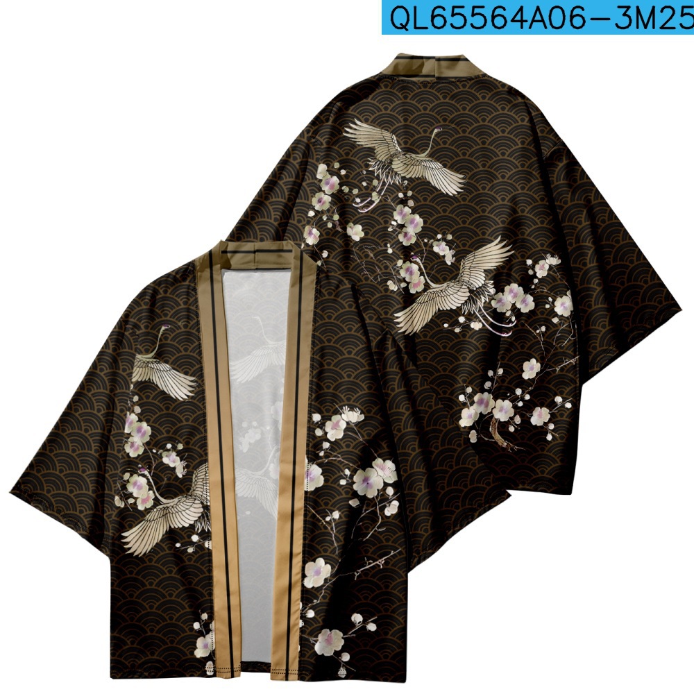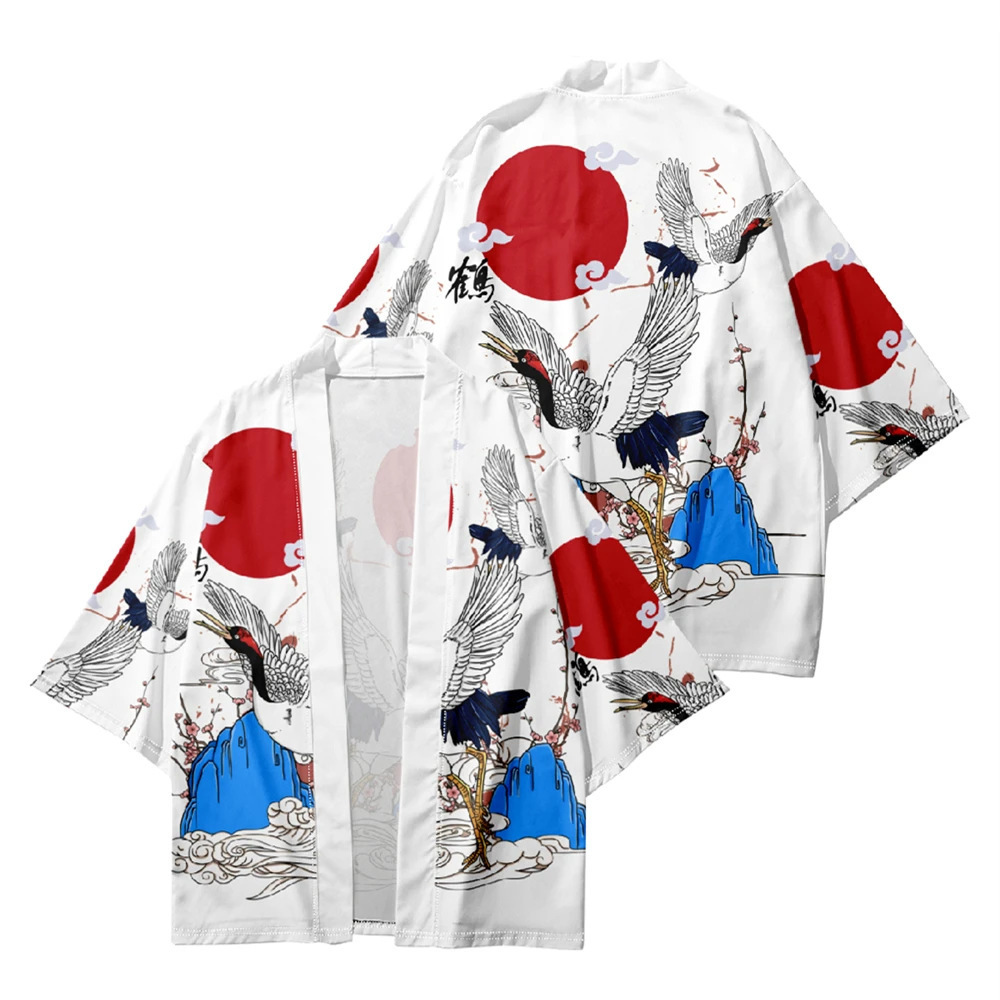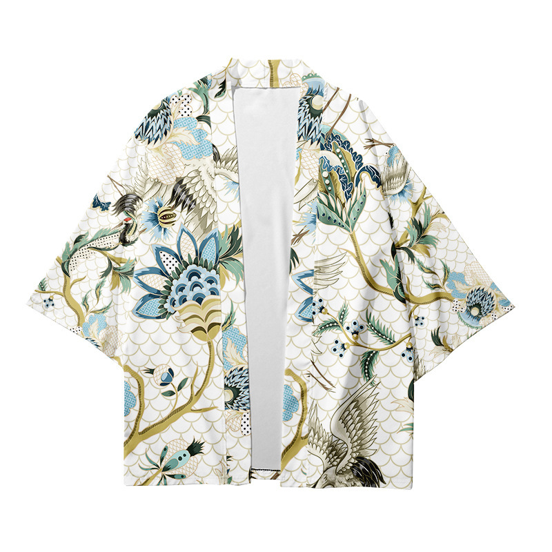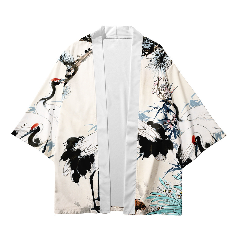 Новая летняя накидка с краном, мужская накидка с 3D цифровой печатью, кардиган в китайском стиле с рукавами три четверти, домашний халат в японском стиле
