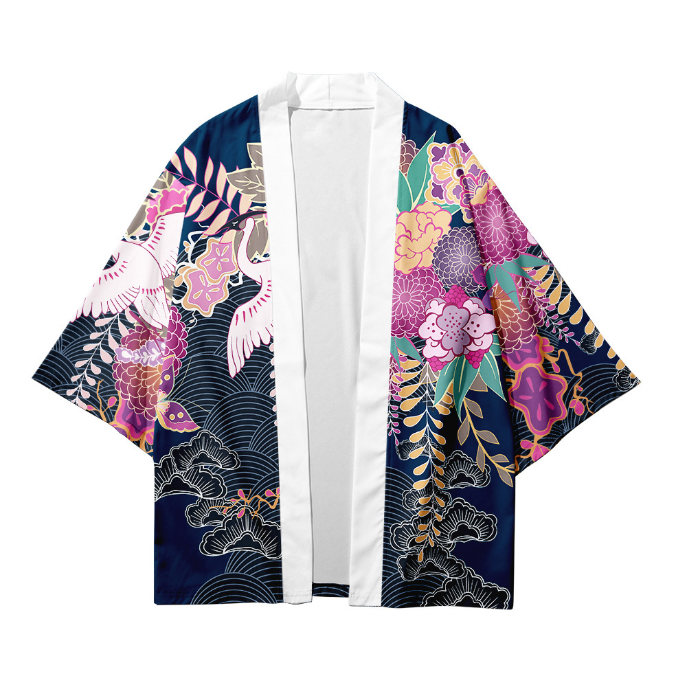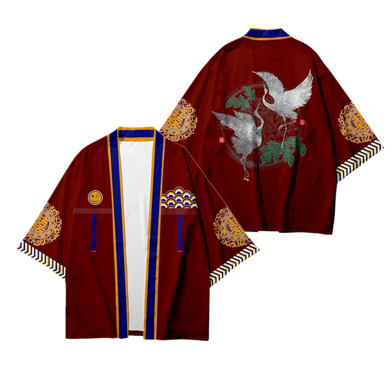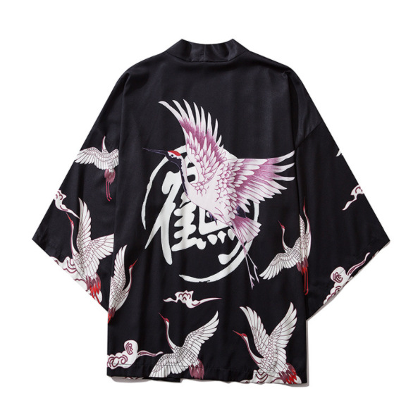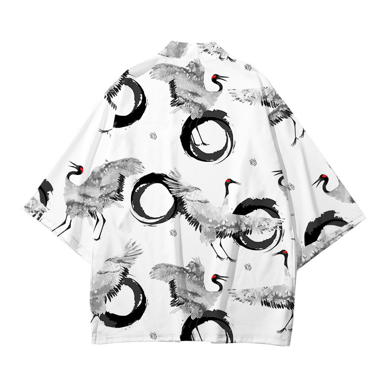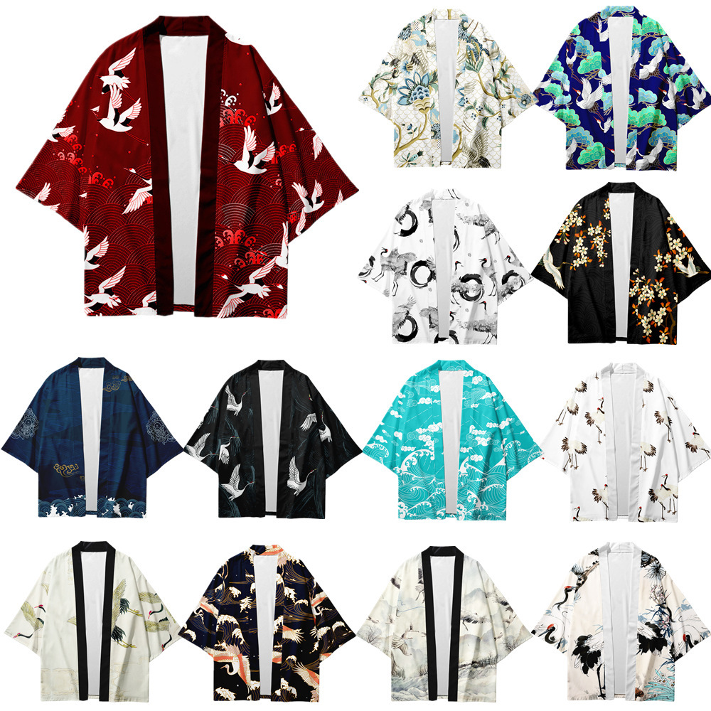 Новая летняя накидка с краном, мужская накидка с 3D цифровой печатью, кардиган в китайском стиле с рукавами три четверти, домашний халат в японском стиле