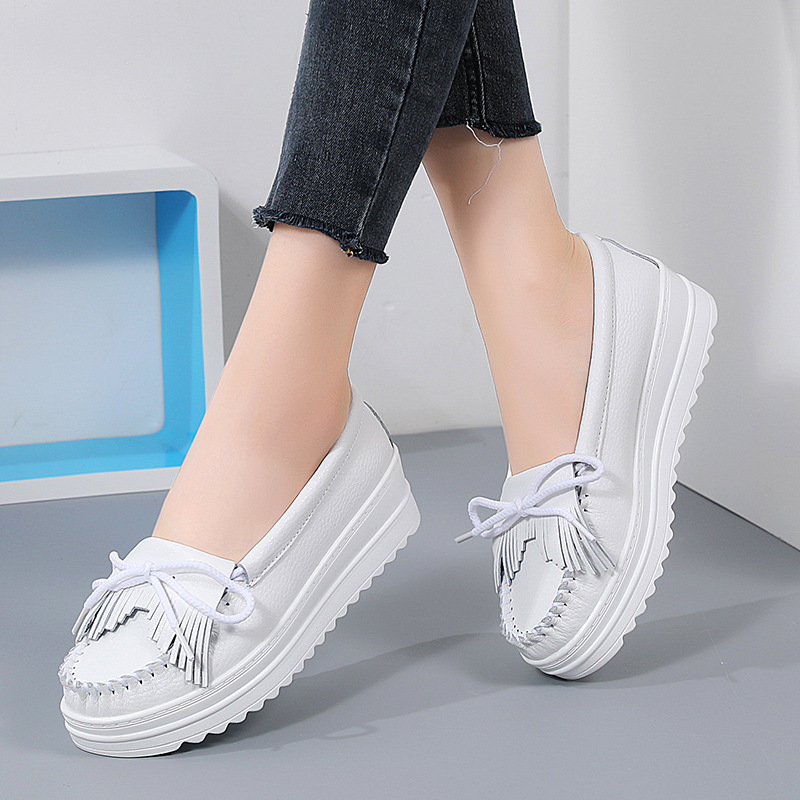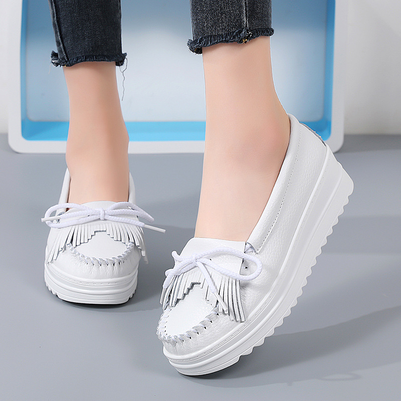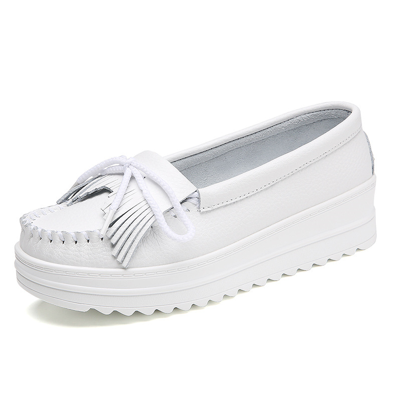 Весенние и летние кожаные туфли медсестры один педаль с бахроной маленькой белой обуви