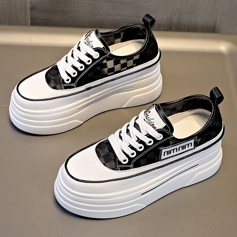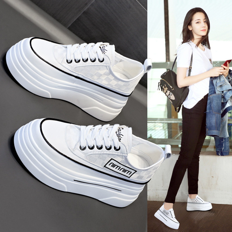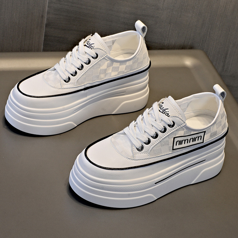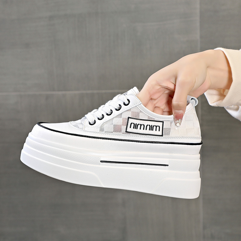 Покупатель для женской белой обуви, осенние туфли на платформе на толстой подошве, повседневные туфли из тонкой натуральной кожи с сеткой для маленьких женщин, 8 см.