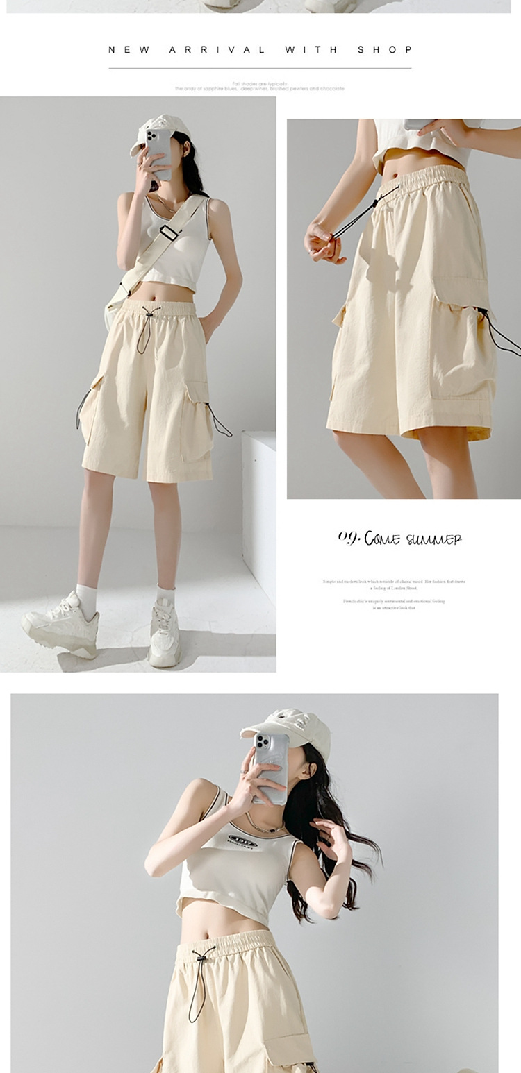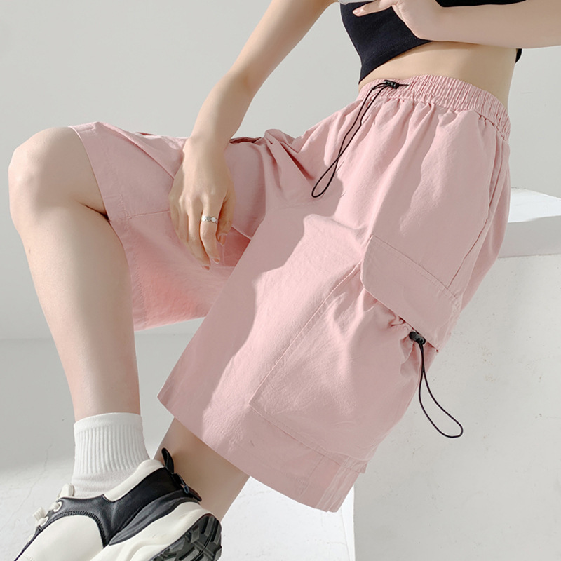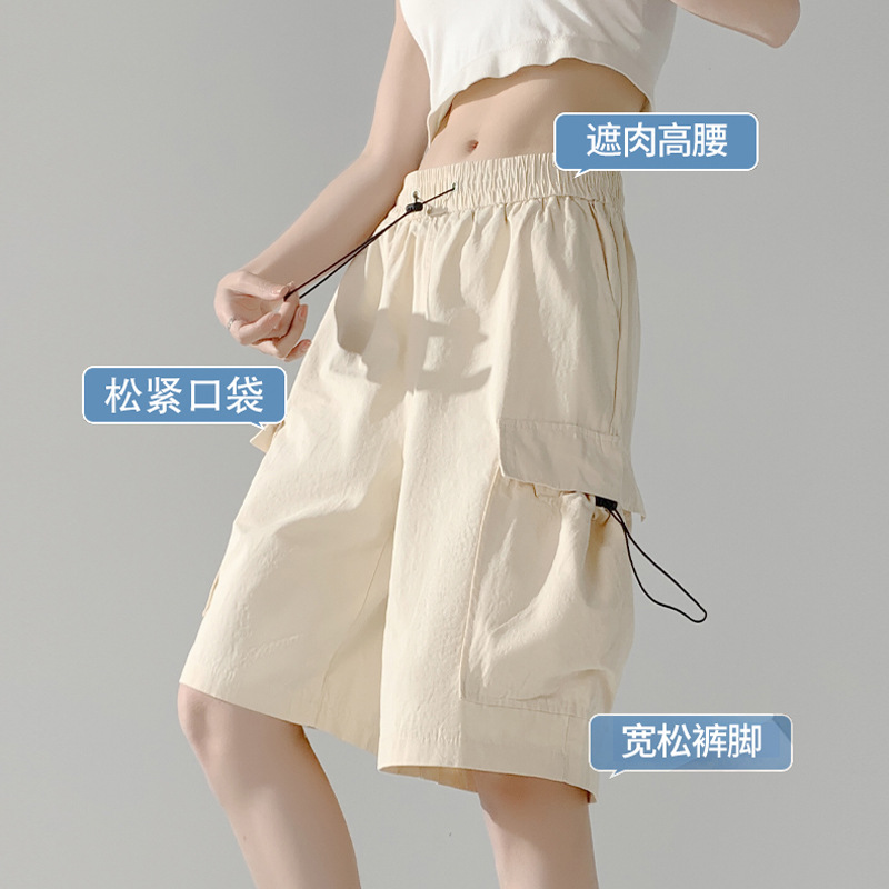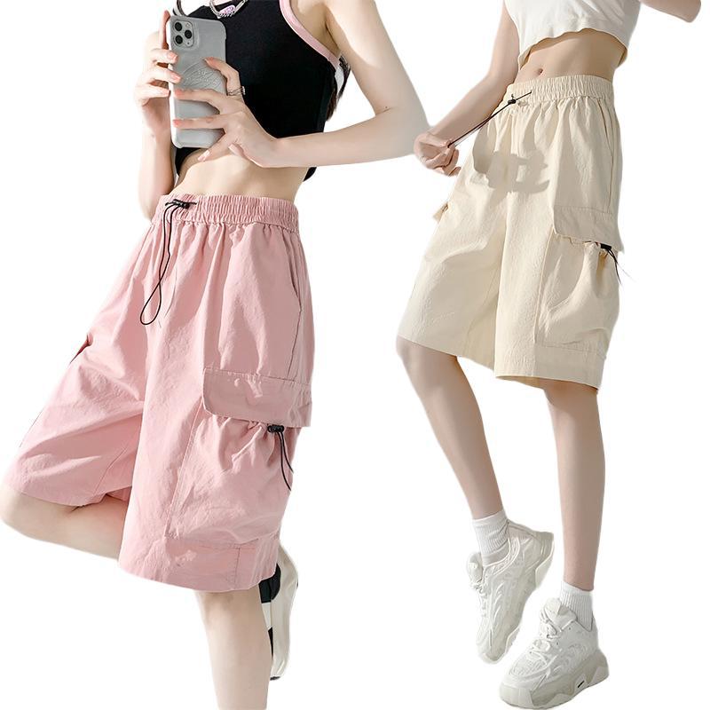 Рабочие брюки для девочек летом 2025 новый ученик средней школы широкие ноги свободные спортивные короткие брюки