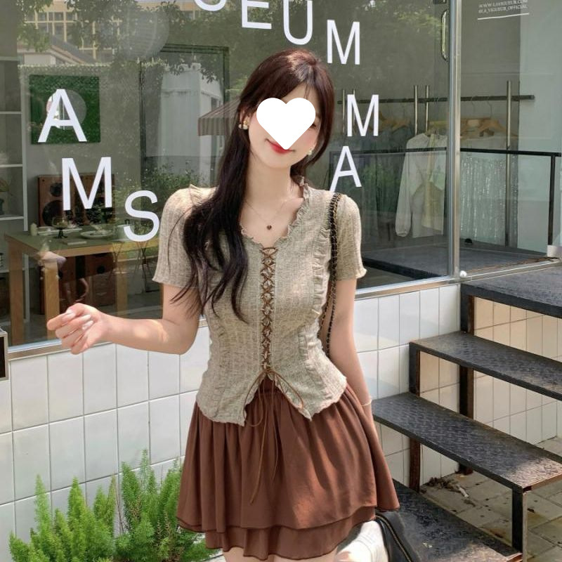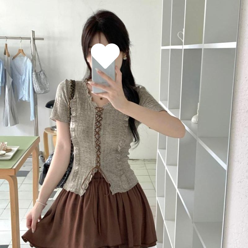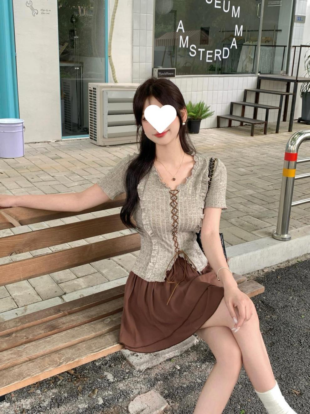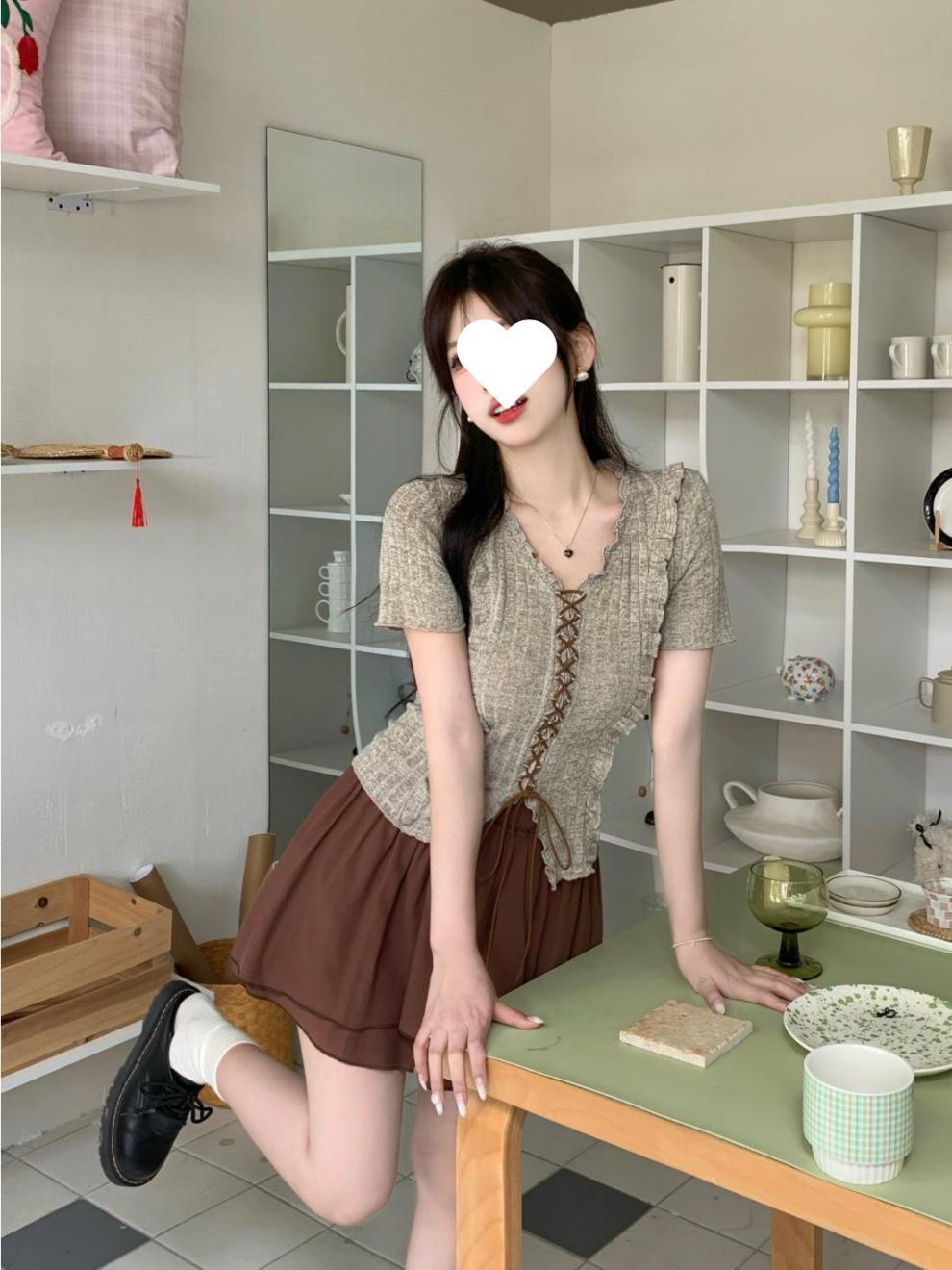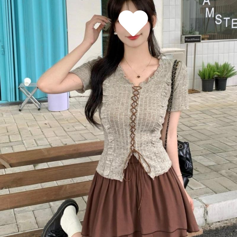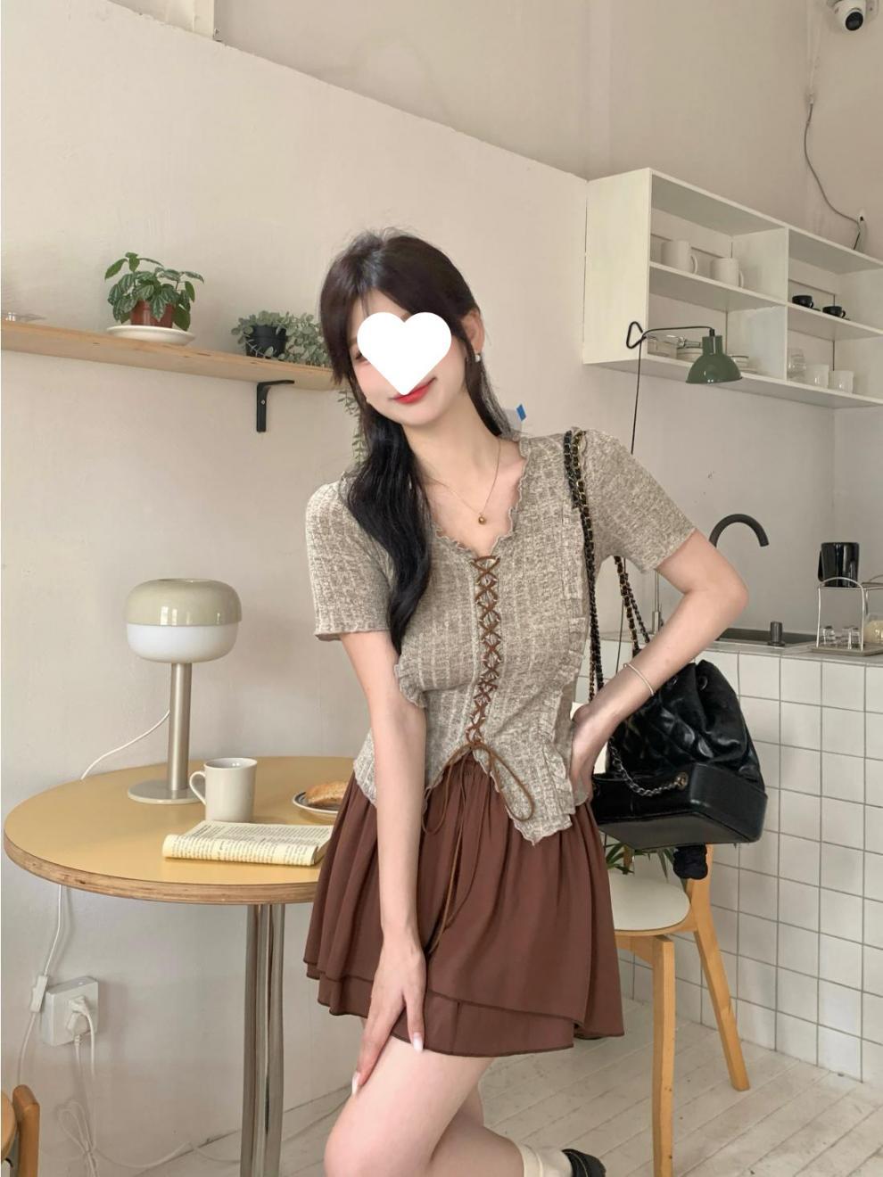 Высококачественный серый топ.; Качественная коричневая юбка.; Экономичный комплект из двух предметов: топ + юбка