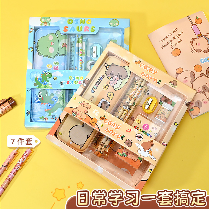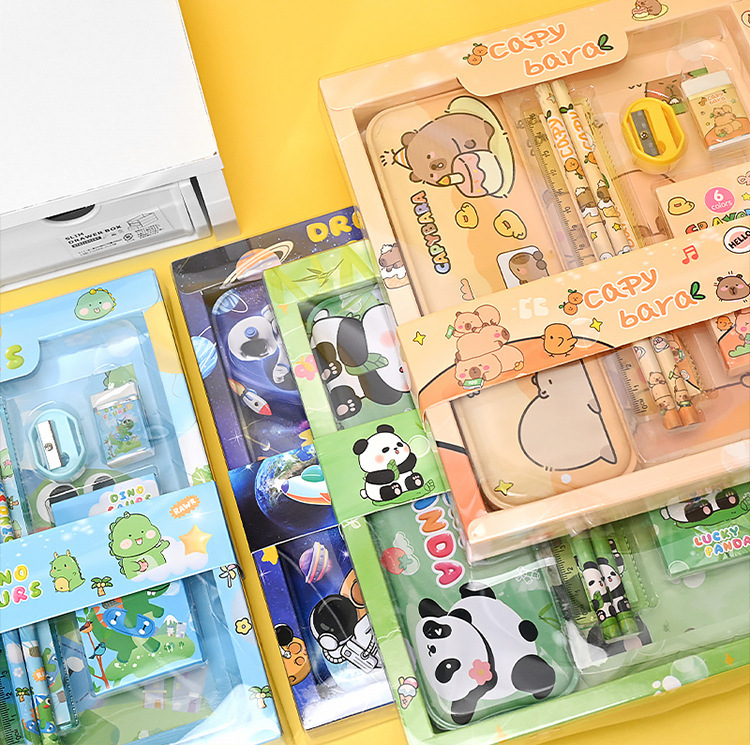 Канцелярские принадлежности в стиле мультфильмов, милый набор для школы, подарочный набор для начальной школы на начало учебного года, оптовые подарочные пакеты для выпускников.