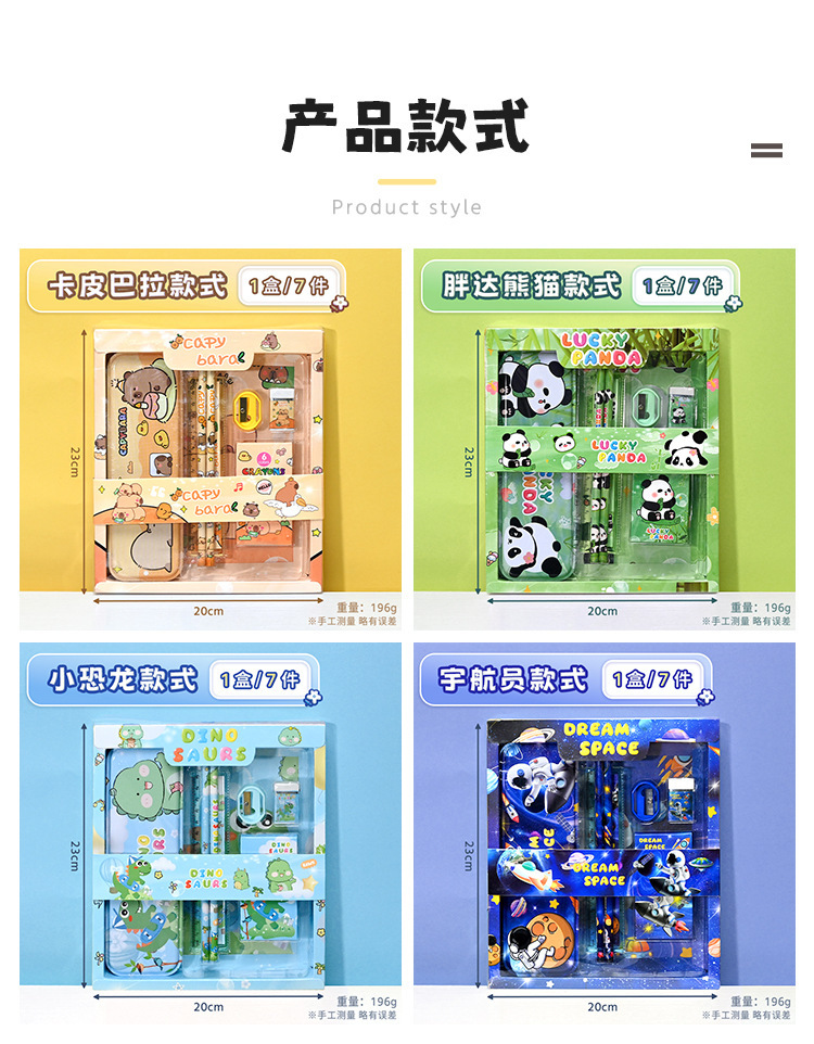 Астронавт (набор из 7 предметов); Маленький динозавр (набор из 7 предметов); Панда Панда (набор из 7 предметов); Капибала (набор из 7 предметов); Случайные стили
