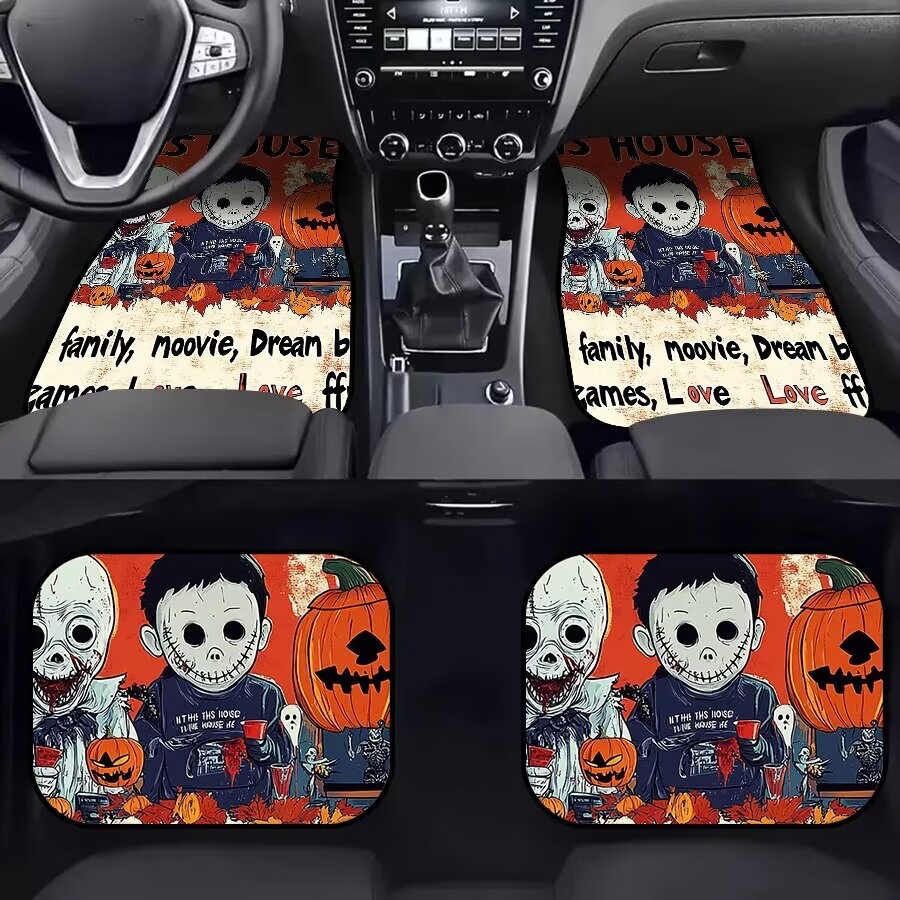 Универсальные автомобильные коврики с принтом черепа на Хэллоуин, комплект из четырех штук, оптом для Amazon и Temu