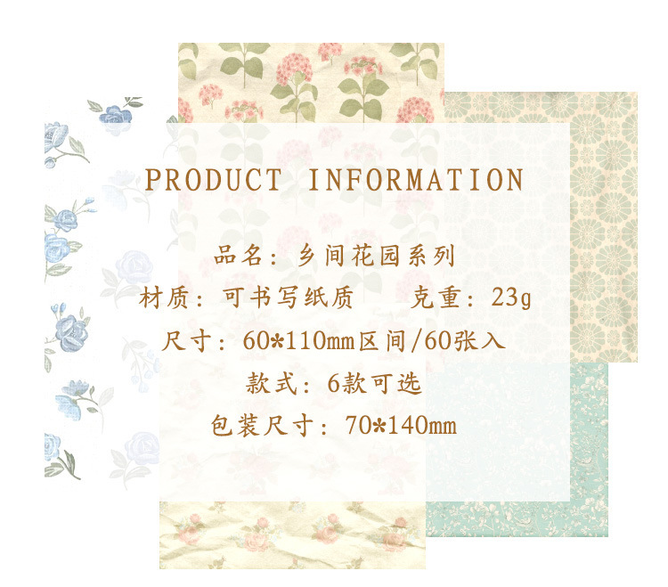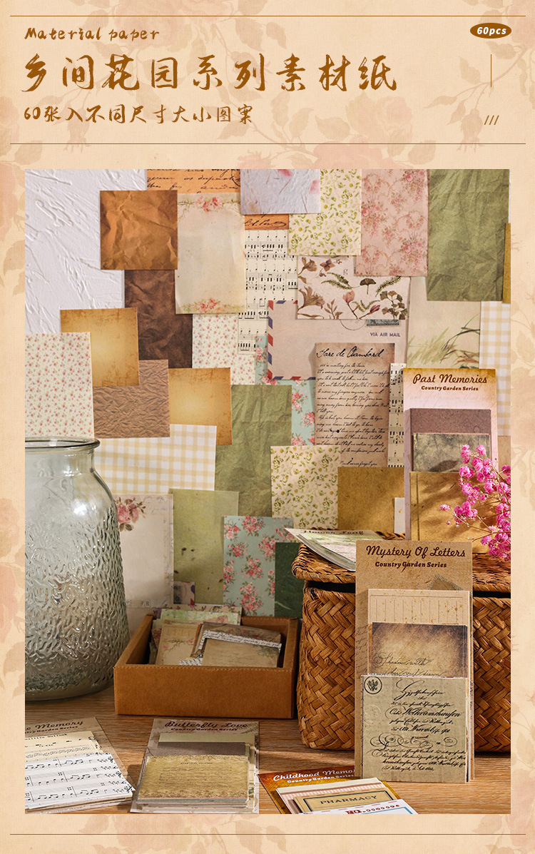 Руководство по деревенскому саду, материал, бумажные наклейки для руководств, креативный ретро-материал, бумага, оптовая продажа, 60 листов
