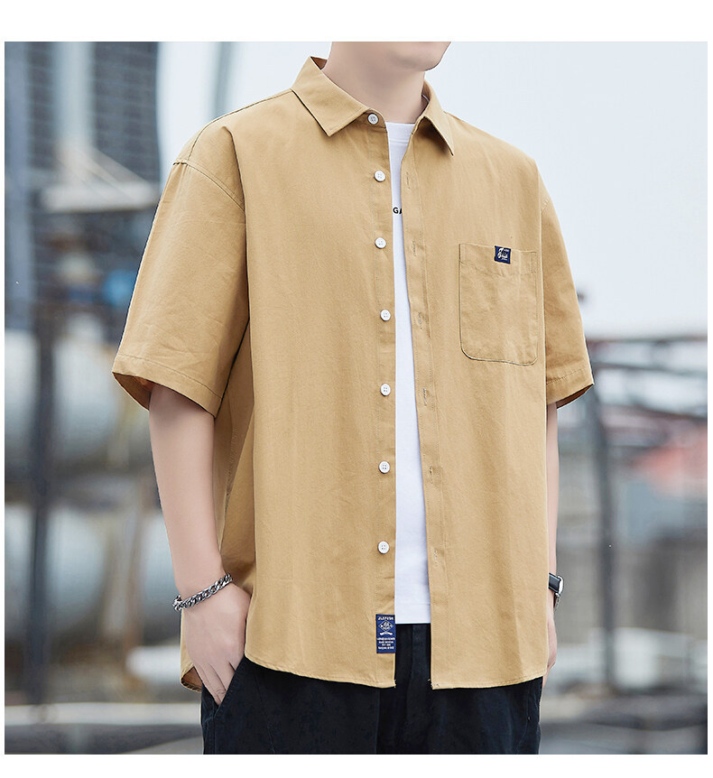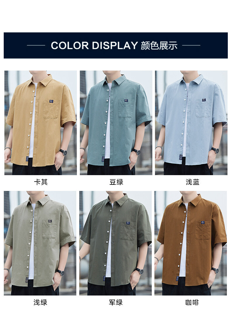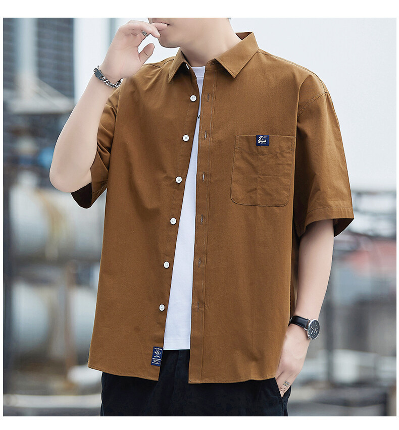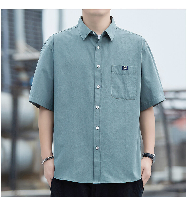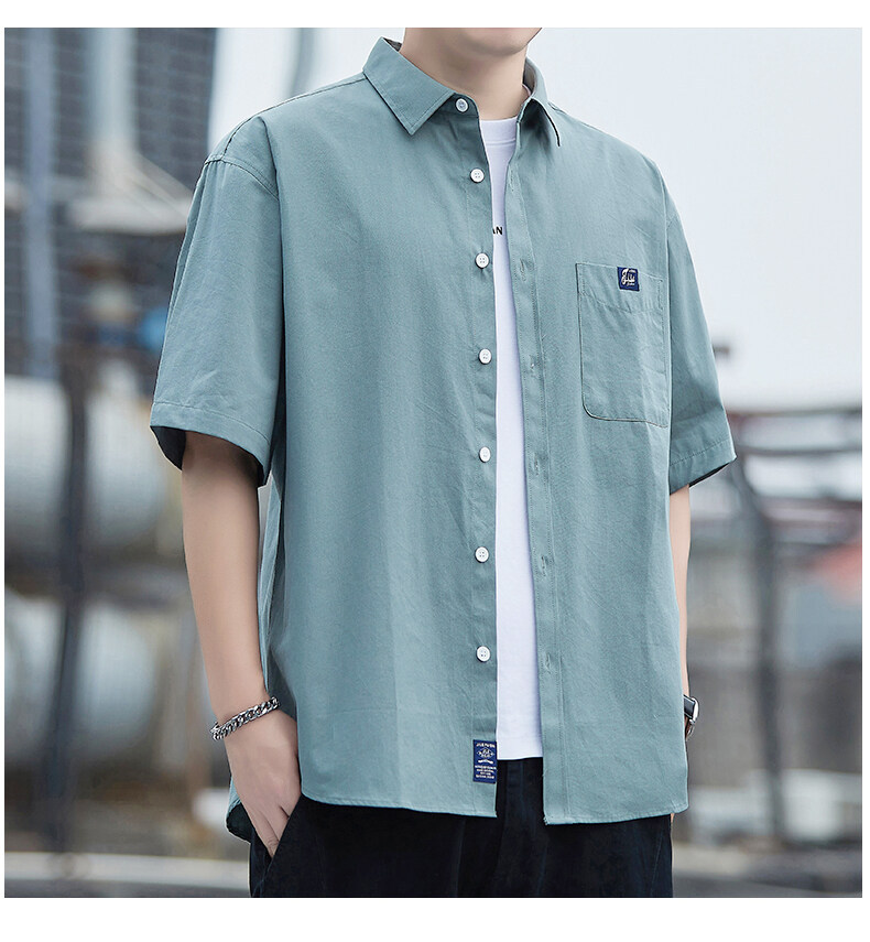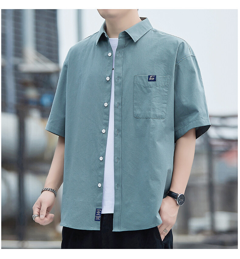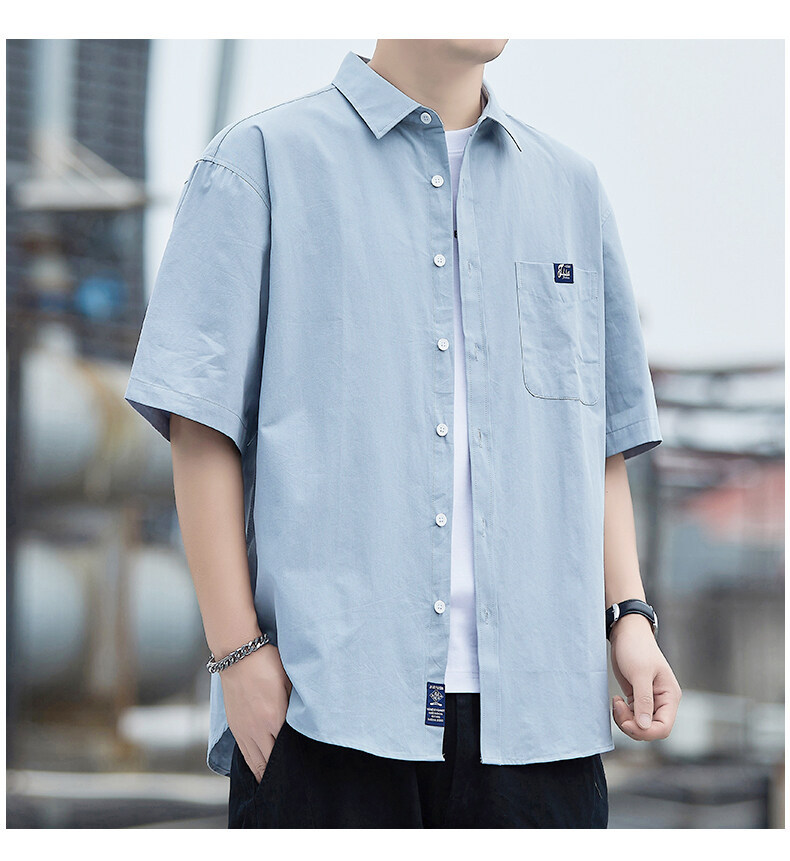 Мужская летняя новая однотонная рубашка из чистого хлопка с короткими рукавами, модная, повседневная, дышащая, тонкая, повседневная американская рубашка с половиной рукавов