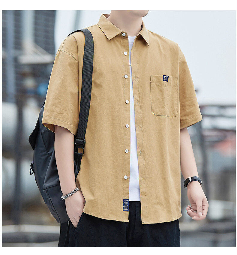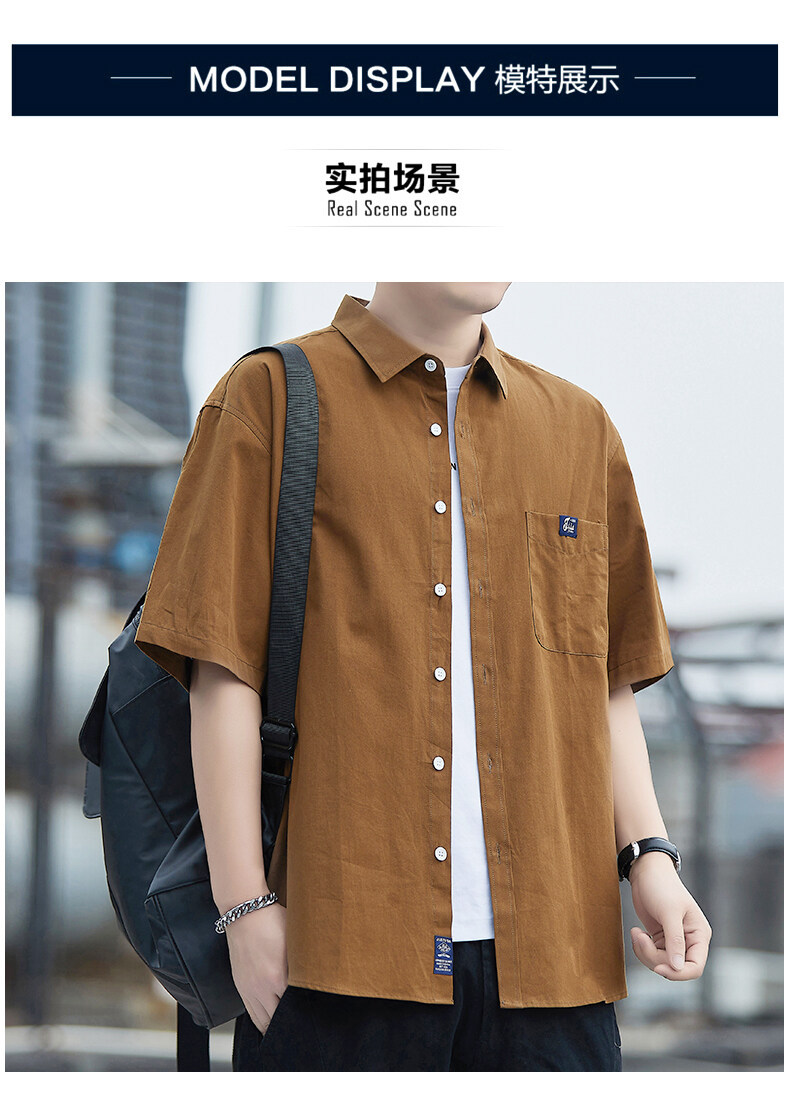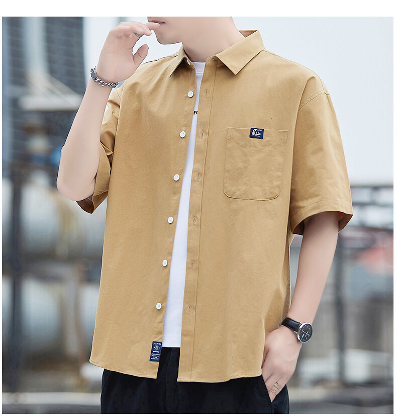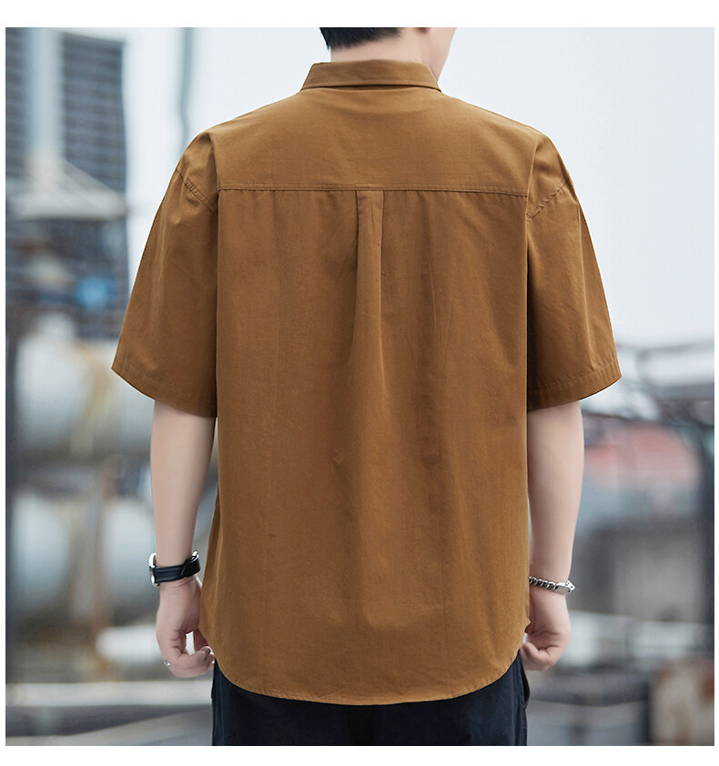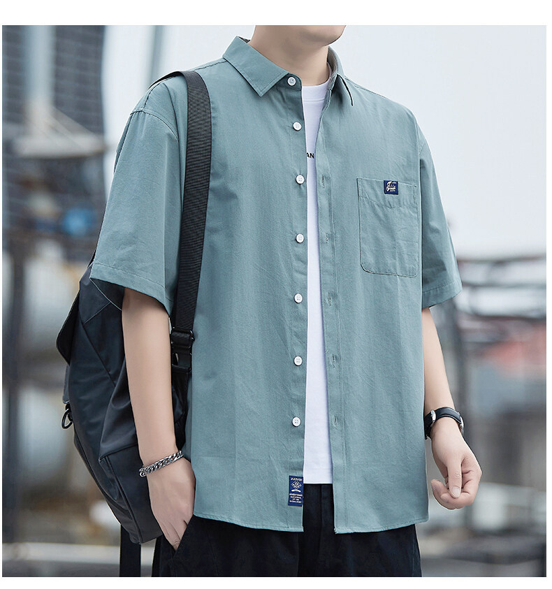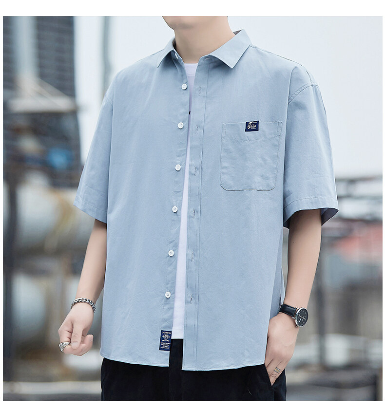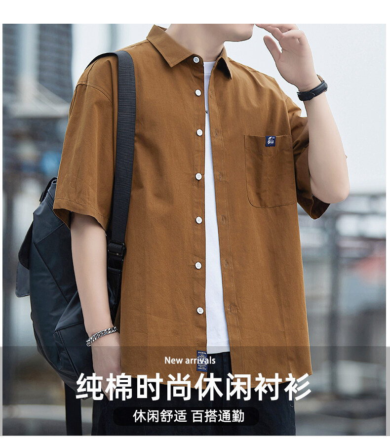 Мужская летняя новая однотонная рубашка из чистого хлопка с короткими рукавами, модная, повседневная, дышащая, тонкая, повседневная американская рубашка с половиной рукавов
