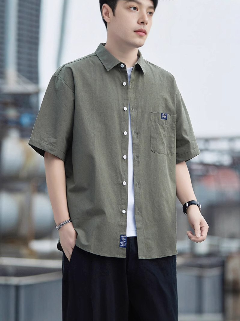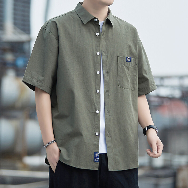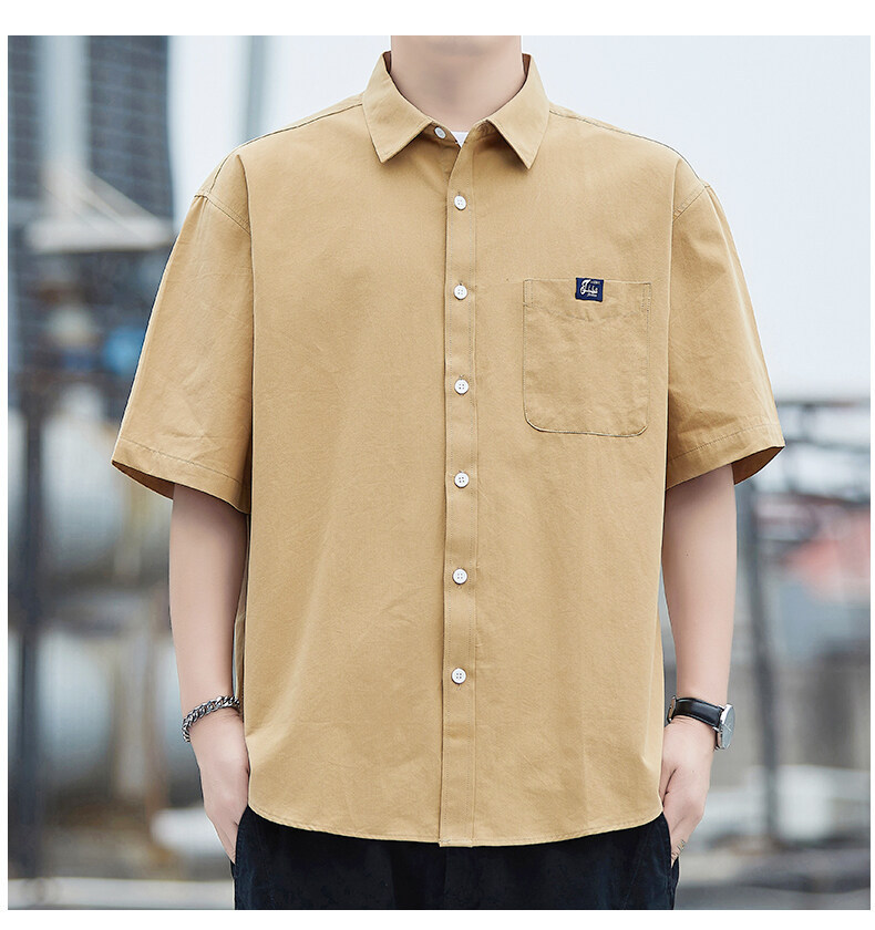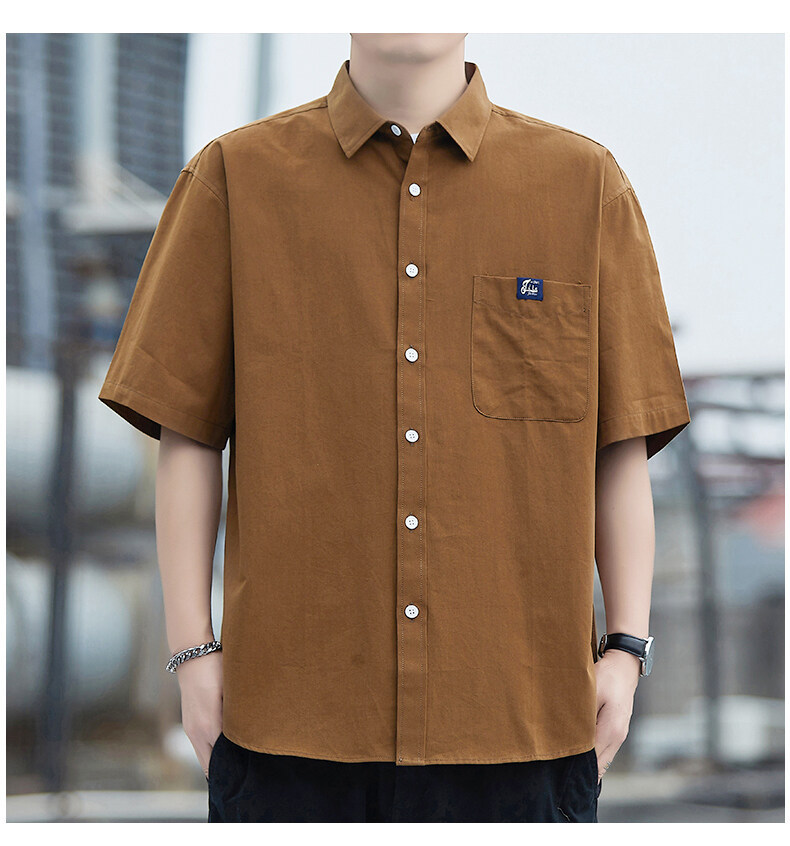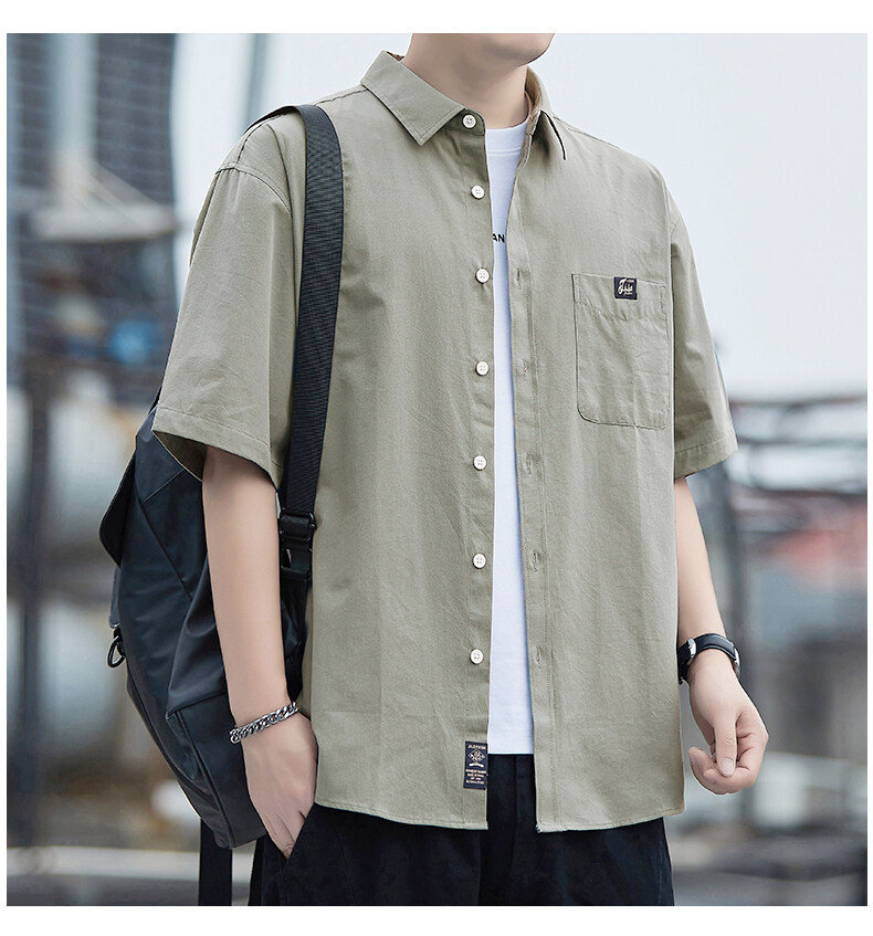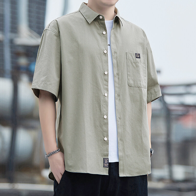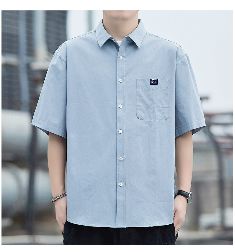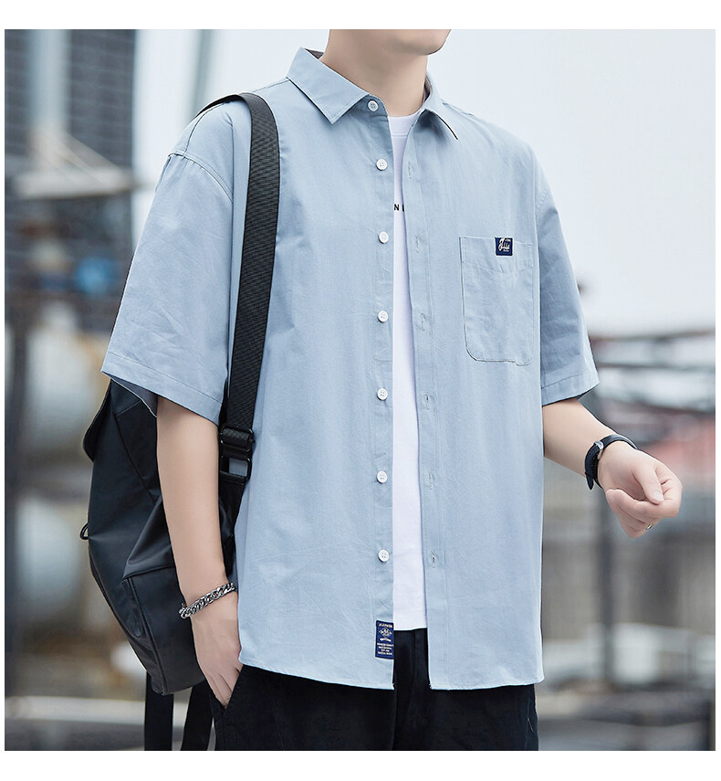 Мужская летняя новая однотонная рубашка из чистого хлопка с короткими рукавами, модная, повседневная, дышащая, тонкая, повседневная американская рубашка с половиной рукавов