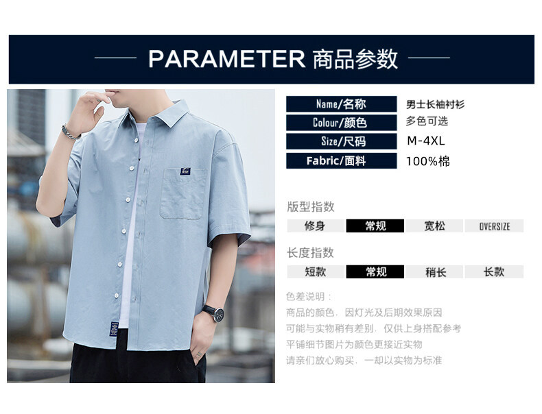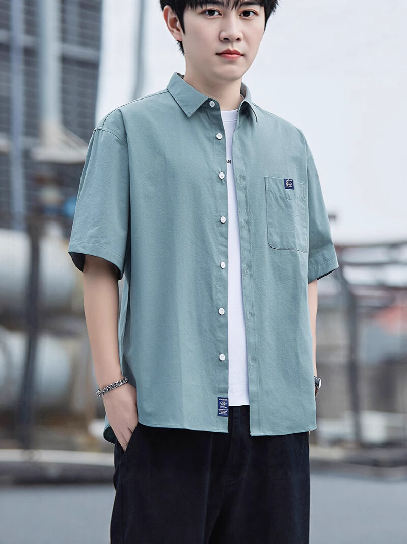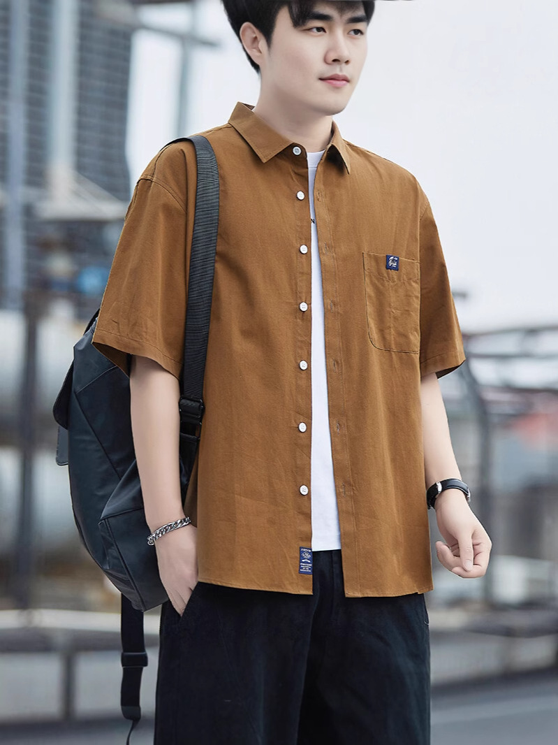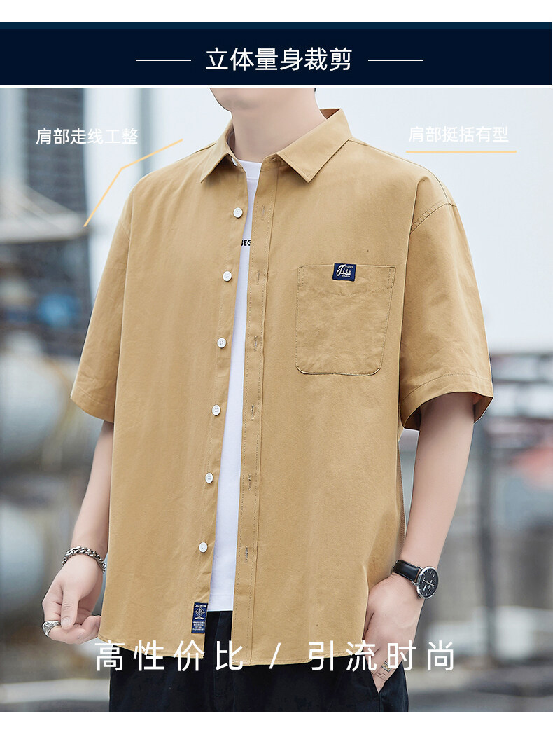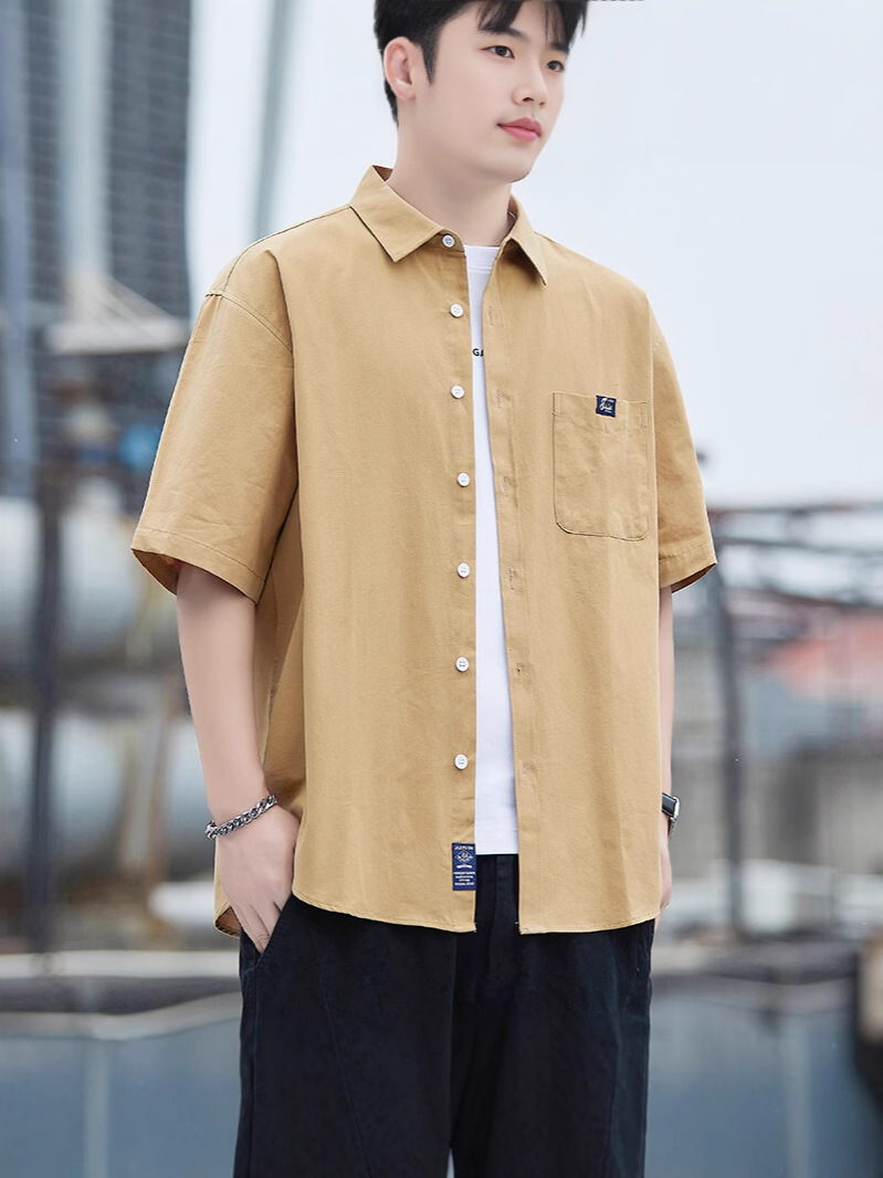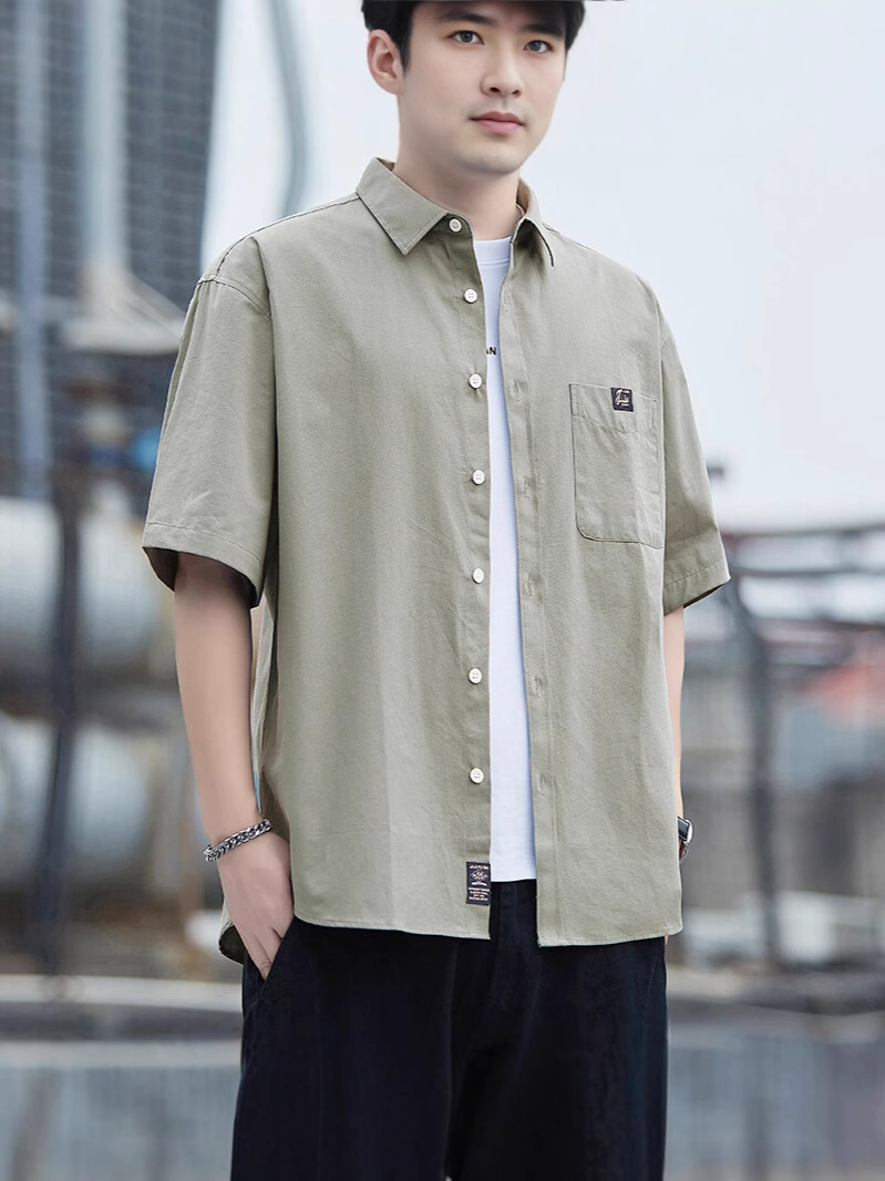 Мужская летняя новая однотонная рубашка из чистого хлопка с короткими рукавами, модная, повседневная, дышащая, тонкая, повседневная американская рубашка с половиной рукавов