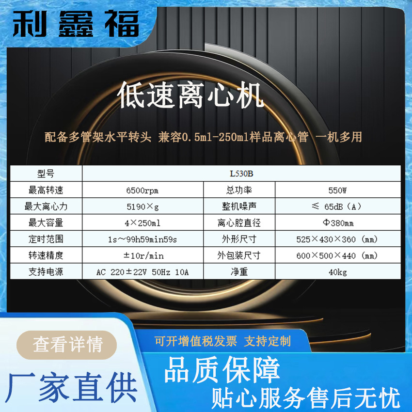 L530B低速离心机适用医疗、美容机构、高校、企业、生物化学、生物制品等生产科研单位;是进行样品分离、蛋白沉淀、细胞分离、细菌收集等常备仪器设备。