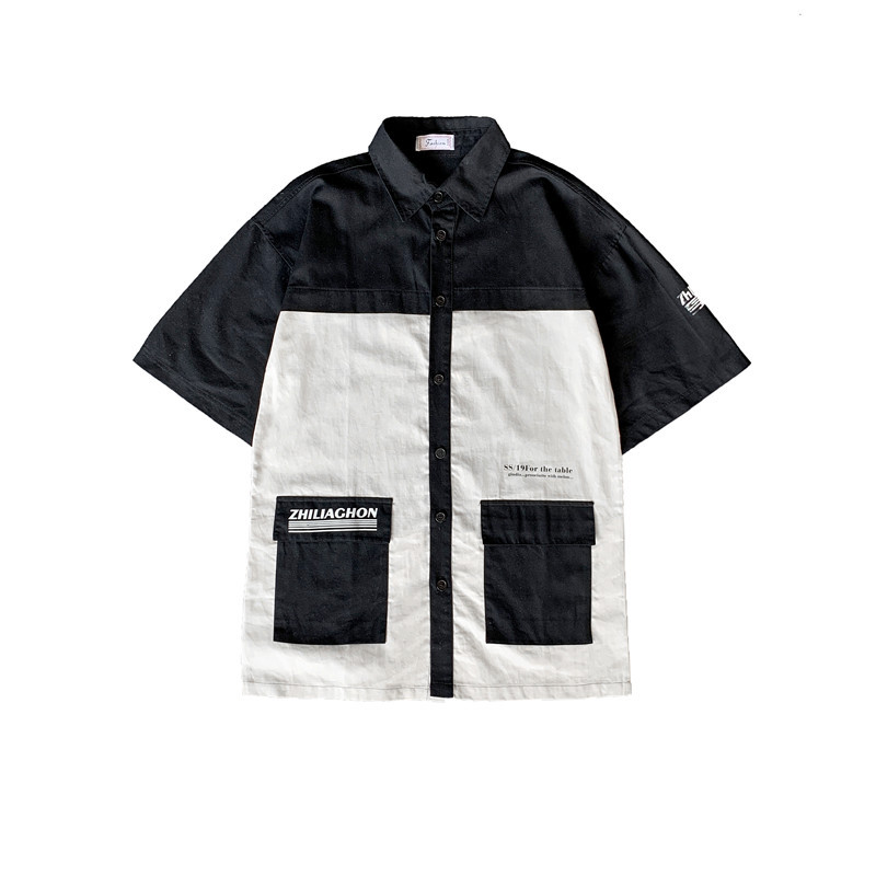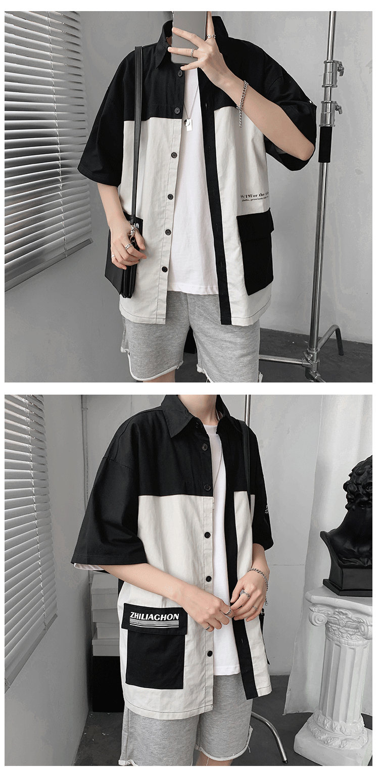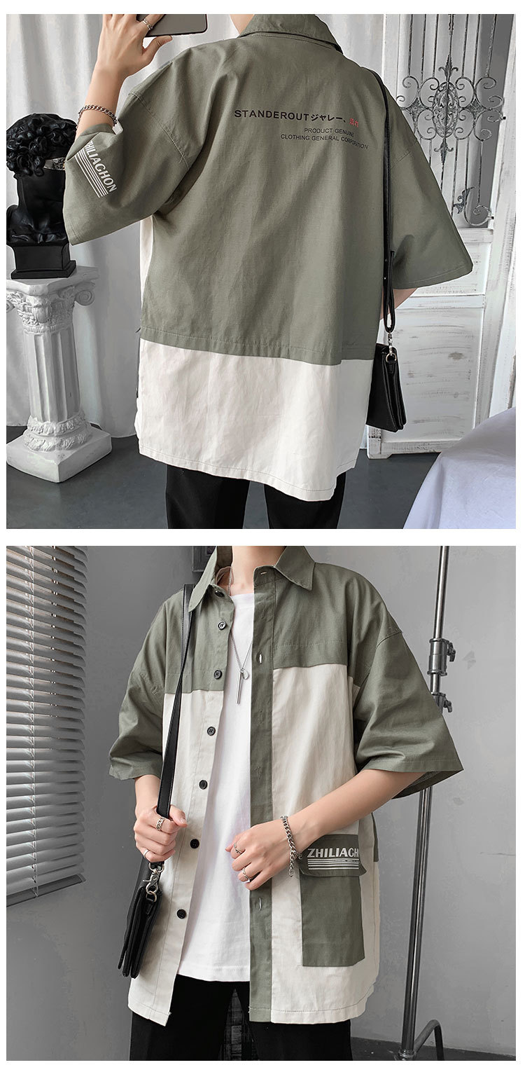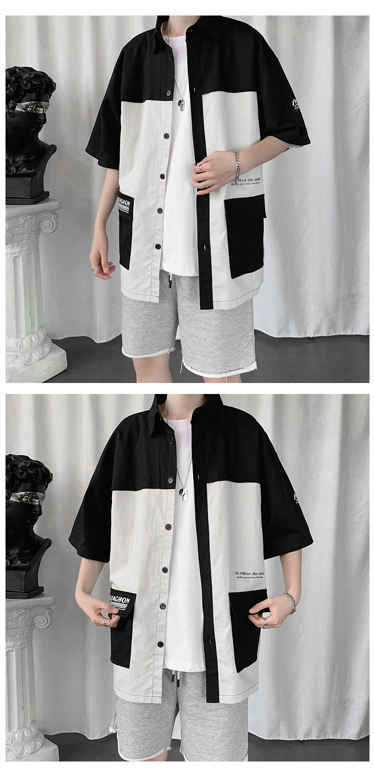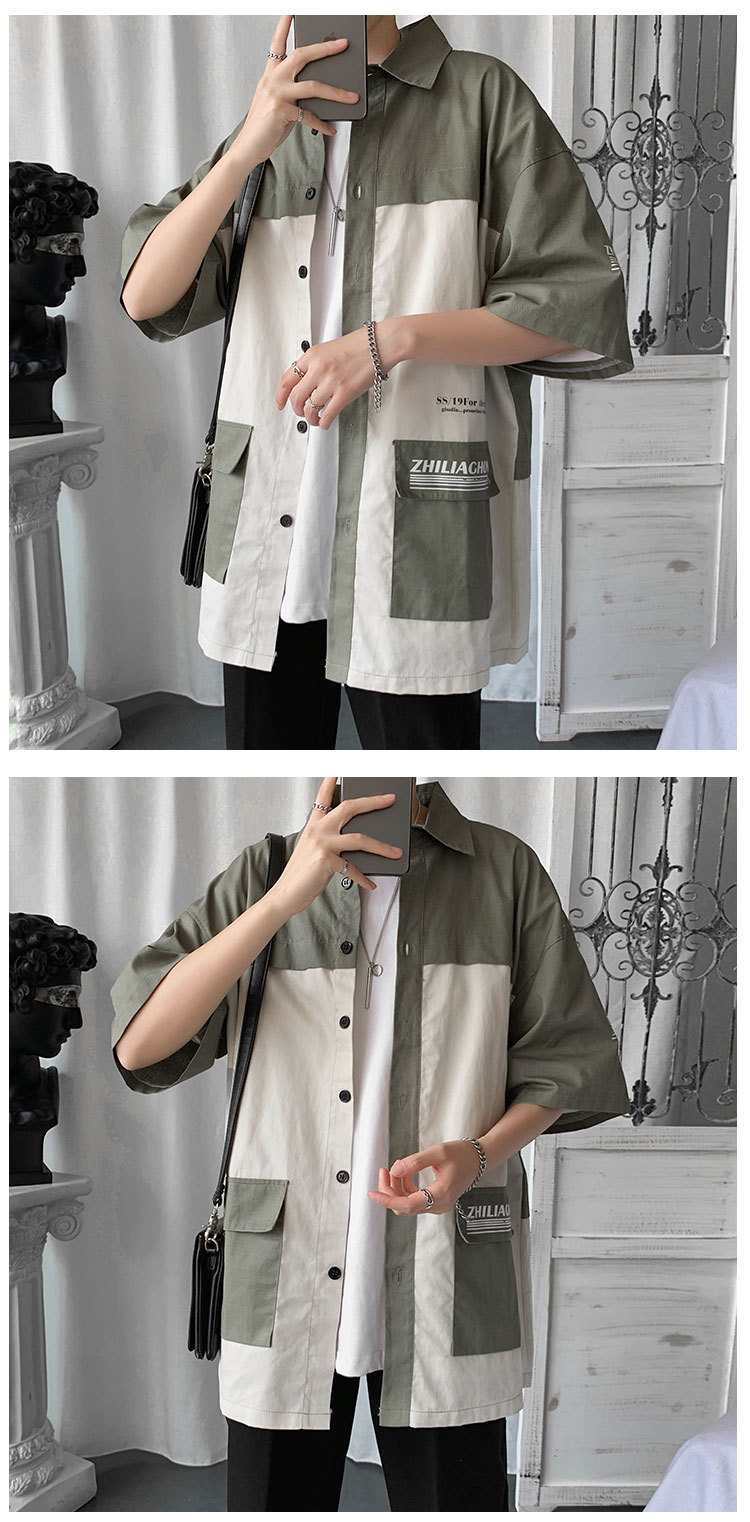 Рубашка с короткими рукавами, мужская повседневная свободная рабочая рубашка в гонконгском стиле, летние модные брендовые модные топы контрастного цвета в корейском стиле