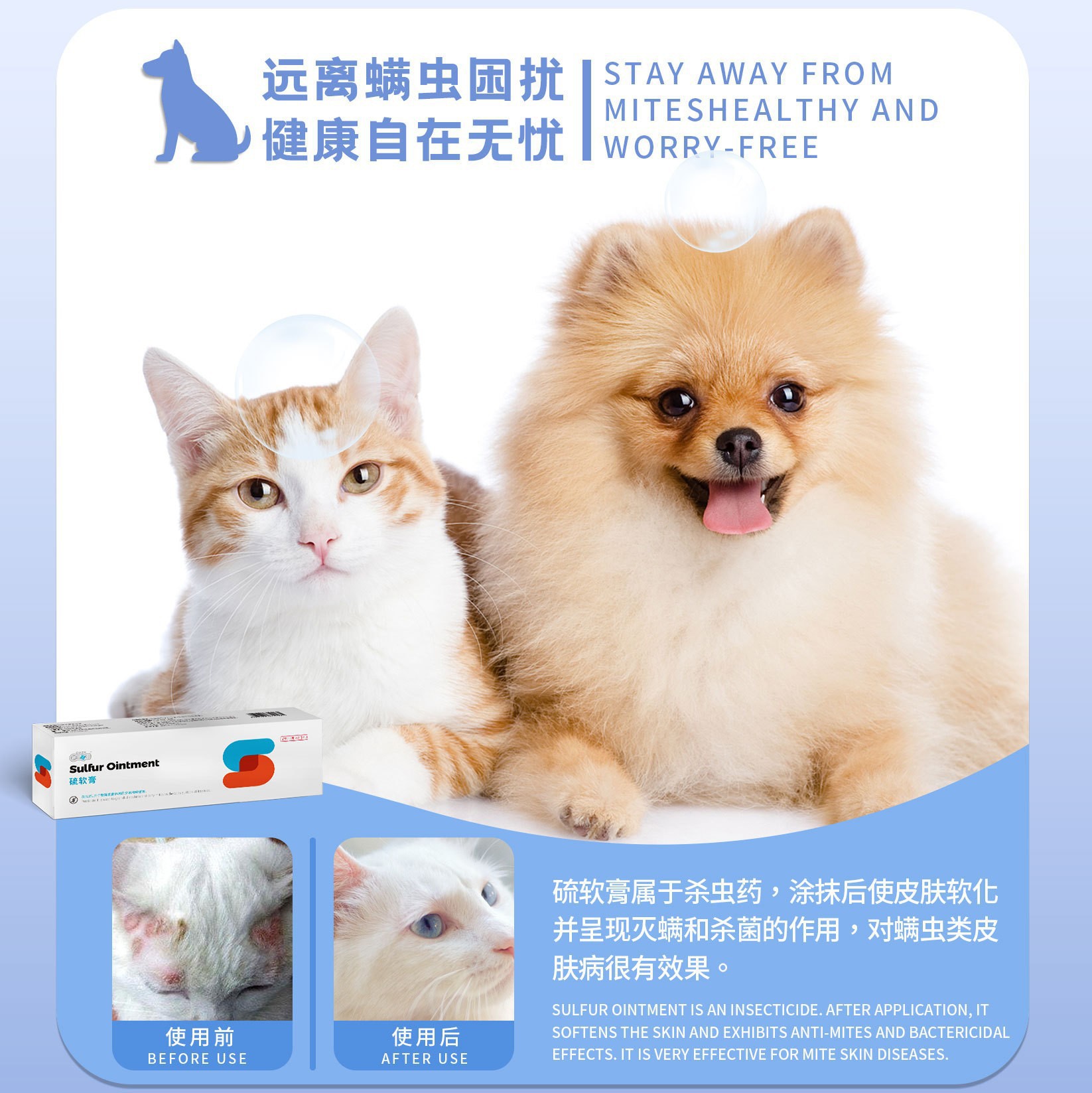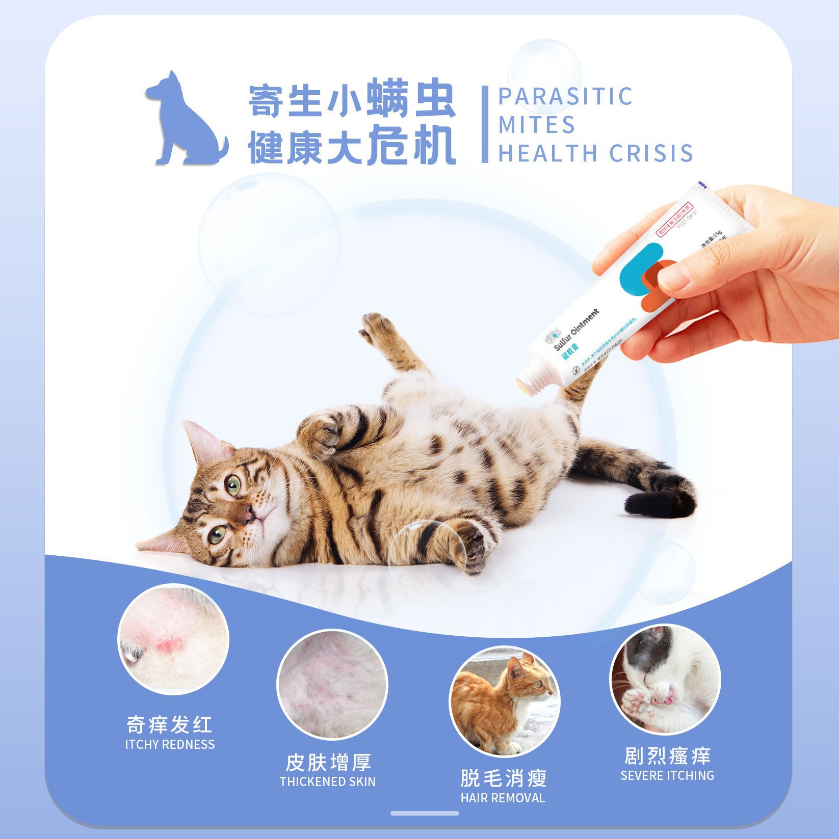 Новая любимая мазь Куншуо для лечения чесотки и кожных заболеваний у домашних животных, для наружного применения у кошек и собак, снимает зуд, лечит выпадение шерсти и инфекции от клещей.