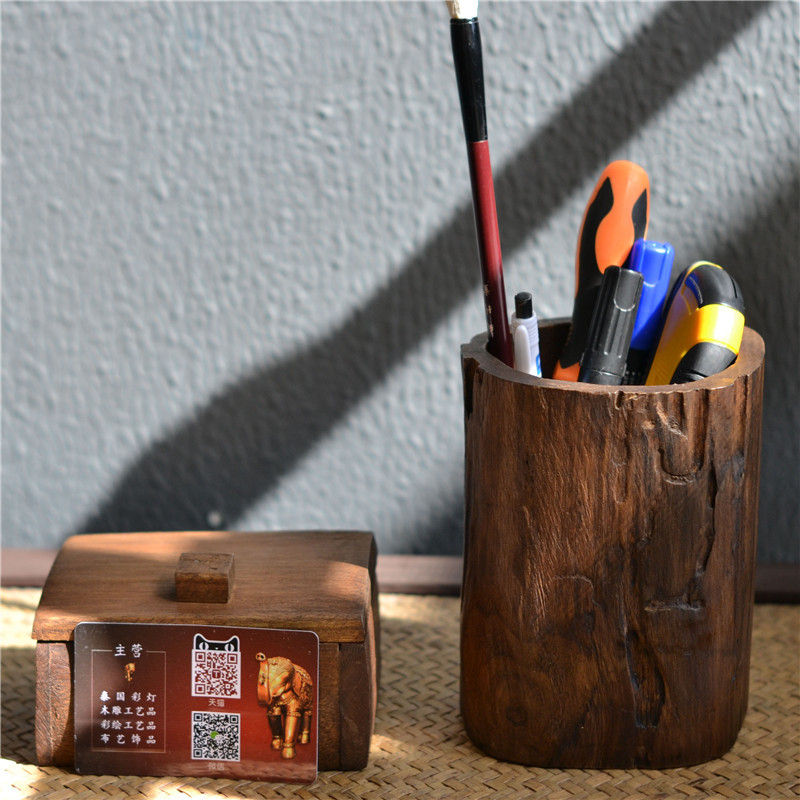 Тайский держатель для ручек из цельного дерева в стиле ретро, настольные принадлежности для домашнего офиса, подарочные украшения, ящик для хранения, практичность дерева