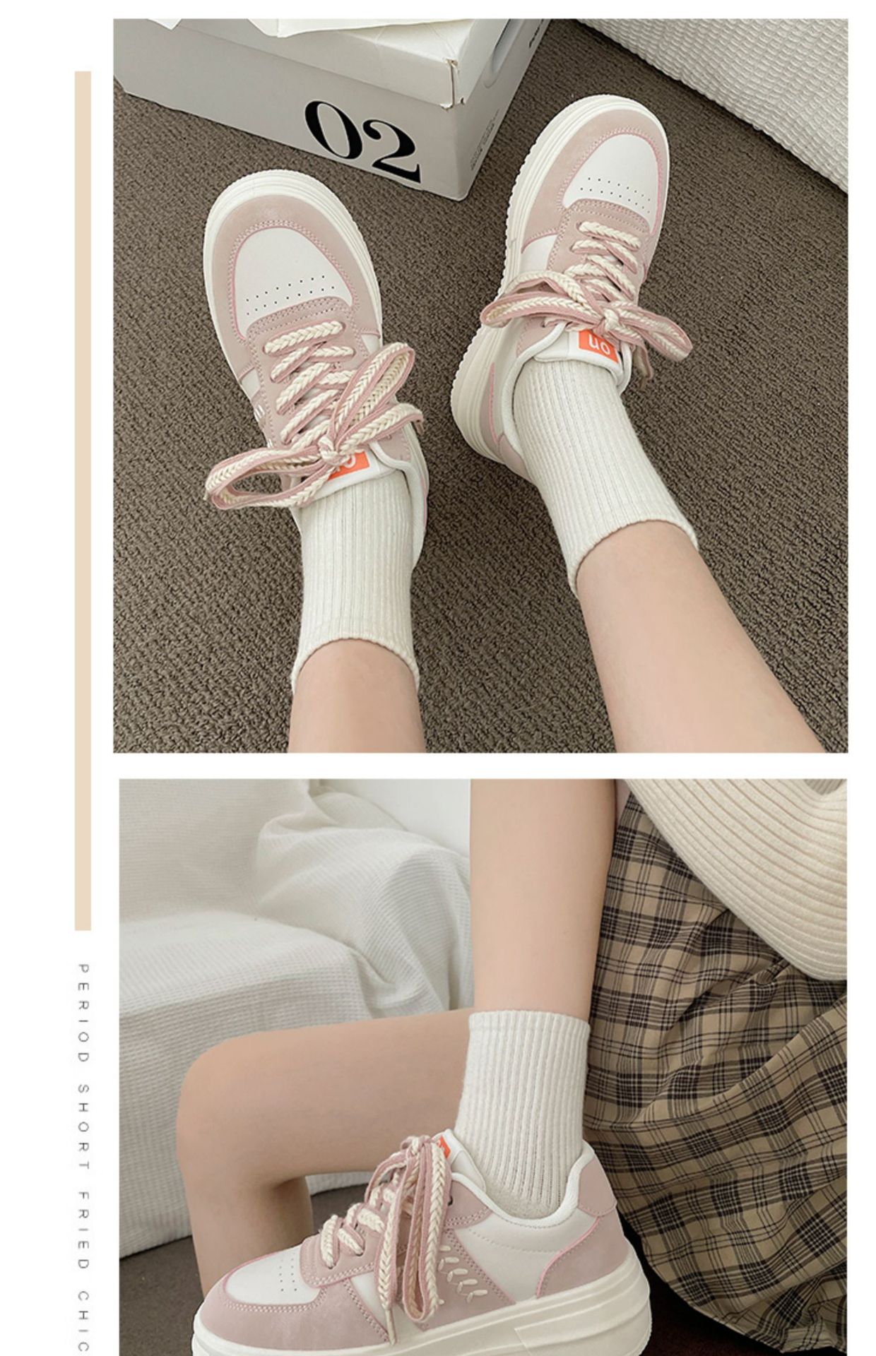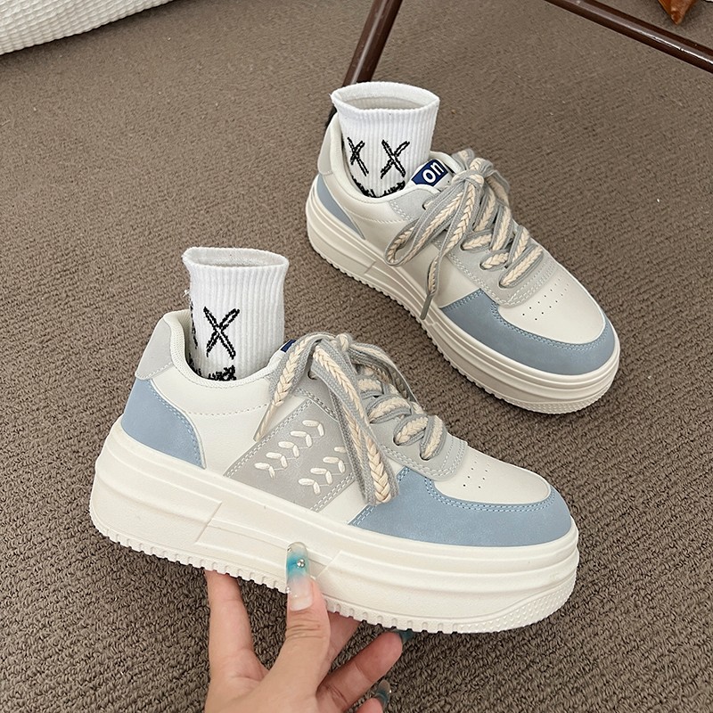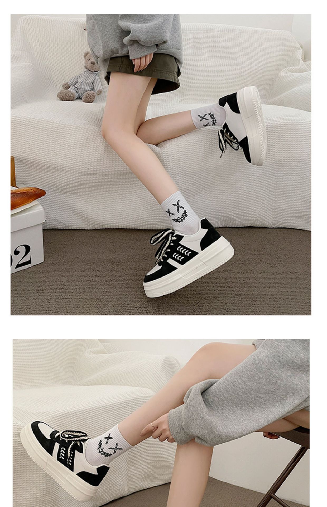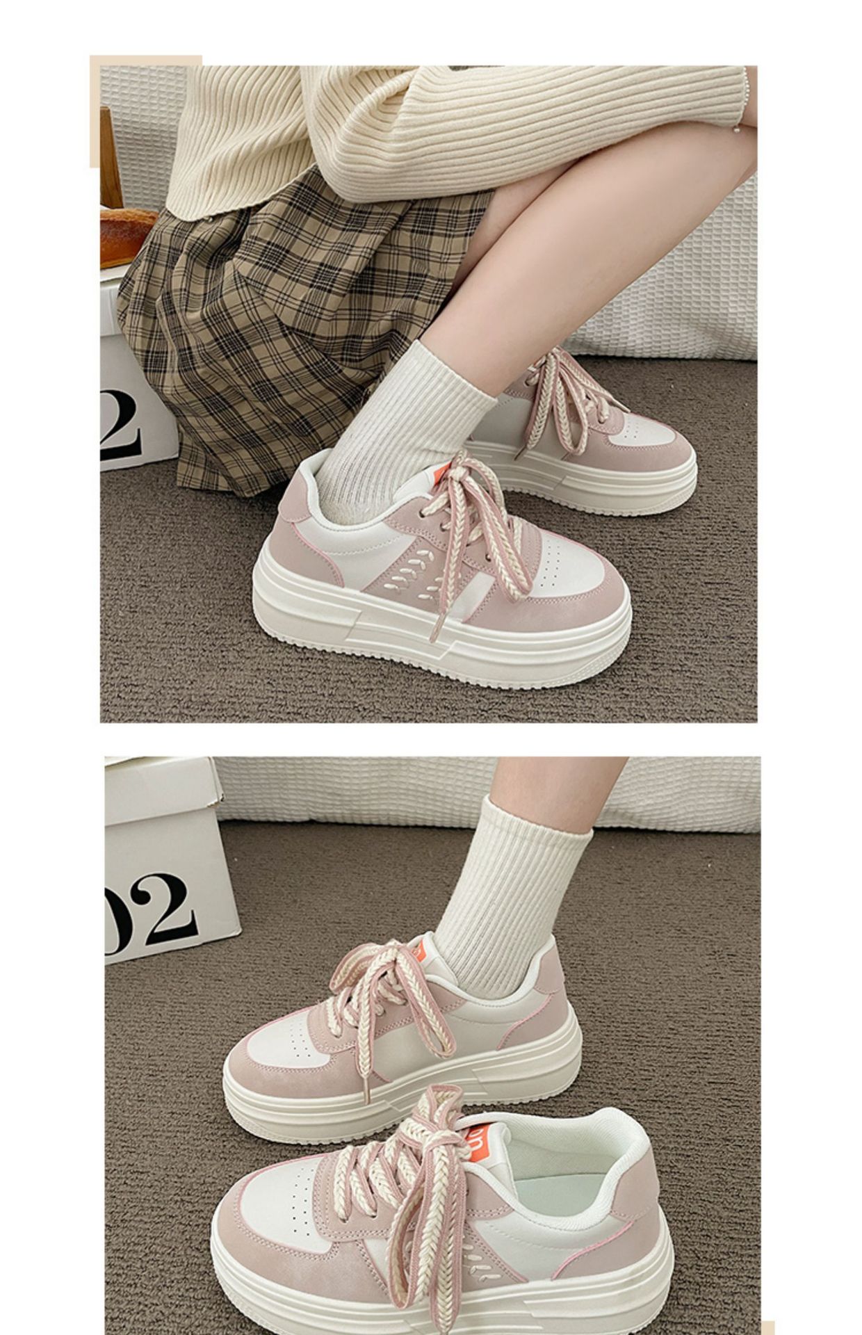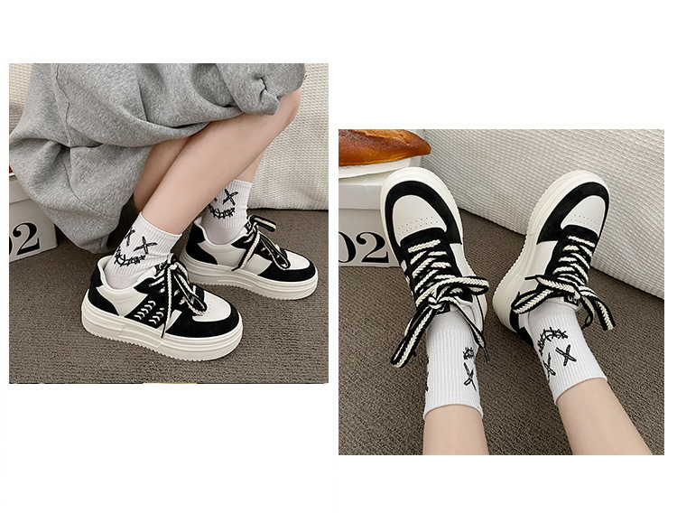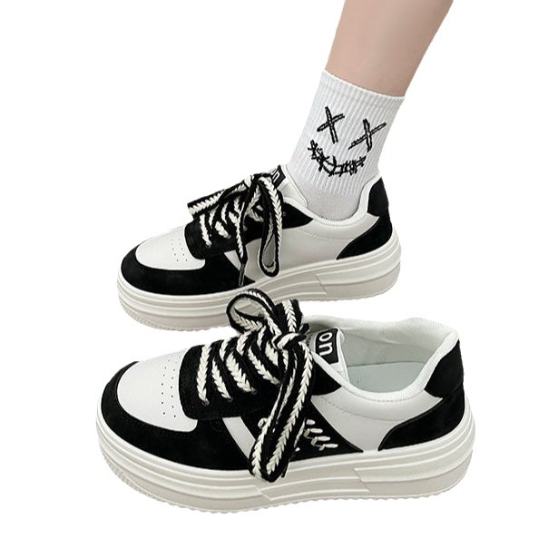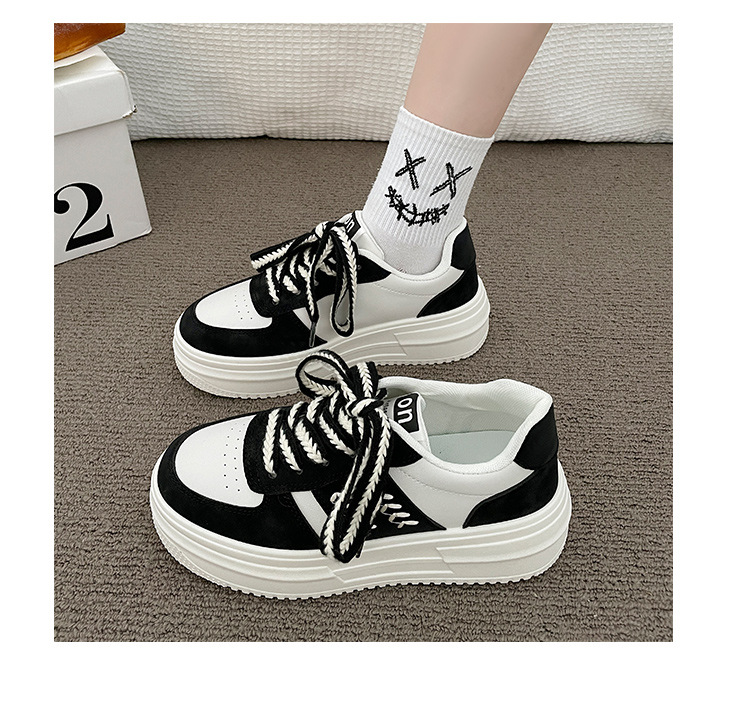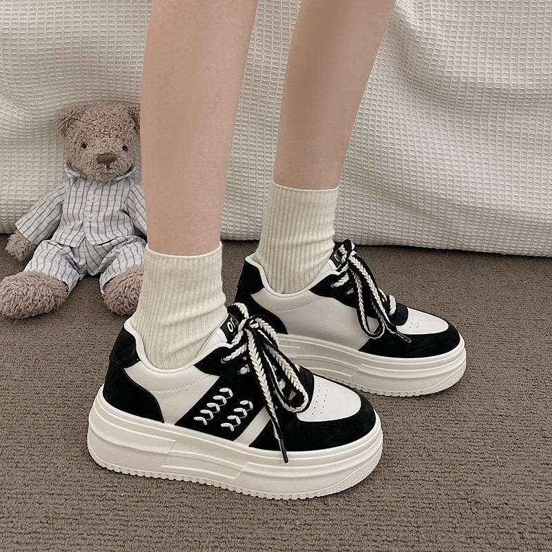 Белые женские туфли 2025 новые универсальные на толстой подошве с платформой для увеличения роста, осенние повседневные туфли, кроссовки в стиле панда