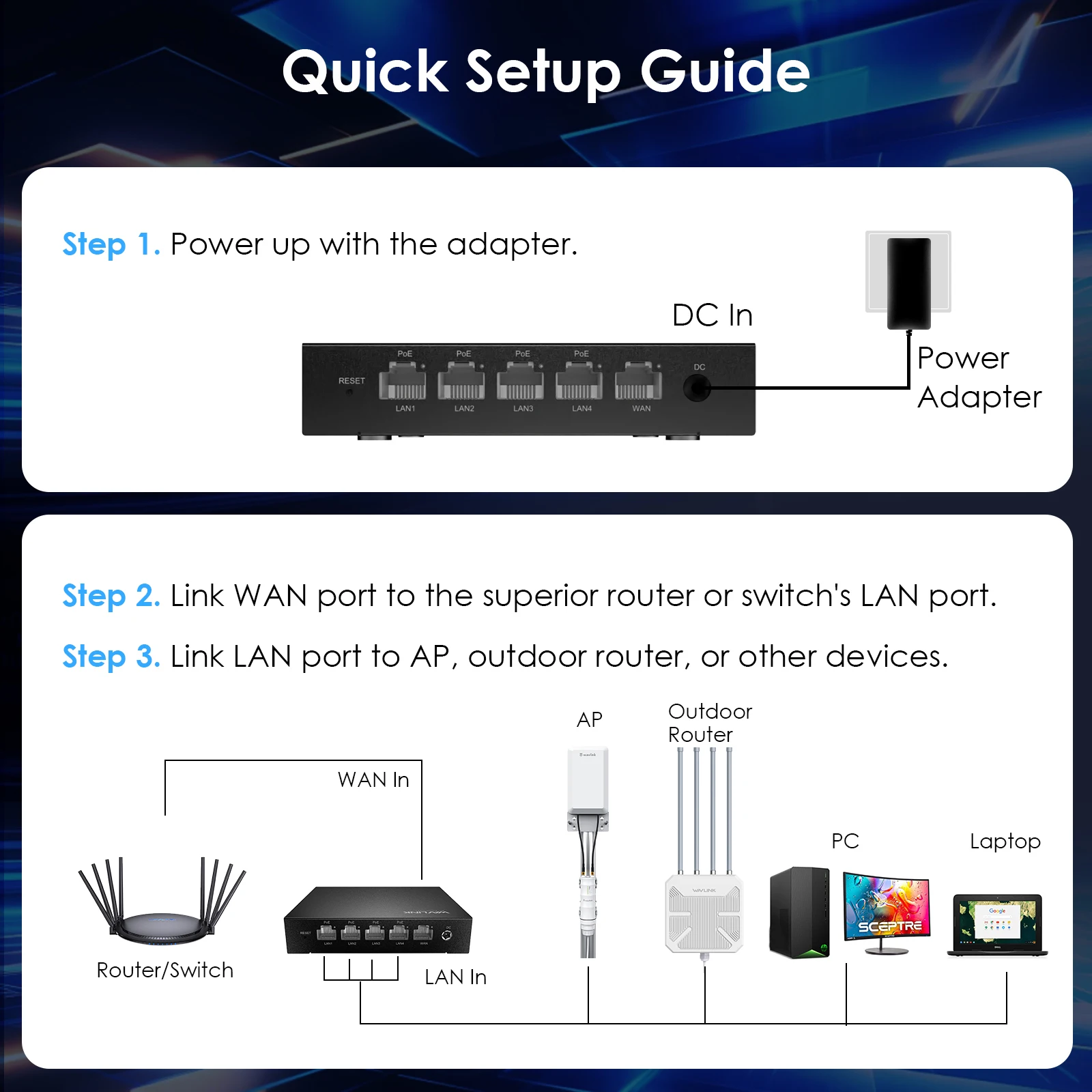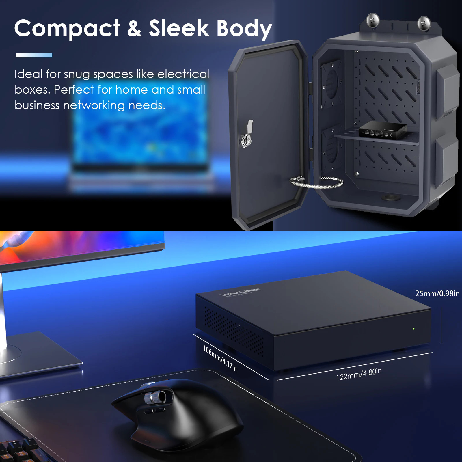 WAVLINK 5-портовый гигабитный PoE-коммутатор с питанием от сети переменного тока, встроенный маршрутизатор для наружной сети