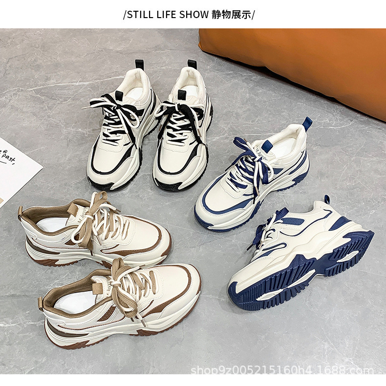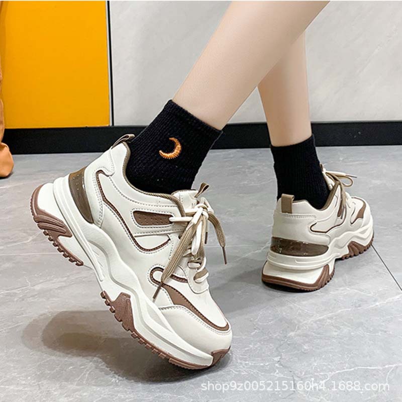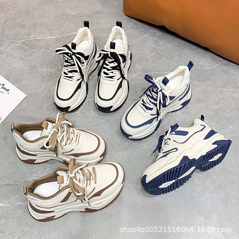 Роскошные женские туфли на толстой подошве для папы весна-лето 2024, новые кожаные водонепроницаемые спортивные повседневные туфли для женщин